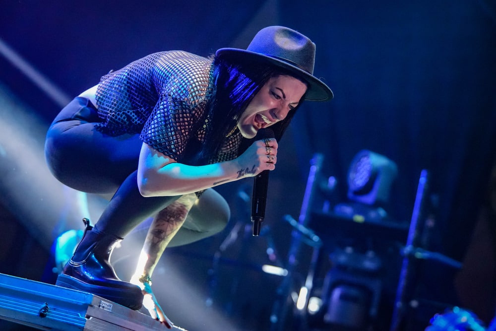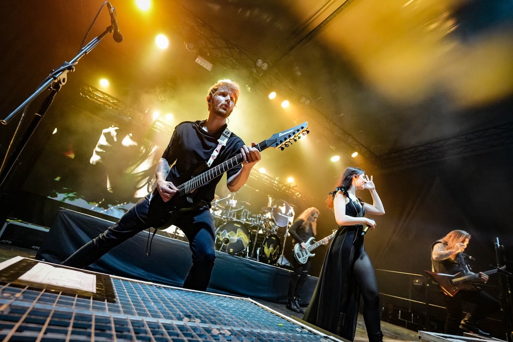 Amúgy szerintem Jennifer fantasztikus énekesnő, és ez élőben is átjött, egy darab hamis hangot sem hallottam tőle (ebben persze benne lehet az élőzene varázsa is). És kiváló frontember is. Nem túl sok, nem túl kevés, elbűvölő, és nyilvánvalóan tudja, hogy jól állnak neki a gribedlijei, amikor mosolyog, úgyhogy ezt nagyon gyakran teszi. A Chris melletti, kicsit csöndesebb gitárosról még nem ejtettem szót, ő Tobi Lodes, aki amúgy megszólalásig hasonlít Ed Sheeranra. Ő inkább a háttérben látta el a ritmusgitározás feladatait, míg Chris néhol túlontúl hangos gitárszólóival mászott az emberek arcába és fülébe. Ráadásul legalább négy különböző gitáron játszott a koncert alatt: amire emlékszem, az egy kék-zöld és egy csillogó lila superstrat, és egy barna explorer (talán), meg ugye az akusztikus. A basszusgitárosuk (úgy tűnik, csak élőben), Linus Klausenitzer pedig egy kicsit úgy festett, mintha most szedték volna össze az utcán, hogy hé, te tudsz basszusozni? De nagyon menő hathúros hangszere volt amúgy. A dobok mögött pedig Petruska András német hasonmását vélhettük felfedezni, aki Kai Tschierschky névre hallgat.