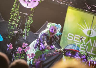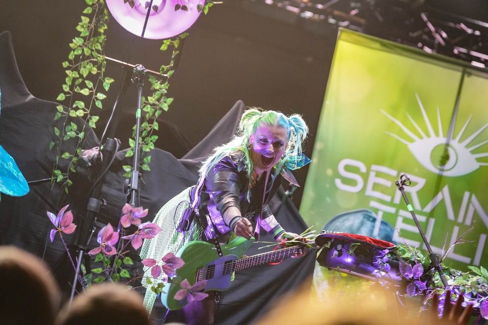 A színpadmelegítés ezen az estén is Seraina Telli multiinstrumentalista-énekesnő projektjének feladata volt. A műsorban a 2024 szeptemberihez képest a felállásban és a dekorációban jelentek meg újdonságok, valamint a setlist egy kivételével teljesen új számokból állt: a legtöbbet a tavaly októberben megjelent Green című lemezéről játszotta a duó. A színpadot műnövények borították be: a szobai futókák és a hatalmas, tüllszerű anyagból készült virágok igazi tündérkertet varázsoltak a zenészek köré. Az énekesnő az első szám elején egy kalapra erősített kék-zöld parókában sétált be gitárjával. A parókát a dal közben aztán drámaian leemelte és eldobta. Ismét lenyűgözött énektudásával, hibátlan, erős orgánumával. Furcsaság, hogy a zenekar most csak két főből állt: magából a főhős Serainá-ból, és az őt kísérő szakállas dobosból, akit korábban is láthattunk a projektben, ő Mike Malloth. A gitár mellett viszont Seraina szintin is játszott olykor, és pár sáv – például vokálok – ment backing trackről.
