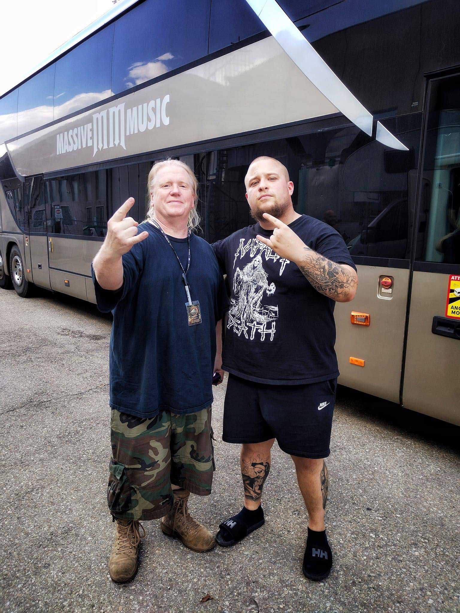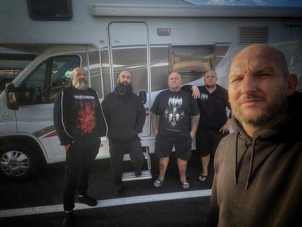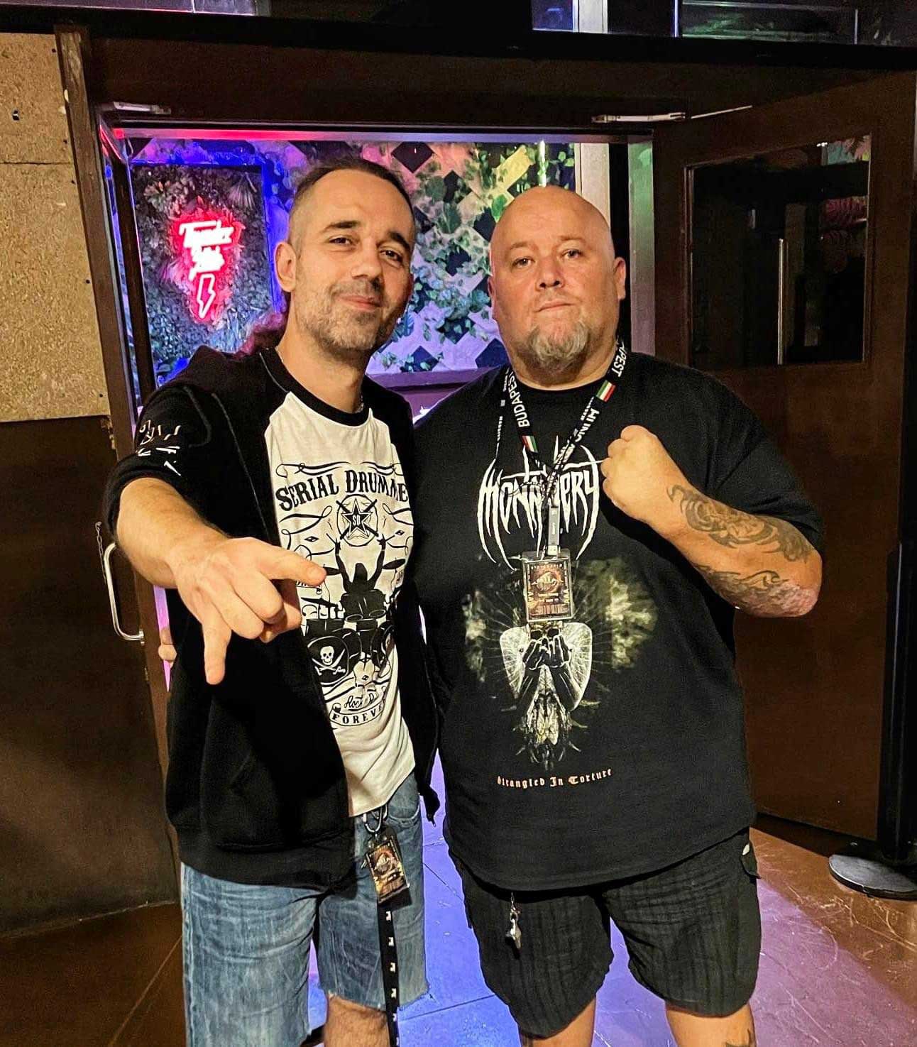 A klubot látva, nagyon vártuk hogy megismerjünk mindenkit és természetesen ki voltunk éhezve egy frankó koncertre! Belépve a terembe szinte egyből jöttek bemutatkozni a Hideous-ból a srácok és nem sokkal később Darek a turné menedzsere is! Vele megbeszéltük a teendőket, nagyjából elmondta, hogy mit kell tudni a turné felépítéséről és menetéről! Bemutatkoztunk mindenkinek, a többi zenekarnak is. Számomra is hatalmas megtiszteltetés volt kezet fogni olyan legendákkal, mint Karl Sanders és George Kollias. Következett a kaja, ami mondhatom nagyon fasza volt itt Barcelonában, de igazából az egész turné alatt végig! Utána nem sokkal következett a mi beállásunk. Igyekeztünk a legjobb hangzást elérni a koncerten, a helyi hangosító srác is profi volt, hiszen itt a Nile zenekaron kívül mindenkit az ottani emberke hangosított! Volt bennünk egy kicsi drukk, amikor várakoztunk a színpad mellett, de amikor felmentünk a „porondra” ez mind elmúlott! Úgy gondolom, hogy egy nagy szuper koncertet toltunk, szép számban voltak nézők is! A helyszínen jelen volt a spanyol Metal Hammer újság is, aki írt is rólunk egy elég frankó kritikát, tetszett neki a koncert! Esetleg, ha valaki köztetek beszél spanyolul vagy éppen tanulja a nyelvet, szívből ajánlom neki elolvasásra, hiszen ha jól emlékszem meg is osztottuk Facebook oldalunkon! Szóval elvesztettük a szüzességünket. 😀 Következhetett a másnapi koncert Valenciában!