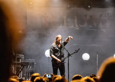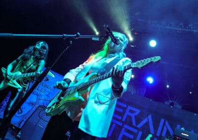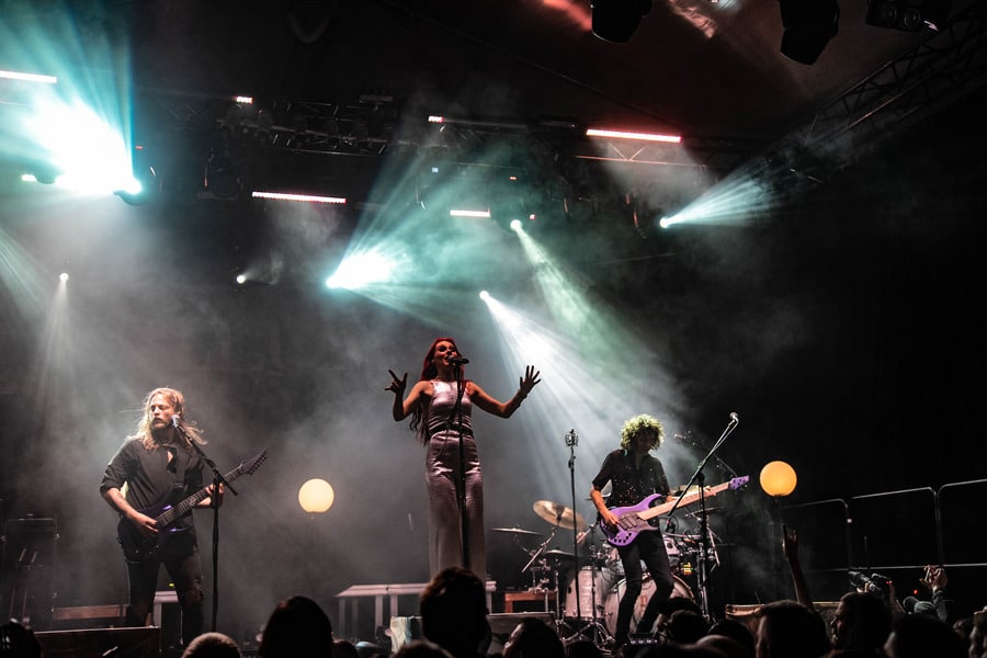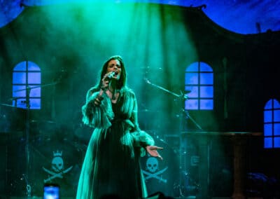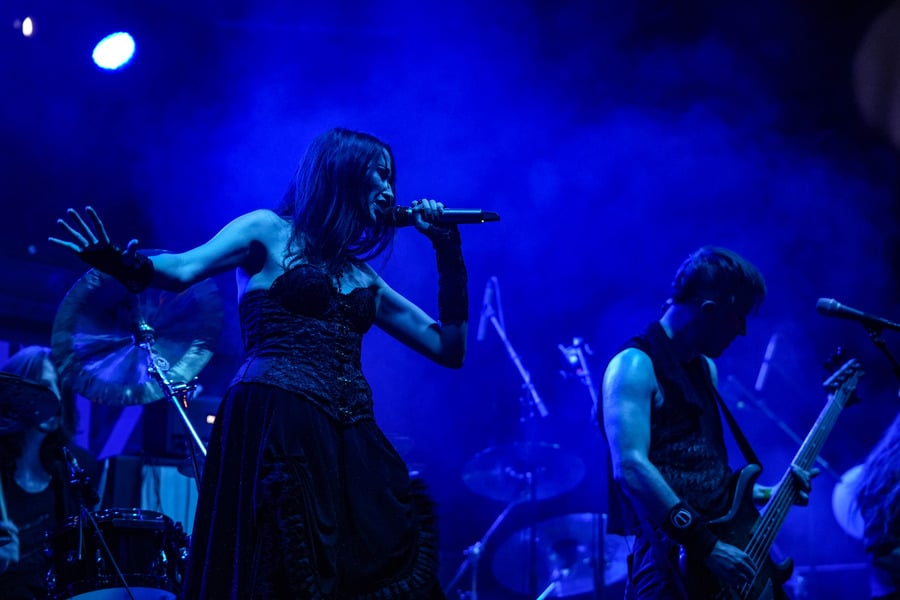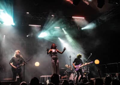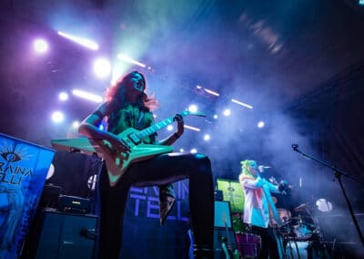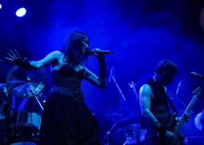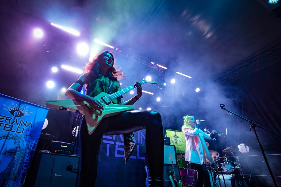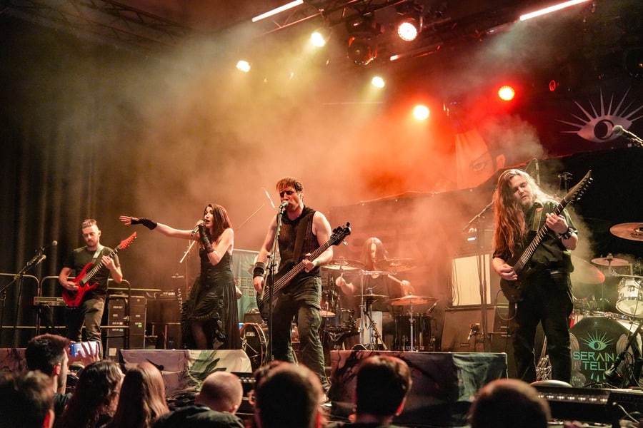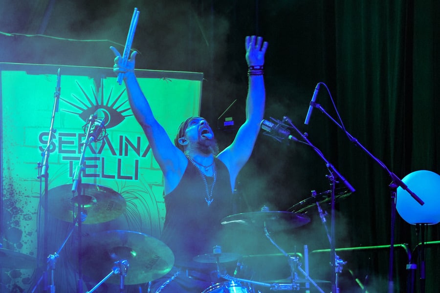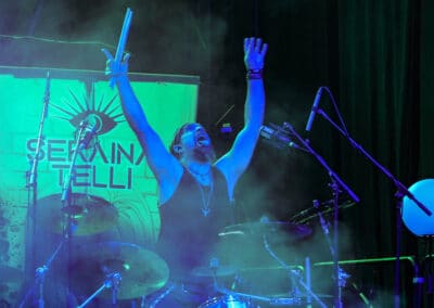 Seraina Telli egy trióval érkezett: egy gitáros hölggyel, valamint egy dobos úriemberrel, aki egyébként (fun fact) kísértetiesen emlékeztetett így távolról a Nightwish első dobosára, Jukka Nevalainenre (titkos második élet?)… Az énekesnő a vokáljait egy második gitárral kísérte. Megjelenése a vártnak megfelelően extrém volt – színes hajat és ahhoz hasonló színű festékfoltokkal díszített, fehér alapú blézert viselt. Leginkább punk-rockként tudnám leírni a szettet, amit játszottak, én személy szerint nem sok különlegességet fedeztem fel benne. Seraina hangja gyönyörűen szól amúgy, nagyon képzett, hibátlan magas mixeket és figcsiket hallhattunk tőle. Ez főleg a negyedik számnál ütközött ki, amit egyedül adott elő egy szál gitárral.