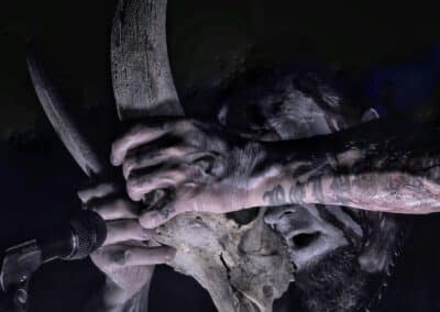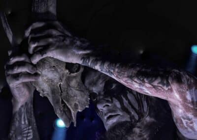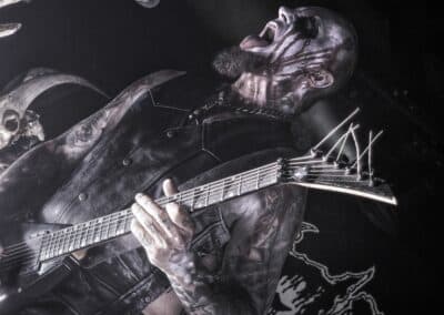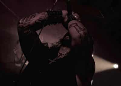 Miután a közönség már kellőképpen belemelegedett a sátánista rituálékba, a szokásos kb. 10 perces intro-nyitány szólt (vagy nem is tudom minek nevezzem ezt) mint állandóvá vált dark zenei bevezető az osztrák istenkáromlók előtt. Túl hosszúnak érzem ezt minden egyes alkalommal, sőt ami a legfurább nekem, hogy ezt a bevezetőt akkor is végig kell hallgatni, ha egy órás csúszásban vannak. De ennek ellenére is elérkezett a várva várt pillanat és színpadra lépett, a blackened death metalt játszó Belphegor. Mondanám, hogy nincs új a nap alatt, ha Belphegor koncertről van szó. Konkrétan felhozták a poklot a színpadra és Helmuth, mint a pokol hercege, vérrel festett arccal lépett fel a mikrofon állványa mögé, hogy földöntúli hangján megszólalhasson a „Fuuuckiiing Pooooolaaaand” kiáltás. Kifejezetten szeretem, hogy nem beszél sokat a közönséghez és nem a történetekkel megy el az idő, hanem a zenével. Több mint 30 év van mögöttük, ám a mai napig nem vettek vissza a lendületből, pont ugyanolyan nyers erő van bennünk, mint korábban. A koncertjeik nem csupán fellépések, hanem élő rituálék. Helmuth többször imitálja Jézust a kereszten és annak mimikáját is utánozza. Tökéletes színházi show, amolyan koncert formába öltöztetett ördögi rítus.