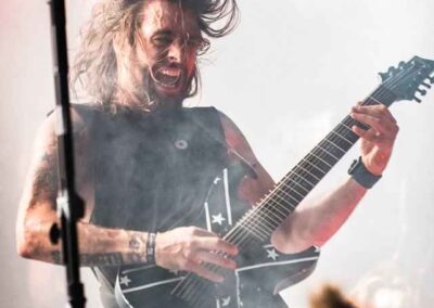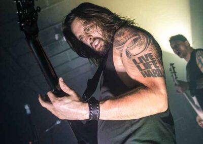 Az estet a Hypocrites Breed nyitotta. Őszintén, a srácokat alig ismertem eddig, szóval először most hallottam a nevüket. Annál inkább meglepett, hogy a megboldogult Leander Rising háttérvédjeként is ismertté vált Németh Ádámot láthattam gitáros/vokalistaként a soraikban, emellett az énekesi poszton pedig Fehér Sándor hörögte ketté a mikrofont, akivel 2016 óta büszkélkedhetnek. Egyébként nem semmi a csávó, nem elég, hogy a hajunk felét leordította, de a HB mellett többek között a Wrong Side és a Sunset basszerosaként is ismerhetjük, ráadásul még roadkodik is itt-ott. Nem lehet rá mondani, hogy elaprózná a dolgot, ahogy a színpadon is igazán morcos és minőségi teljesítményt hozott. Bár csak szűk fél órát kaptak, emlékezetes kis koncert marad a zsúrjuk.