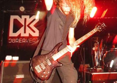 Harmadik, egyben utolsó előzenekarként a tíz év után hamvaiból újraéledt Archaic dörzsölte le az arcunkat. Újraéledtek, de még hogy! Nem elég, hogy az eltelt évek után először adtak a Dürerben nekünk koncertet, de egyből új dalokat hoztak, a várhatóan idén megjelenő lemezükről. Oké, nevük arra utalna, hogy eléggé arhaikus, klasszikus elemekre épülő thrasht játszanak, ez jelen is van, ám mégis újító módon, egyedinek vélhető elemekkel adják elő azt. Nehéz- és talán nem is kell sorba állítani a dolgokat, de a három előőrs közül talán a legkiemelkedőbb zúzdát hallhattuk és láthattuk a zenekar és a közönség részéről egyaránt. A megújult felállásban ezúttal egy kis váltás is történt a színpadon, az előadás felétől Erdélyi Pétert Sipos Andris váltotta, ám mind a ketten nagyszerűen szállították a masszív riffeket. Náluk masszívabb hangokat már csak a kiállásában is meghökkentően tiszteletreméltó, ám tökéletes smirglihanggal rendelkező Jósa Tamás szolgáltatott. Tényleg nagyot ütöttek az olyan számaik, mint a True Death of Life, a Bulletproof vagy a záróakkord After a Kill. Reméljük nem kell újabb tíz évet várnunk a következő koncertjükig!