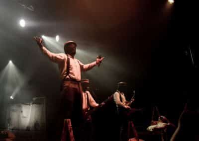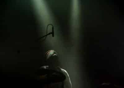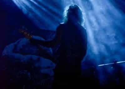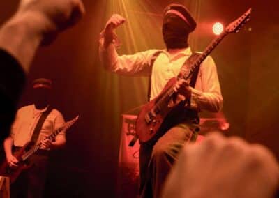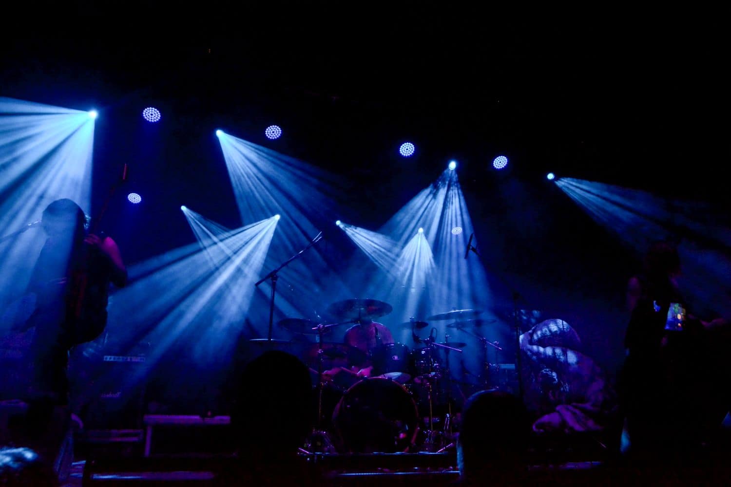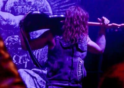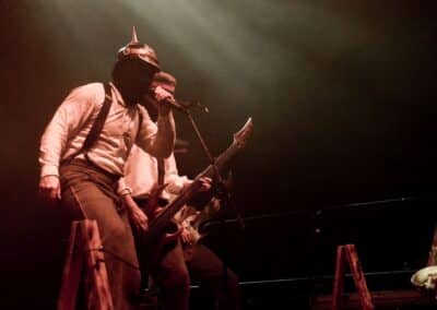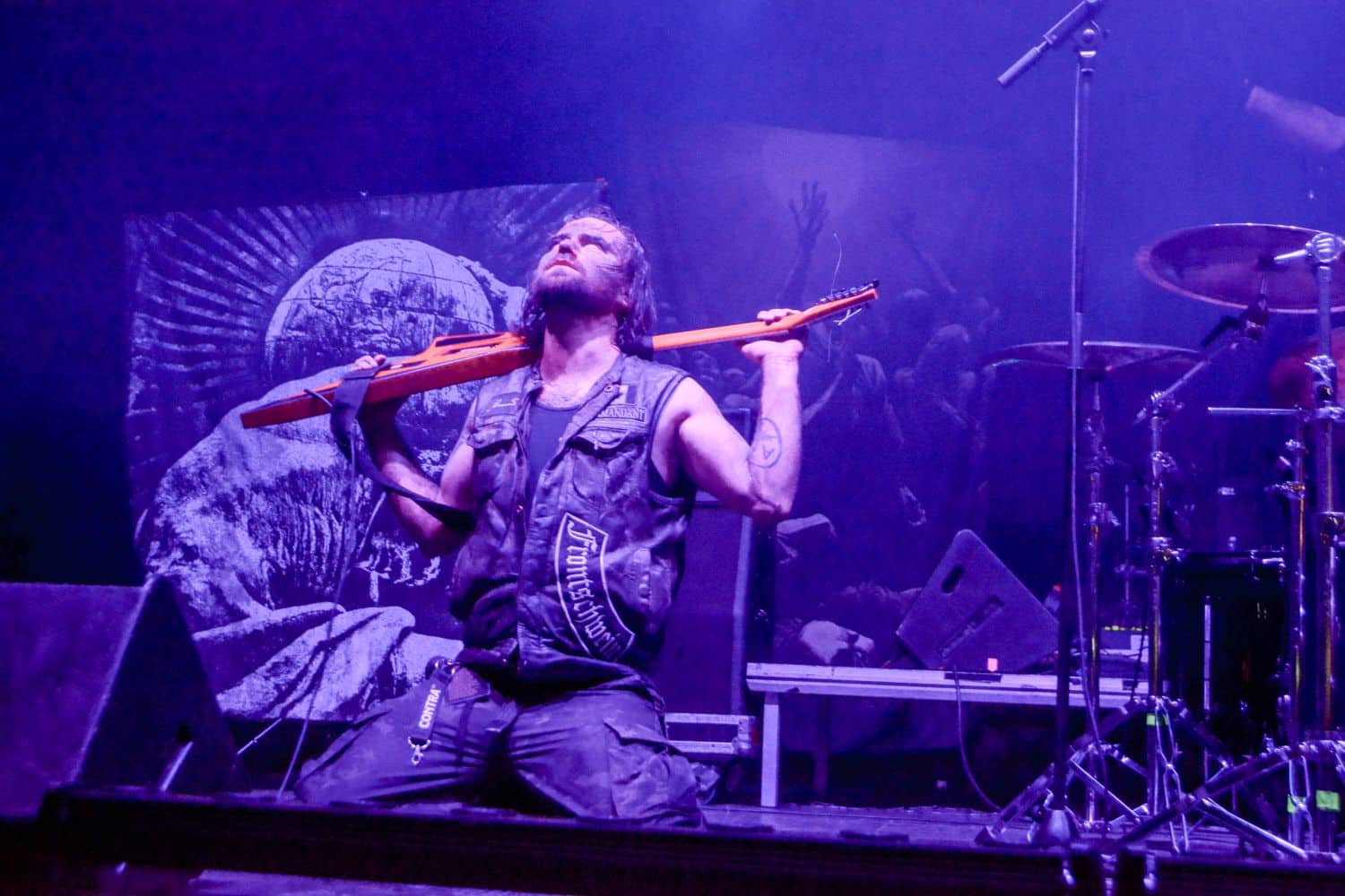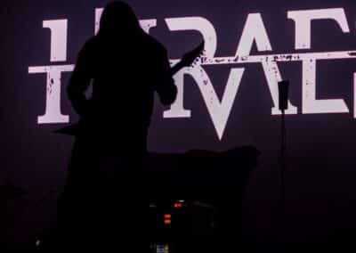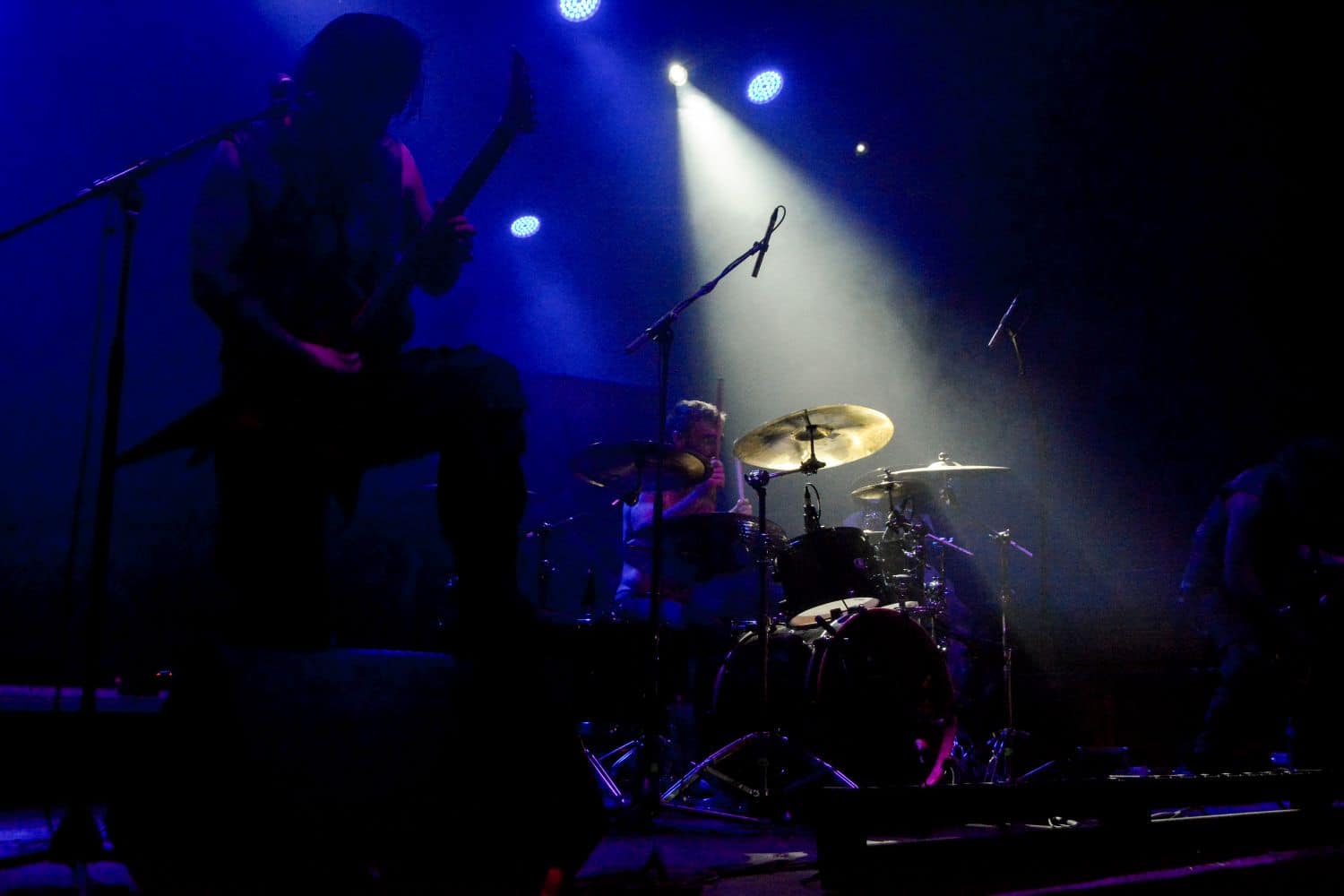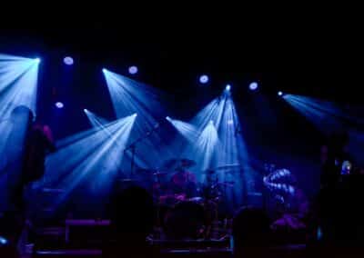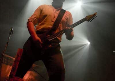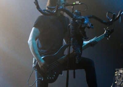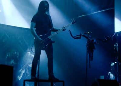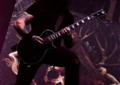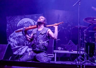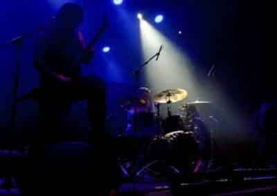 Meglehetősen fontos színfoltjai ők a black metalnak, különleges légkörrel és meglehetősen embert próbáló dalokkal. Nagyon nehéz és sötét ez a zene – a maga dobozában talán nem annyira elborult, mint mondjuk az Amenra a saját ökoszisztémájában, de azért meglehetősen igénybe veszik a hallgatót. Én már sokadjára látom őket; Magyarországon is jártak ezelőtt kétszer, legelsőként a régi Dürerben, és azt hiszem, hogy a missziójuknak tökéletesen eleget tettek: megteremtették azt a sötét és depresszív hangulatot, ami a Kanonenfieber zenéjére való ráhangolódáshoz kellett. A színpadkép a szokásos: a dob emelvényén pulpitus, ez előtt volt összeszerelve a dobcucc, gitár balra, basszusgitár jobbra. Elsőre nem is volt teljesen egyértelmű, hogy hány embert látunk a színpadon, ugyanis a hátsó pulpituson álló énekes a kezdetekben alig-alig látszott a feje fölött elvilágító lámpák fényétől takartan. A gitáros, a basszusgitáros és a dobos nem corpsepaint-ben, hanem ‘corpsemud’-ban lépett föl: kezüket és arcukat sár fedte, és ebben a szerelésben, egyen-bőrmellényben játszottak (The Day After ’Trinity’, The Hesychasm Unchained, Occam’s Razor, The Far Bank at the River Styx, Promethean Fire).