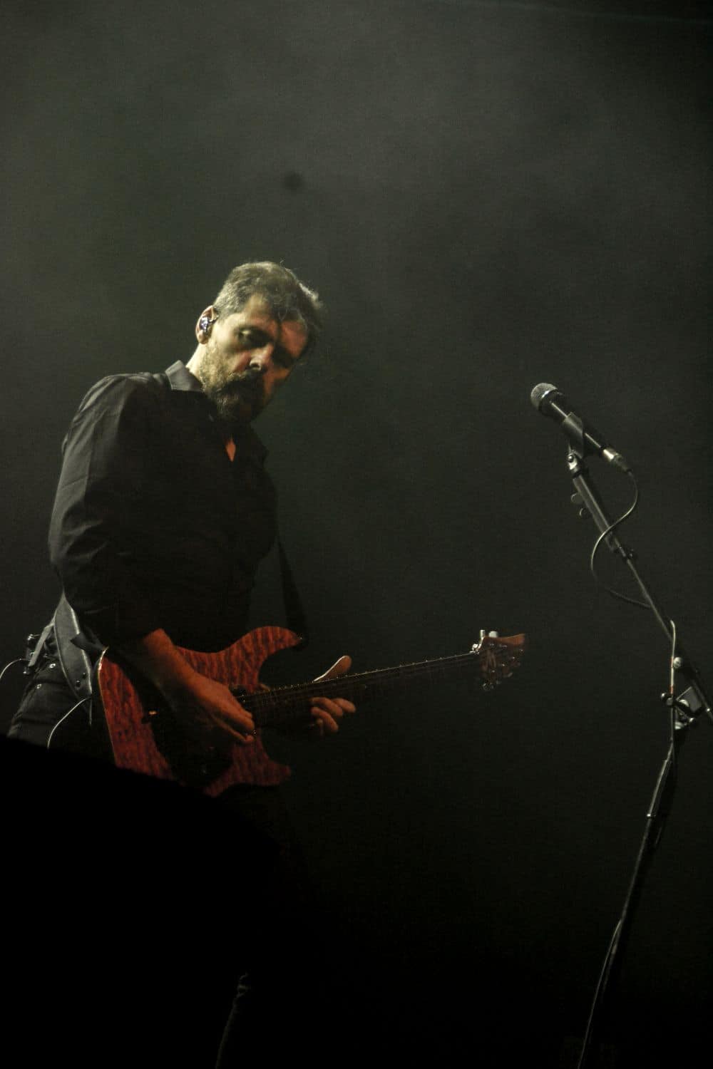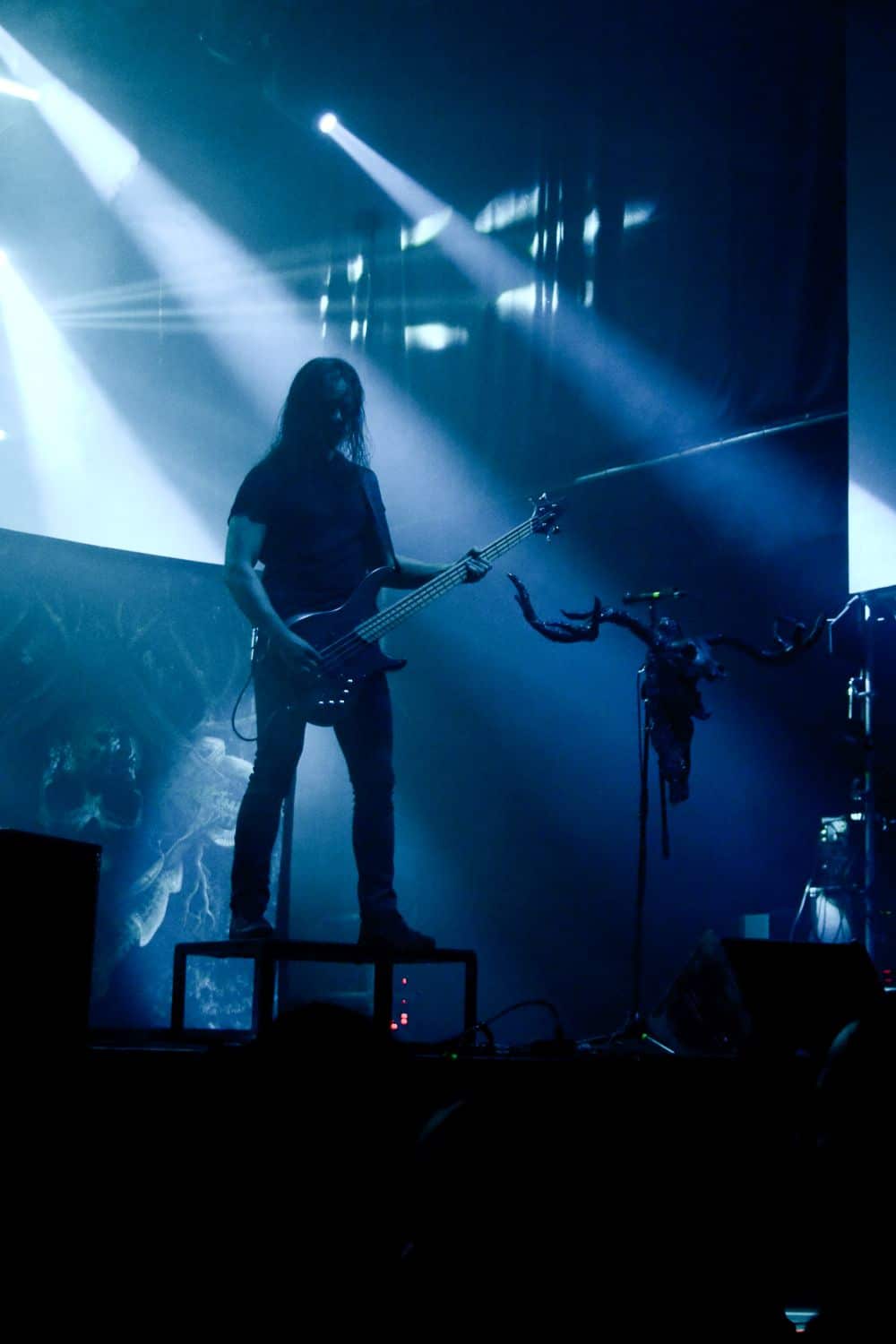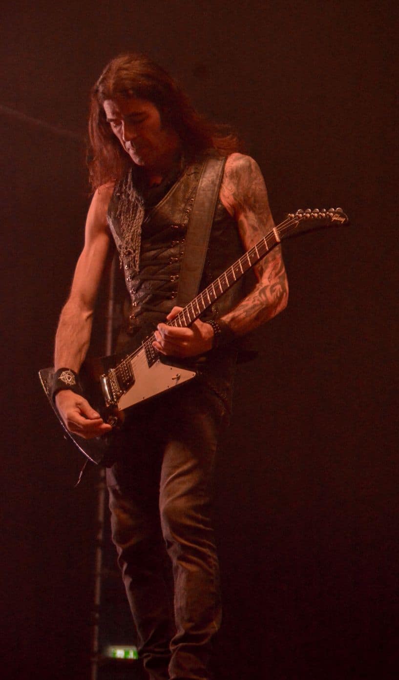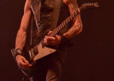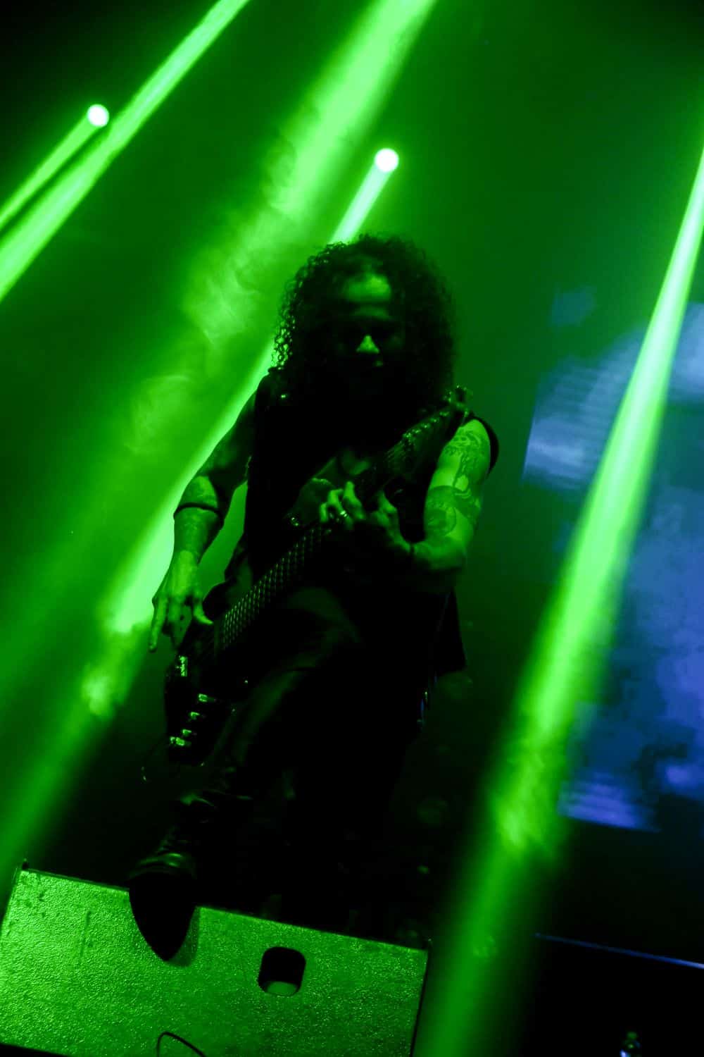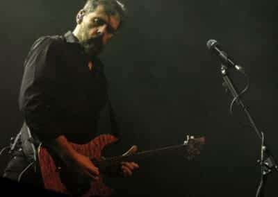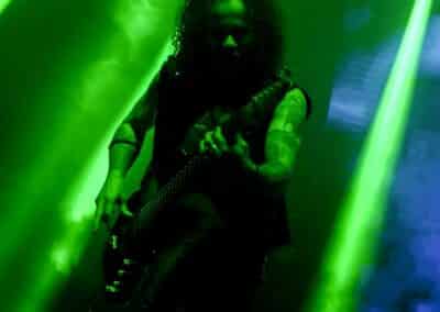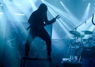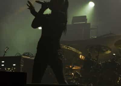 Különösebben nem siettem vissza a Dark Tranquillity fellépésére – a menetrend szerint 100 percet játszottak, és úgy voltam vele, hogy kis késéssel is befuthatok akár – és ez stratégiai hibának bizonyult: a tömegből való fényképezést is csak az első három szám alatt engedte a zenekar, én meg sikeresen be is futottam a negyedikre. A Dark Tranquillity zenéje tökéletesen illeszkedett az este ívébe: a fürge, izgága Wolfheart után a kicsit nyugodtabb Moonspell egyszerre hozott izgatottságot és lehiggadás, és ez a két ellentétes érzés együtt oldódott fel a Dark Tranquillity zenéjében. Nehéz megítélni az ő melodeath-üket: ha pozitívan futunk neki, akkor ez egy nagyon kellemes, dallamos, kicsit melankolikus – de azért időnként pörgős – zene, ami alapvetően egy hangulatot teremt meg, és az élményért hallgatja az ember. Ha meg cinikusak vagyunk, akkor lehet azt is mondani, hogy ez márpedig egy biztonsági játék, amelynek során a zenekar próbál elkerülni minden olyan elemet, amelyik veszélyes vagy provokatív lenne, esetleg a csapda lehetőségét hordozza magában. Én tulajdonképpen egy arany középútnak tartom a Dark Tranquillity zenéjét, nagyjából valahova oda helyezve el őket a saját koordinátarendszerükben, mint ahol a Paradise Lost található a magáéban. Nem olyan régen jött ki az utolsó anyaguk (Endtime Signals), így értelemszerűen az album dalainak bemutatása mellett megvoltak a kötelező best-of dalok, és mindezt sikerült még soha nem látott tétel (Empty me) első eljátszásával megfűszerezni (The Last Imagination, Nothing to No One, Wayward Eyes, Unforgivable, Hours Passed in Exile, The Dark Unbroken, Final Resistance, Cathode Ray Sunshine, Atoma, Shivers and Voids, Not Nothing, Empty Me, Our Disconnect, Phantom Days, ThereIn, The Wonders at Your Feet, Lost to Apathy, Misery’s Crown). Teljesen érthetetlen, hogy ez hogy maradt le az eddigi setlist-ekről: élvezetes dal, magában hordozva a Dark Tranquillity-re jellemző higgadttság, letisztultság és határozottság egyensúlyát. Aztán persze az ő idejük is eljött; hiába, semmi nem tarthat örökké, és a Misery’s Crown utolsó hangjai tulajdonképpen lezárták egy hosszú, izgalmas zenékkel teli ősz utolsó koncertjét.