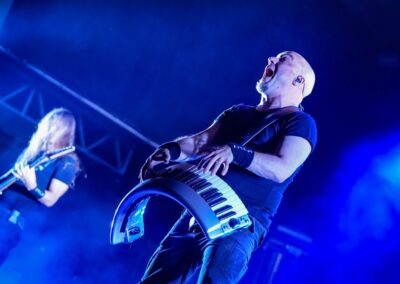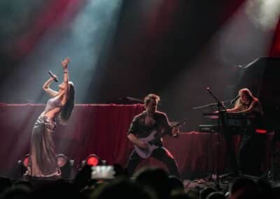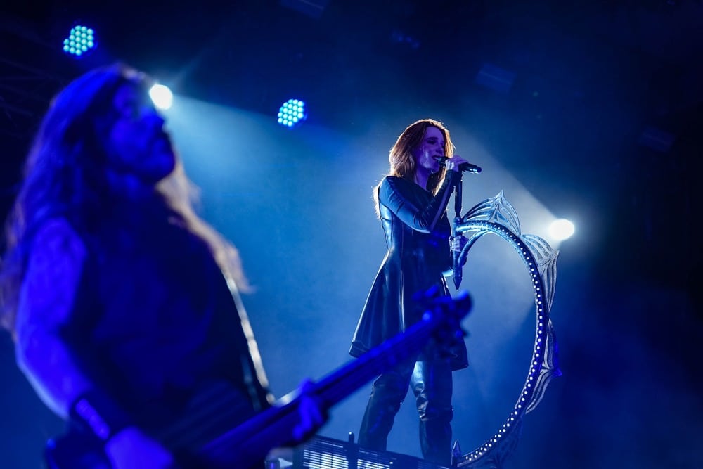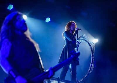 Előadták a Sirens – Of Blood and Water című szépséges balladát, melyre Charlotte is visszatért a színpadra (hiszen eredetileg is ő az egyik, aki featel a dalban Simone és Myrkur oldalán). Vártam Elize-t is az Amaranthe-ból, de nem spoilerezte le magát végül a saját koncertjük előtt. Aztán Simone szépséges hangja és elismerésre méltó énektechnikái még inkább megmutatkoztak a Tides of Time című számban, amit ketten adtak elő Coen zongorakíséretével.