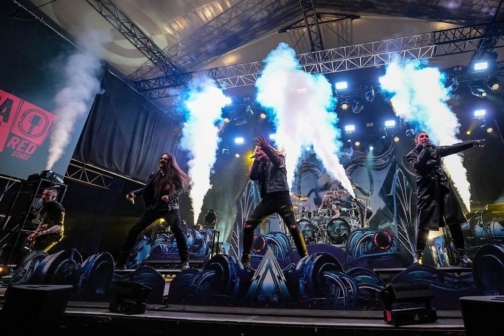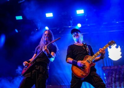 A háromfrontemberes felállás továbbra is nagyon szép és igézőek mindhárman, az energiák hatalmasak voltak végig a koncert alatt, minden tag kitett magáért még így a turné vége felé is. Elize ismét bizonyított az Amaranthine intrójában, majd persze minket is énekeltetett a refrénben. Most is Nils Molin énekes konferált a legtöbbet, mint általában, és nem hagyta ki a dumából a jól ismert szarkasztikus humorát sem. Persze mindkét headliner banda elmondta, hogy mi voltunk az egyik leghangosabb közönség a turnén, és most mutassuk meg, hogy nagyobbat tudunk-e üvölteni, mint a tegnapi vagy az azelőtti vagy a holnaputáni közönség. (Mi ez, játszócsoport?)