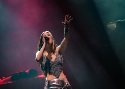 Tehát az Amaranthe a Fearless című, egyébként szerintem nagyon erős számával kezdett be a tavaly előtti barbás koncertjükhöz hasonlóan. Sajnos ezen a koncerten már nem éreztem akkora eufóriát, mint a korábbin, ennek több oka is lehet. Egy, hogy ahol mi álltunk, valahogy nagyon nem volt jó a hangzás, kb. a cintányérok sistergése volt a leghallhatóbb, a gitár és az énekek nagyon összemosódtak. Kettő, lehet, hogy kezdi elveszíteni számomra a varázsát ez az egész, vagy az elmúlt években sok koncerten voltam, pl. rajtuk is háromszor, de szeretném hinni, hogy nem erről van szó. Három, lehet, hogy simán csak ki vagyok égve érzelmileg lol, meg a svédek koncertje alatt is figyelnem kellett a pogóra és a részeg/bármilyen bármik hatása alatt magukról nem tudó emberek cselekedeteire.