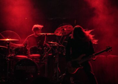 A koncert kezdetét egy videóvetítés jelezte. Nekem tökre betalált, azt mondta el benne egy férfi hang, hogy ebben a pillanatban valami sokkal nagyobbnak vagyunk a részei, mint egy koncert, ez egy kollektív élmény, ahol az idegenek is egy közösséggé válnak, stb., és a végén előkerült, hogy ezért most tegyük el a telefonokat… természetesen nem sokan hallgattak a parancsra (én se.. egy dalrészletet meg akartam örökíteni). Majd visszaszámlálás aaaa…. semmiig. Nem történt semmi a visszaszámlálás végén, hanem kicsivel később érkeztek meg a zenészek és dörrentek be az Apparition súlyos riffjei. Azonnal elragadott a hév, hogy milyen keményen szólnak a gitárok, már el is feledkeztem erről a fezenes koncertjük óta – aranyhal-memóriával legalább újra meg tudott lepni, haha. Az első pár dal ilyen extatikusan telt a lüktető riffekkel, Simone gyönyörű vokáljaival, a hangszeresek rabul ejtő energiáival.