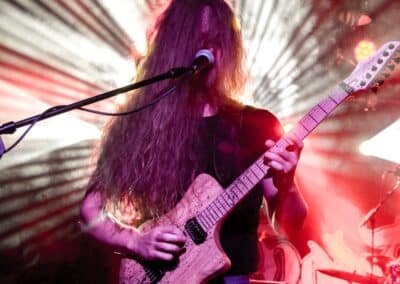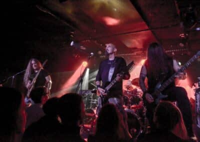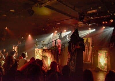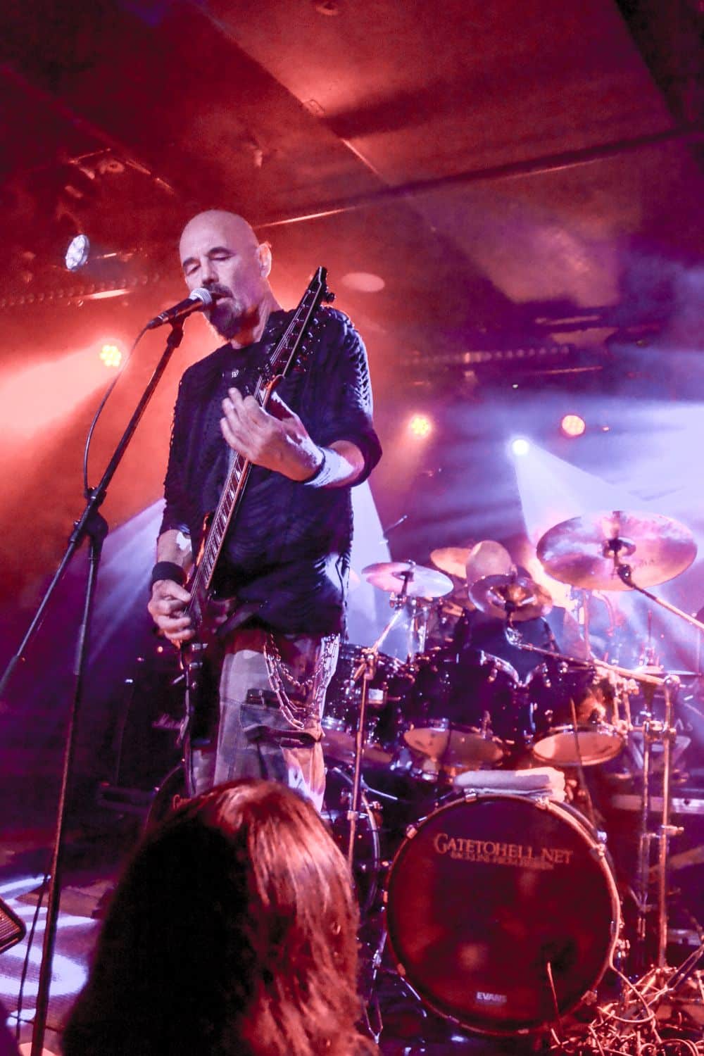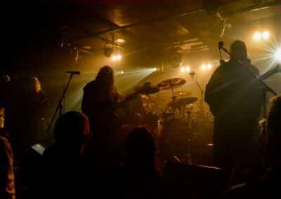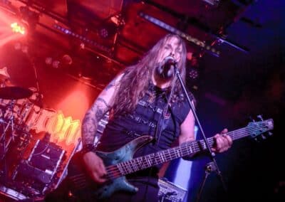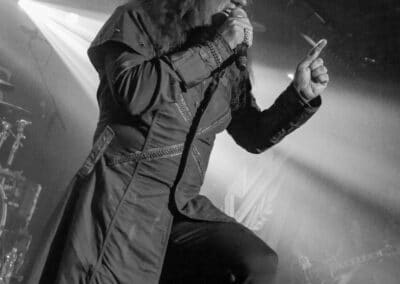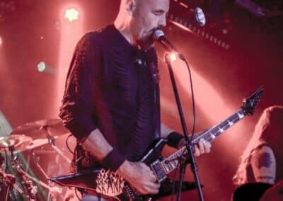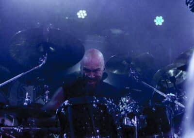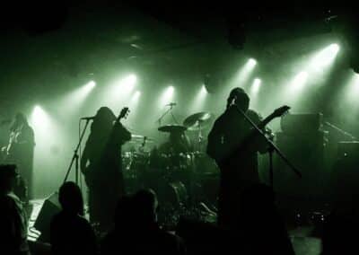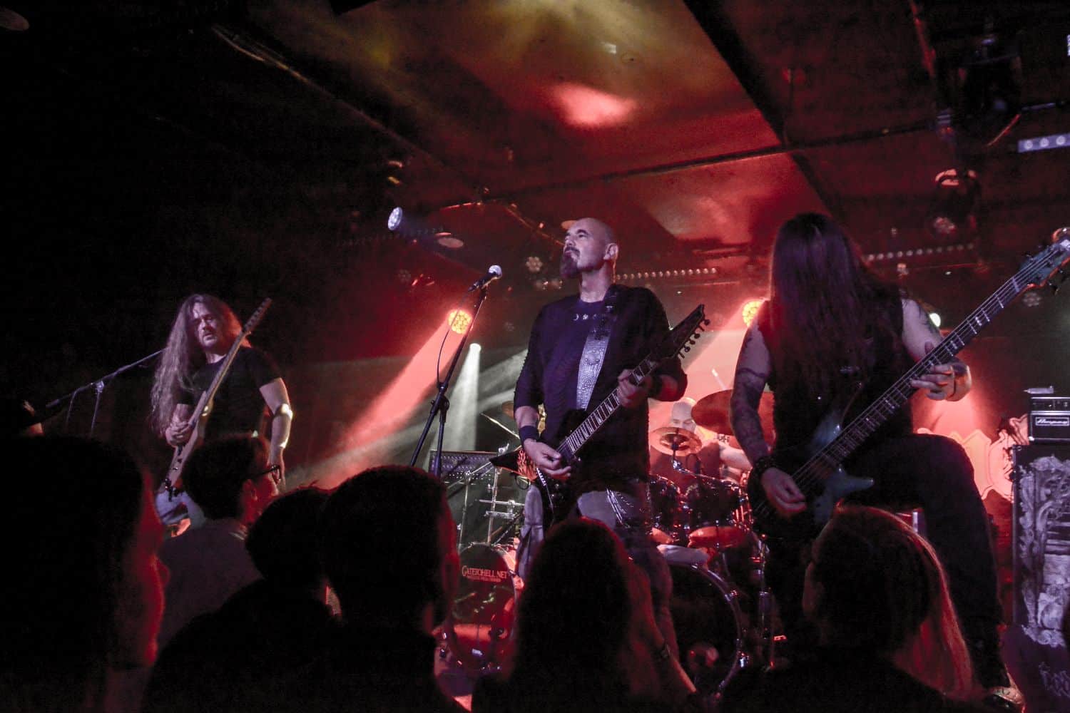 A God Dethroned-ot nem kell bemutatni: igazából számomra ők az extrém metal egyik nagy megoldatlan rejtélye. Az a blackened death metal, amit játszanak, szívemhez mindig is nagyon közel állt, és a Henri által bő 30 éve összegründolt zenekar folyamatosan aktív, figyelemreméltó anyagokat ad ki, de valahogy – szerintem teljesen méltatlanul – mindig az előzenekar, a másodhegedűs szerepe jut rájuk. A God Dethroned hetekkel a turné előtt jelentkezett legújabb anyagával, így a várakozásokkal összhangban ez képezte fellépésük gerincét. Az Ater buliját követően villámgyors átszerelés következett, és máris a színpadra pattant a God Dethroned legénysége. A fentebb említett értetlenkedés további táptalajt és megerősítést nyert: egy nagyon jól összerakott, pörgős, élvezhető, tisztán szóló fellépéssel érkeztek a hollandok; az embernek tényleg mosolyra görbül a szája a zene hallgatása során. Valóban, a The Judas Paradox alkotta a fellépés gerincét öt tétel erejéig; többen úgy vélték, hogy az új anyag kicsit kilóg a sorból, nehezebben emészthető, mint a God Dethroned korábbi albumai, de ebből a félelemből az élő fellépés során semmi nem jött át: a dalok tökéletesen illeszkedtek a koncert ívébe. Mivel összesen kilenc számra volt idejük (Asmodeus, The Hanged Man, Rat Kingdom, Spirit of Beelzebub, Serpent King, Boiling Blood, Illuminati, Hubris Anorexia, The Judas Paradox), így még az Illuminati és a Blood Blasphemy albumokról is tudtak két-két tételt játszani – és rövidke fellépésük ezzel véget is ért. A törzstag Henri Sattler körül többé-kevésbé folyamatosan mozgás van, cserélődnek a tagok, ám ebben az idézőjeles jövés-menésben mindenképpen kiemelendő Dave Meester működése: a régebbi szólókat Henri maga játszotta, az újabb tételeknél pedig tisztán látszott, hogy az övé az ének plusz kíséret, és a bonyolultabb gitáros dolgok Dave-re jutottak. A fiú egészen fantasztikus technikai tudással rendelkezik, sokan csak tátott szájjal bámultuk a szólóit, és az, hogy ezeket kristálytisztán lehetett hallani, tulajdonképpen kimaxolta az élményt.