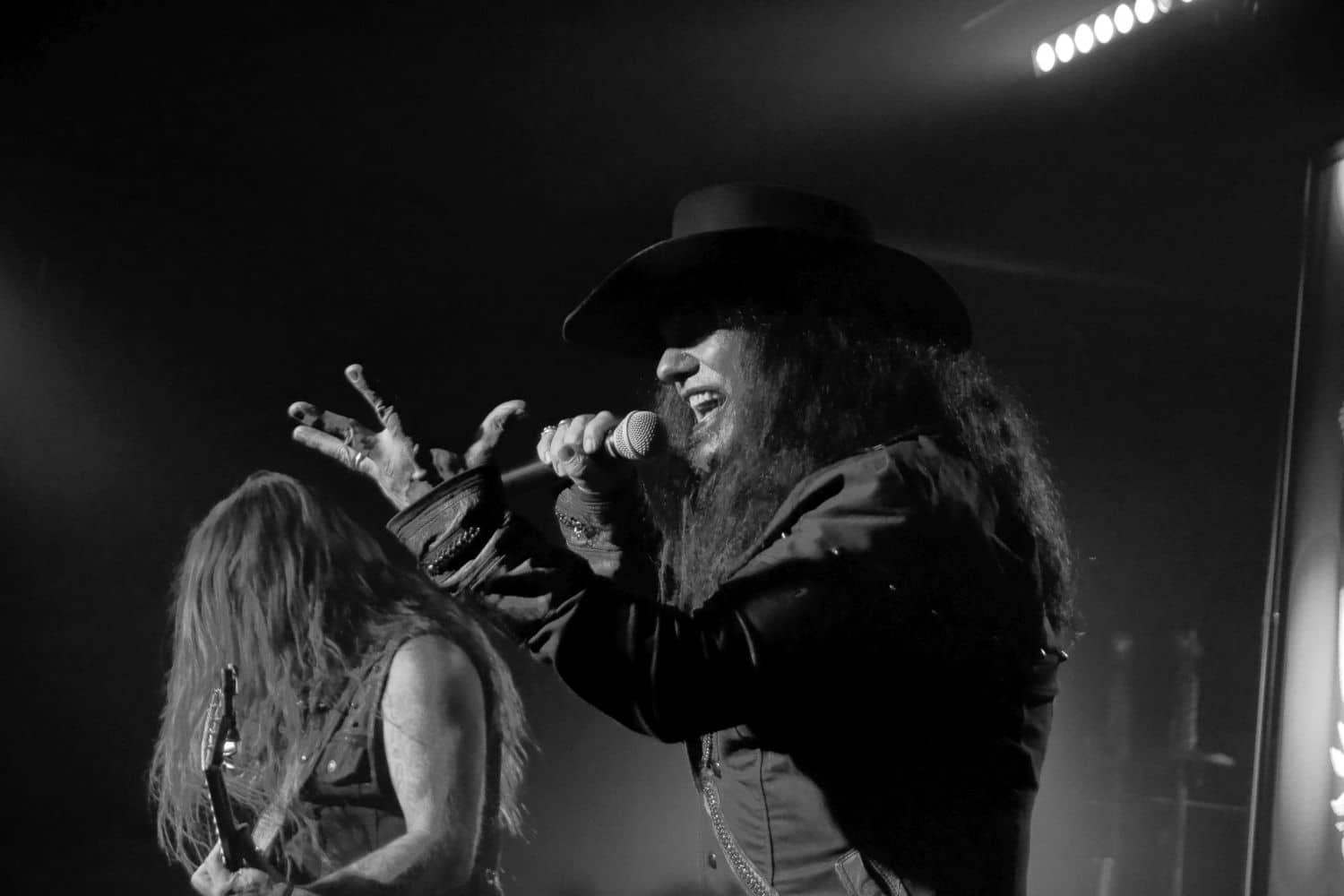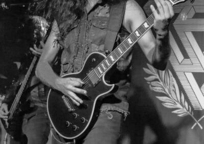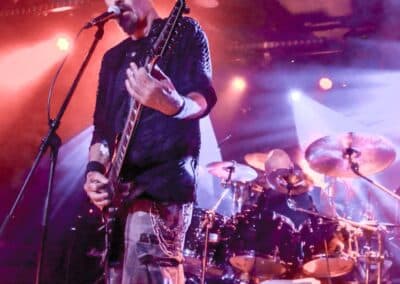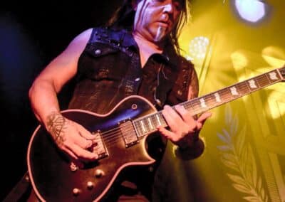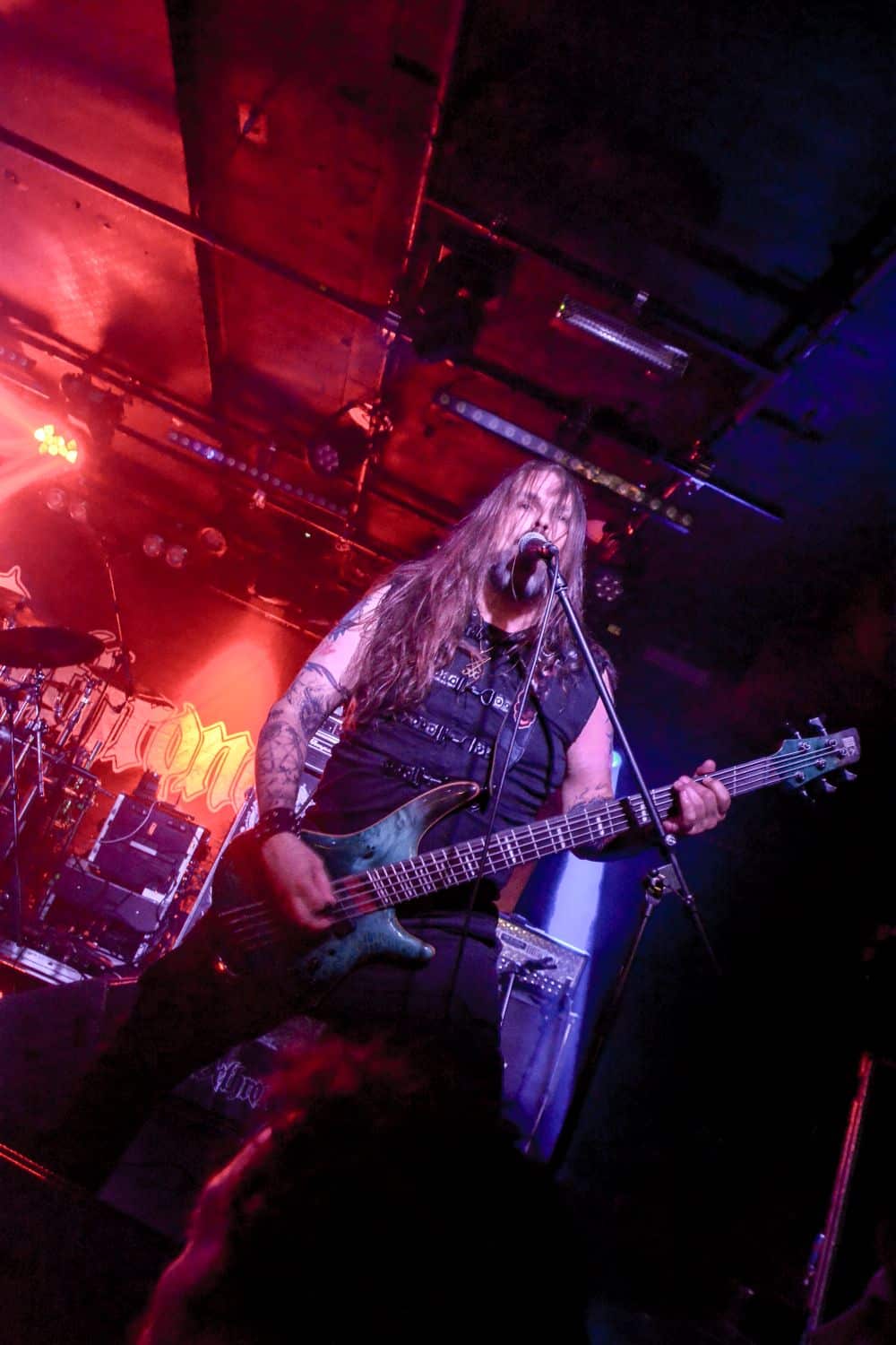 A God Dethroned futólépésben távozott, színre lépett az Vltimas. Rune próbálja a lehető legtöbb helyre elvinni az Vltimas albumait, így jutottak el most a Patriarkh előzenekaraként Budapestre – és azt kell mondjam, mindenképpen nehezen felejthető bulit produkáltak. A fellépés gerincét a márciusban megjelent EPIC album dalai adták (EPIC, Praevalidus, Invictus, Mephisto Manifesto, Exercitus Irae, Last Ones Alive Win Nothing, Nature’s Fangs, Scorcher, Miserere, Everlasting), de természetesen halhattunk dalokat az öt évvel ezelőtti anyagról is. Az EPIC – megoldásait tekintve – más, mint a korábbi Something Wicked Marches In album, ezzel együtt tökéletesen érződött-hallatszódott, hogy ugyanaz a két agy és négy kéz áll a zenei ötletek hátterében. Megosztó lehet David énekstílusa: a Miserere és a Mephisto Manifesto tételekben vannak olyan klasszikus énekrészek, ahol David rendesen ki tudja ereszteni a hangját; ezeket a részeket többen borzalmasnak találták, e sorok írója viszont inkább egy színes egyéniség kreativitásának egyik vetületeként jellemezné ezt az énekstílust. Mindez persze totál idegen attól, amit a Morbid Angel énekes-basszerosától várunk, ugyanakkor az egész Vltimas-hoz szerintem remekül passzolt. Ami nagyon fontos: a hangzás itt is kristálytiszta volt, nem kellett azon gondolkodni, hogy melyik dal melyik részénél járunk, lehetett szépen a zenekarról énekelni. Nem emlékszem, hogy mikor láttam utoljára Eriksen-t gitározni – több, mint tíz éve az Aura Noir-ral –, így most tűnt fel az egészen furcsa pengetési stílusa: magasan tartja a kezét, sok centivel a húrok felett, és a húrláb alatt támaszkodik; a nagykönyvek szerint így teljesen lehetetlen gyorsan és tisztán játszani, és az egész fellépés során nem tudtam megszabadulni attól az érzéstől, hogy a nagykönyvek íróit érdemes lett volna meginvitálni: még árgus szemekkel figyelve is, Rune kristálytisztán és halálpontosan játszott.