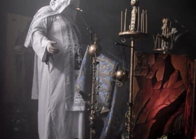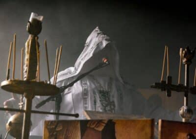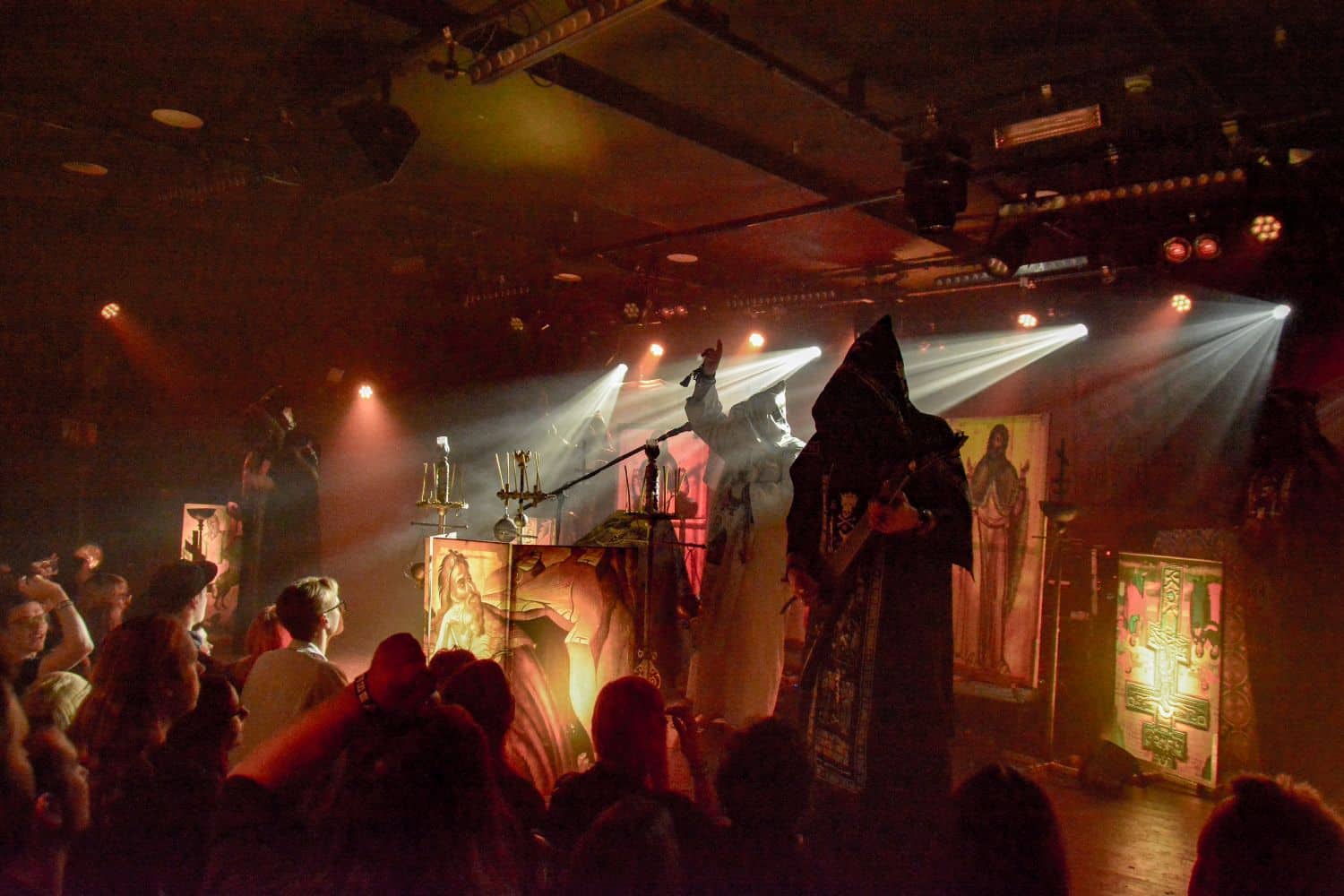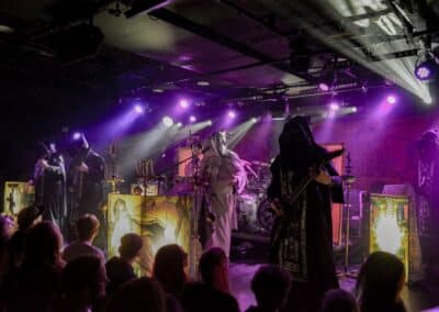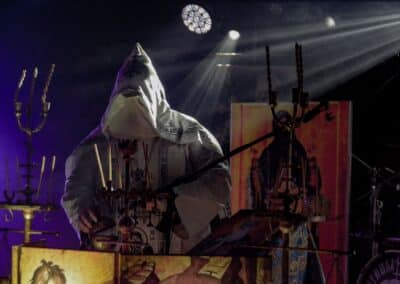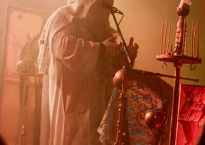 Az eredeti Batushka osztódása óta bajban vagyok, hiszen mindkét ilyen néven futó intézmény hordoz magában olyan erényeket, amelyek miatt nem célszerű őket ignorálni. A zenei ötleteket és a hangszeres kreativitást – legalábbis az én véleményem szerint – Krisztofor vitte magával a Batushka-ba, és a Bartholomej-féle Patriarkh az énekhangot, az orgánumot örökölte meg az eredeti zenekarból. Kérdés volt annak idején, hogy hogyan lehet ezzel a formációval továbblépni: az első album akkora dobás volt, annyira újszerű és egyedi volt az ötlet, hogy ez magától értetődően felvetette a hogyan tovább kérdését is. Természetesen ezt az ötletet megismételni nem lehet, felülmúlni meglehetősen nehézkes, így hát – erősen idézőjelekben – maradt a folytatás, amelynek során az ilyen-olyan Batushka-k a majdnem tíz évvel ezelőtti koncepcióra alapozva fejlődtek tovább és jelentkeznek időnket új anyagokkal. Nehéz ez a szerep, hiszen ők tulajdonképpen a semmiből teremtettek valamit – az unortodox black metal-t –, és innentől arra korlátzódik a feladatuk, hogy ezt a kis univerzumot belakva zenével töltsék ki azt. Én azt gondolom, hogy ez mindkét zenekarnak tökéletesen megy, és innentől az egyéni ízlés határozza meg, hogy kinek mi a prioritás: Bartholomej Hermh-ből ismert, egészen elképesztő mélységekkel rendelkező, mindent átható énekhangja – vagy pedig Krisztofor zenei ötletei és hangszeres tudása. Volt, aki számára az Vltimas volt a nap fellépése, és számukra az este ezen a ponton véget is ért – de jól láthatóan sokak számára a Patriarkh fellépése volt a csúcs. Teljesen egyértelmű, hogy a Yekteniya-val kell kezdeni: a III és IV tökéletesen megalapozta az egész fellépés atmoszféráját. A Patriarkh fellépéseit alapvetően a színpadkép dominálja, ez szervesen segíti elő az unortodox black metal befogadását, és ebben a színpadképben egyetlen jelentős változást lehetett most tetten érni: Bartholomej immáron nem fekete, hanem fehér ornátusban lépett fel. Nem pontosan kronologikus sorrendben, de végigtekintettük a Patriarkh eddig megjelent anyagait (Yekteniya III, IV, Wieczernia, Powieczerje, Polunosznica, Utrenia, Irmos II, III, Pismo IV, Wierszalin III, IV és VIII); tiszta volt a hangzás, ami nélkül a Patriarkh fellépése fabatkát sem ér, és tényleg magávalragadó volt hallani – különösen az utolsó tételek során – a mély, minden teret betöltő férfikórus énekhangját. Ha valamiben a Patriarkh nagy, az a légkör megteremtése és az énekhang: Bartholomej is és a kíséret is fantasztikus orgánummal bír, ami a gerincét képezi a fellépések atmoszférájának, ezzel együtt számomra a Patriarkh koncertjei mindig ambivalensek: egyfelől örömmel tölt el, hogy az első közös album dalait meghallgathatom, és utánozhatatlan élmény a mélyen szóló és minden teret betöltő férfikórus hangja – ugyanakkor számomra kicsit fájó a Patriarkh zenéjének egyveretűsége.