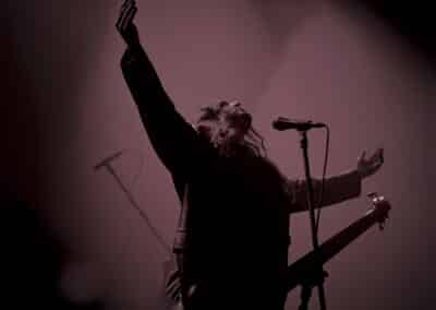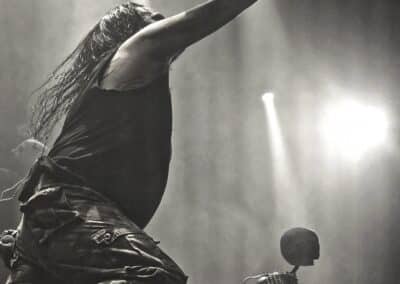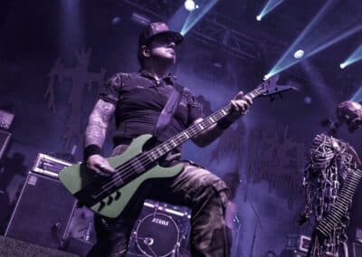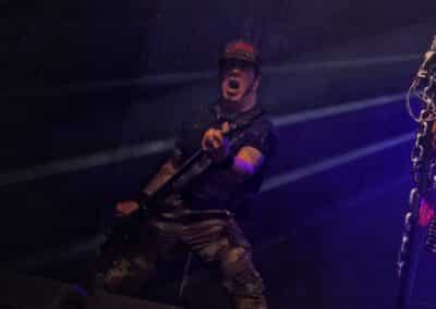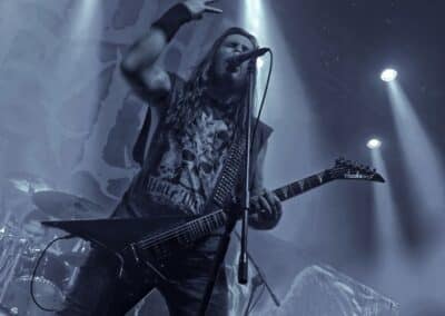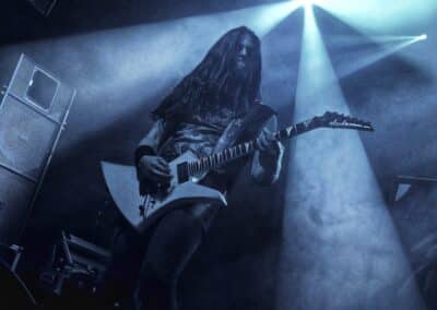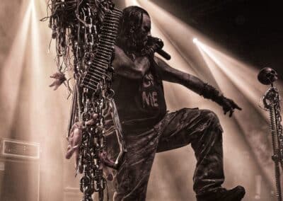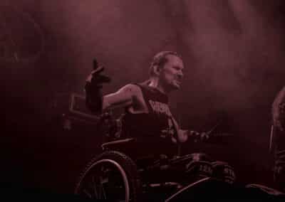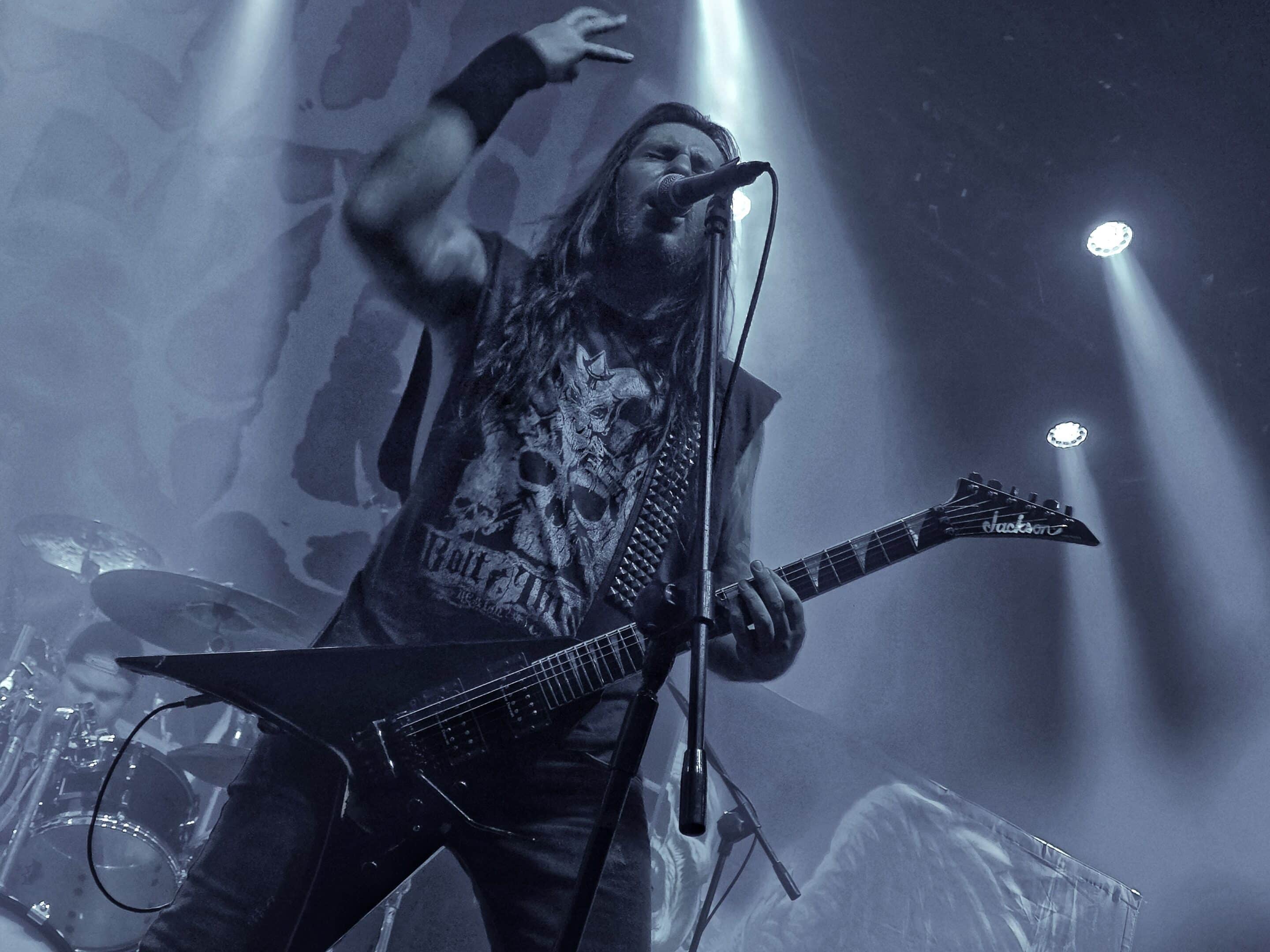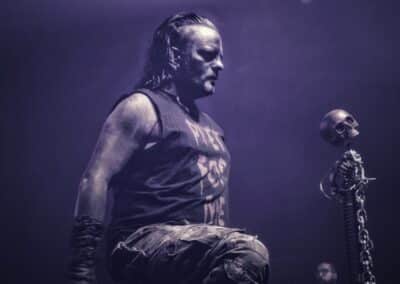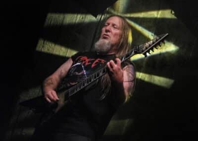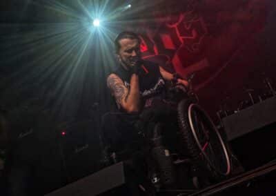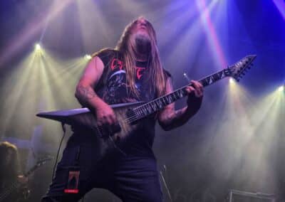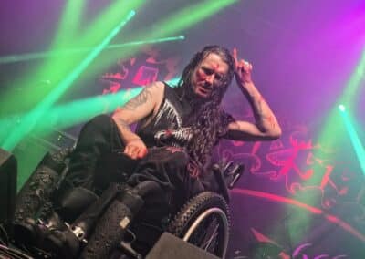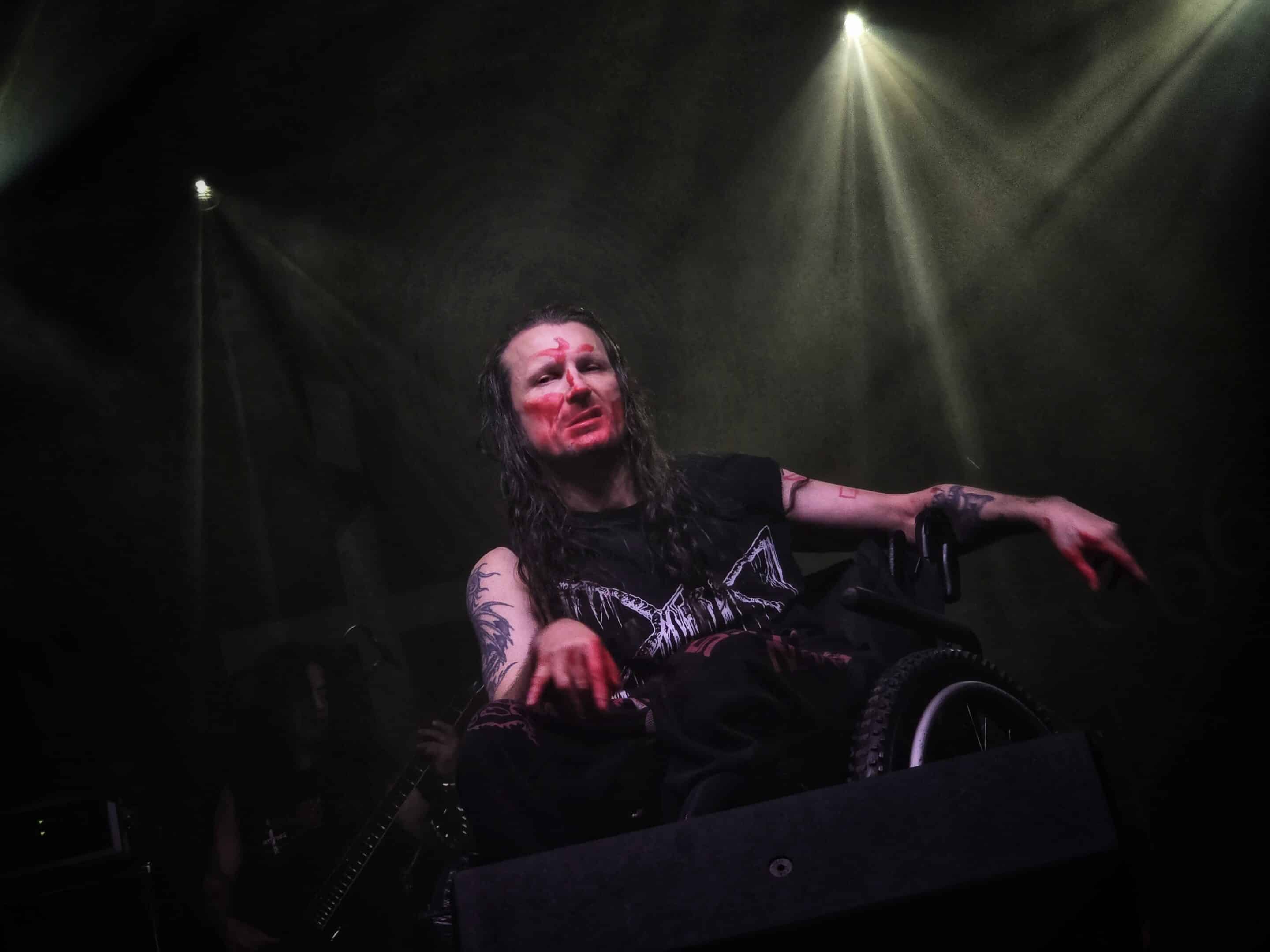 A Terrorizer után a Possessed következett. Tudom, hogy egy régi legendás és ikonikus bandáról van szó, de nekem ők kimaradtak az életemből idáig. Hallani is onnan hallottam róluk először, amikor szeptemberben kint voltam Poznanba és beszélgettem egy sráccal. Ő mondta, hogy a Possessed koncert lesz neki a következő mert még nem látta őket és meg akarja nézni mivel nem tudható, hogy az énekes állapota miként és hogyan alakul. Ekkor gyorsan rá néztem / kerestem, hogy ki is az a Jeff Becerra. A bepakolás közben már találkoztam Jeff-fel és látszik rajta, hogy megviselte az élet. Tény, hogy egy mellkastól lefelé való lebénulást én még droggal és alkohollal se tudnék elviselni. Úgyhogy hatalmas respect előtte! Volt elvonón, de látszott rajta, hogy vagy iszik, vagy használ valamit mert fura volt és kissé zavartnak tűnt. Feljöttek a színpadra és megkezdődött a koncert. Látszott rajta, hogy mennyire boldog és a többi tag is 100%-os erőbedobással játszott egész végig. Nagyon nem lehet egyszerű kerekesszékben zenélni pláne, ha mellkastól lefelé nem tudsz mozogni. Kemény volt. Látszott sokszor, hogy gyorsan oda menne valahova, de a kerekek nem mindig úgy engedelmeskedtek, ahogy kellett volna és megakadtak valamiben. Volt, hogy a gitárosok segítettek neki, akik a koncert teljes ideje alatt figyeltek rá. Jeff a koncert közben elővett egy zacskót amieben Possessed felvarrók voltak és azokat kezdte el bedobálni a közönségnek. Sikerült egyet elkapnom nekem is, ami még dedikálva is volt általa. Persze ettől a cselekedettől a közönség még jobban belelkesedett. Akármennyire is látszott rajta, hogy nem egyszerű neki mozogni a színpadon, külön pozíciót kellett felvennie, hogy énekelni tudjon. Ennek ellenére is láthatóan boldognak tűnt, jól érezte magát. Integetett, nevetett, metal-villázott és rengeteget kontaktolt a közönség tagjaival, akik ezt kitörő örömmel fogadták. Szerencsére itt már a hangosítás is szuper volt, ezáltal mindent jól lehetett hallani az énektől a gitárokon át egészen a dobig. Hiába a csúszás, ami itt a végére már átlépte az egy órát, a koncert zavartalanul lezajlott.