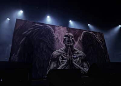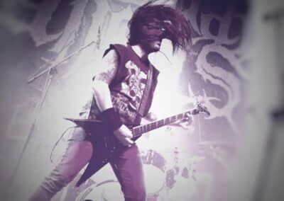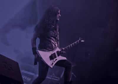 Figyeltem, hogy az átszerelésnél az amúgy majd 50 perces csúszás ellenére se kapkodnak vagy igyekeznek behozni a lemaradást. Totál nyugisan felkerült a molinójuk is a színpad közepére, amit be kell valljak még mindig nagyon jól néz ki. Reménykedésem a hangzás változásban a Suicidal Angels-nél már a pozitív felé csapott át. Már majdnem remekül kihallható volt minden, vagy itt is tudtam az emlékeimből meríteni, hiszen őket már ismertem a korábbi fellépésekből. A közönség is igazából már itt indult be jobban és már sokan is voltunk ahogy hátra néztem. 1800 fő körül volt az este, ami szerintem azért nem rossz, sőt. Viszonylag rövid setlistet hoztak a görög trash metal angyalok is. De ez van, ha öt banda lép a színpadra egyetlen este alatt.