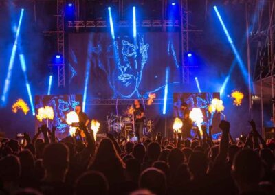 Muszáj pár szót ejteni a színpadképről és a színpadi külcsínről is! A Barba Negra Trackben már megszokhattuk a háttérvetítéseket, ám itt két további plusz ledfal volt elhelyezve a porond két oldalán, melyen folyamatosan mentek a vetítések. A három kijelző tökéletesen össze volt hangolva, a klipprészletek, valamint direkt a vetítővászonra gyártott videóanyagok komoly pluszt adtak a produkcióhoz. A viszonylag új, ledes, világítós mikrofonállványokat már láthattuk párszor, talán kicsit túlzásnak tarthatják páran, ám saját véleményem szerint tökéletesen kiegészítette a profi világítást.