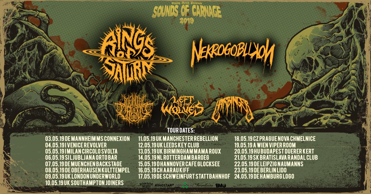 Májusban érkezik Budapestre, a Dürer deszkáira, a Sounds of Carnage turné a tengerentúlról. A turné fő fellépője a méltán híres és kellően őrült space-deathcore brigád a Rings of Saturn. 2017-ben jelent meg a legutóbbi albumuk, az Ultu Ulla, ami mesterien ötvözi a deathcore brutalitását, és a technical death metal dallamait.