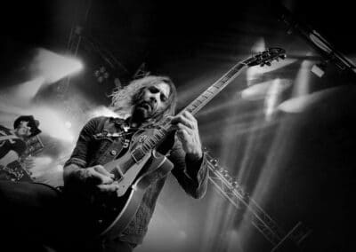 Egyértelmű, hogy a két fivér a főkolompos a bandában, a színpad elején átszellemülten tolták az arcunkba a metált, míg a ritmusszekció, alias basszus-, és dobfronton letisztultabb, nyugodtabb játékot kaptunk az ausztráloktól. Az est egyértelmű főattrakciójának számított Joel O’Keffe frontember kirohanása a nézőtér közepéig a harmadik szám közben, majd gyors visszasprintelése, amely igazán interaktívvá tette a műsort, a közönség nem kis örömére. Szárazon persze nem úszta meg senki az első sorokban sem, hiszen a koncert közepe-vége felé vagy fél tucat sört dobált be frontemberünk a közönségbe, feltéve a koronát az est amúgy is felhőtlen hangulatára. Ha a setlista összetételét nézem, akkor nagy meglepetés nem volt, gerincet adtak az új lemez nótáig, megtoldva minden éra egy-egy klasszikusával, és az örökérvényű slágerekkel. Egész este azt hittem, itt a tizenkilencre már hova lehet lapot húzni, ám a vége felé mindig megtették, többször is visszatapsolták őket, ők meg folyamatosan húzták elő a maradék talpalávalót a tarsolyból, fáradhatatlan lendülettel…