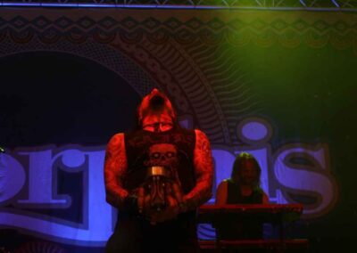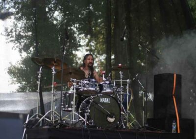 Ami a zenét illeti, a ReSet EP-ről ismert azonos című számon, valamint egy dob-bőgő-gitár jamming-en kívül az összes számot a Scream from the Eastől játszották, persze ez cseppet sem gond, ezek a dalok ismertek, bejáratottak és jól működnek. Talán megelégszünk ezekkel a gyöngyszemekkel addig, míg nem hallgathatunk valami újat. Olyan csodálatokat hallhattunk, mint a Balkanic Heart, a Dance of Satyrs, a Forgotten Path, a Nap és Hold, vagy a szettjüket záró Mašala. Nagy kár, hogy csak ennyit kaphattunk belőlük, de emléknek eltesszük a következő közös megmozdulásig. Egyébként Martina hangja még mindig felső kategóriás, megfontolt színpadi jelenlétét pedig a többi srác mellett Hormai Balázs ellensúlyozza. Ez a srác is hatalmas forma, be- és körbejárja a színpadot, ugyanakkor a screamelésre rá kéne gyúrni, vagy valahogy fejleszteni kéne, mert az nem igazán megy. Ezt jól bizonyítja az is, hogy azon részeit, amit albumon hörögve vagy screamelve hallhatunk, az élőben sokszor átmegy rapszerű, magyarázós vakerálásba. Utóbbi egyébként kifejezetten jól áll a srácnak, előbbi pedig fejleszthető.