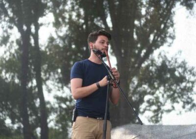 Az új tagokról annyit, hogy rettenetesen lelkesnek tűnnek, ide értve főleg a Wisdomból is ismert Tóth Tamás dobost, a különös módon nagybőgővel operáló és a zenét nem kicsit átérző Arday Dánielt, vagy a minőségi húrtépkedés közben a női szíveket mosolyaival megdobogtató Varga Krisztiánt. Erdei Dávid népi hangszeres is kitűnően hozta a részeit, ugyanakkor számomra furcsa volt, hogy majdnem a dob mellé szorult hátra, igaz, a többieknek kellett a nagyobb mozgástér, ő meg mégiscsak mikrofonhoz volt kötve, ám kicsit úgy tűnt, mintha „el lett volna dugva”, pedig nincs a srácban semmi szégyellni való.