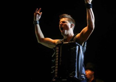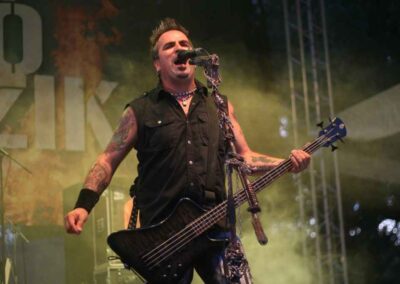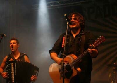 A Tyr koncertjét újabb színpadváltás követte, mely után pont befutottunk a Paddy and the Rats kezdetére. Korábban, a Jolly Jackers kapcsán már kifejtettem az ír punkkal kapcsolatos véleményemet és ez a Paddy alatt sem változott. Tetőfokára hágó bulihangulat, önfeledt szórakozás, kalózkodás, írülés. A színpadkép is egészen pofás volt, hordók tömkelegét, hajóhálót, hajókormányt láthattunk a srácok körül a porondon. Kifejezetten örültem, hogy kívülről a fiúk egy józanabbik énjüket vették elő, kellemesen, szinte albumminőségben gyártották a zúzós dallamokat és egyébként hihetetlen, hogy ennek a Paddynek milyen hangja van… Mellékes, de végre értelmet szerzett a zenekar a Tetovált Állatmetők Nagyszínpad előtti fotósárokba beleaplikált, de ugyanakkor funkciótlan és a fotósoknak-, de a közönségnek is egyaránt zavaró nagy, fekete, dobozszerű valamiknek. Persze egy-két fotós mozoghatott ezeken, ám a „proletár” fotósok főleg csak a közönség közül és az árok oldalsó részeiből fotózhattak. Bár Paddy már korábban is alkalmazta-, ugyanakkor a banda a szettjük zárlatát képező Freedomra szinte teljes egészében levonult ezekre a valamikre, így még közelebb kerültek a közönségükhöz. Egyéb iránt olyan nagysikerű dalok hangoztak el, mint a My Sharona, a Pilgrim ont he Road, illetve az új albumos Join the Riot. Talán a legnagyobb bulit láthattuk az egész fesztivál alatt.