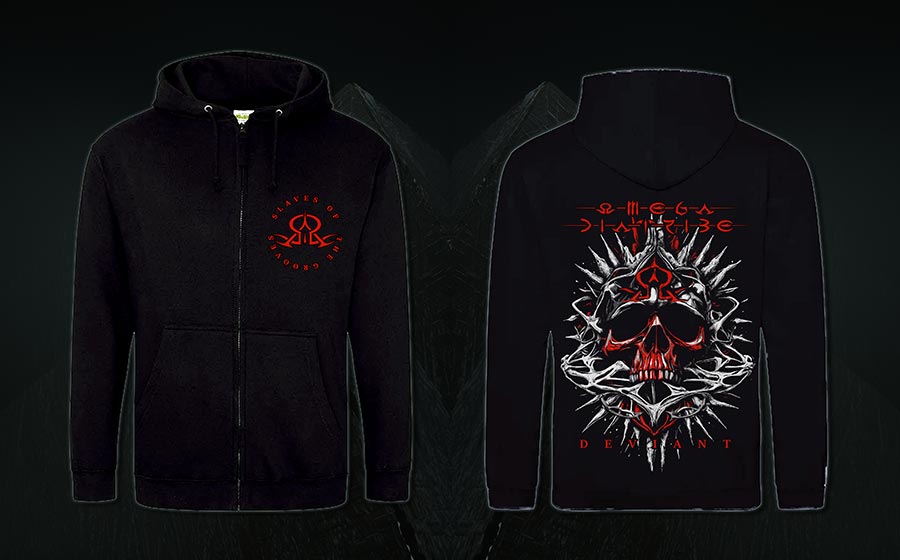 8990 FtOMEGA DIATRIBE – Skull zipzáros kapucnis pulcsi