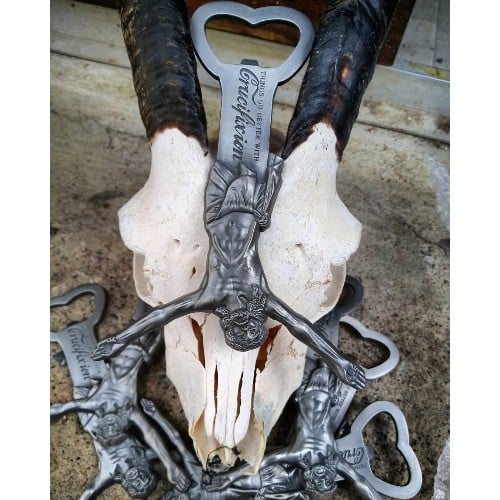 Fém kereszt formájú sörnyitó.