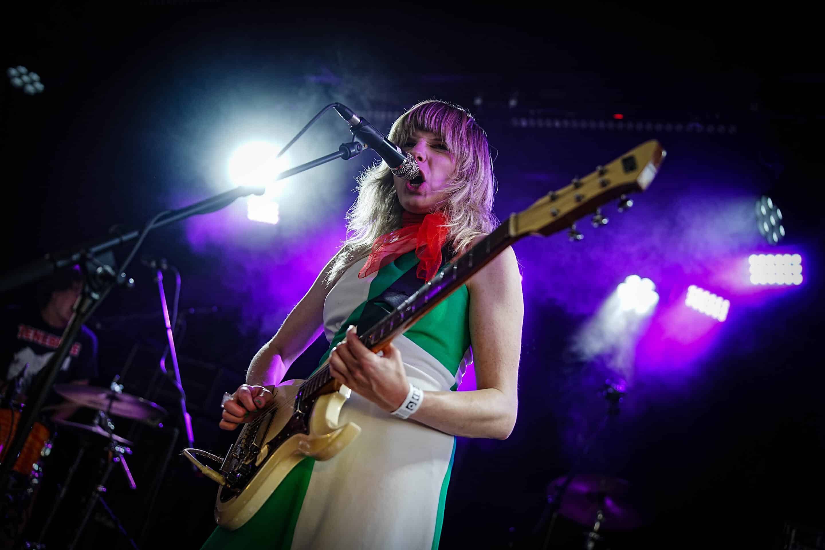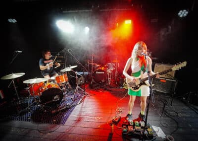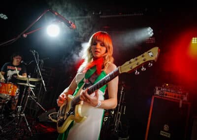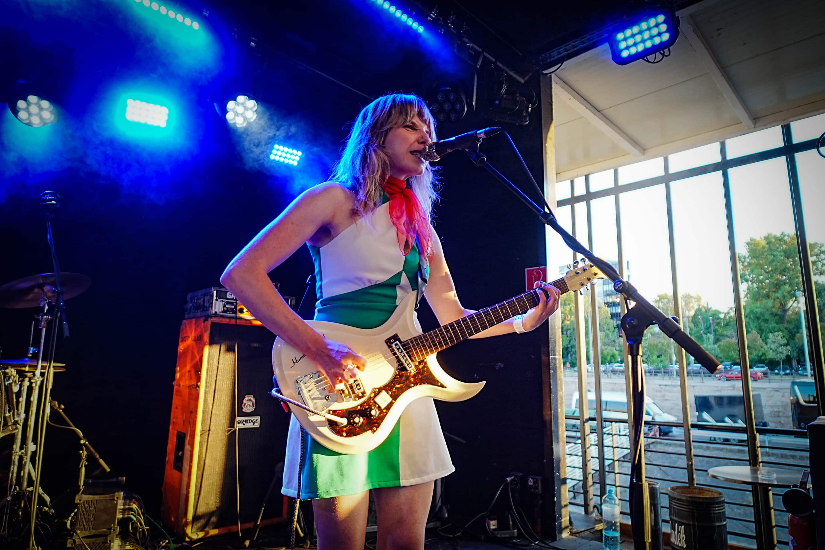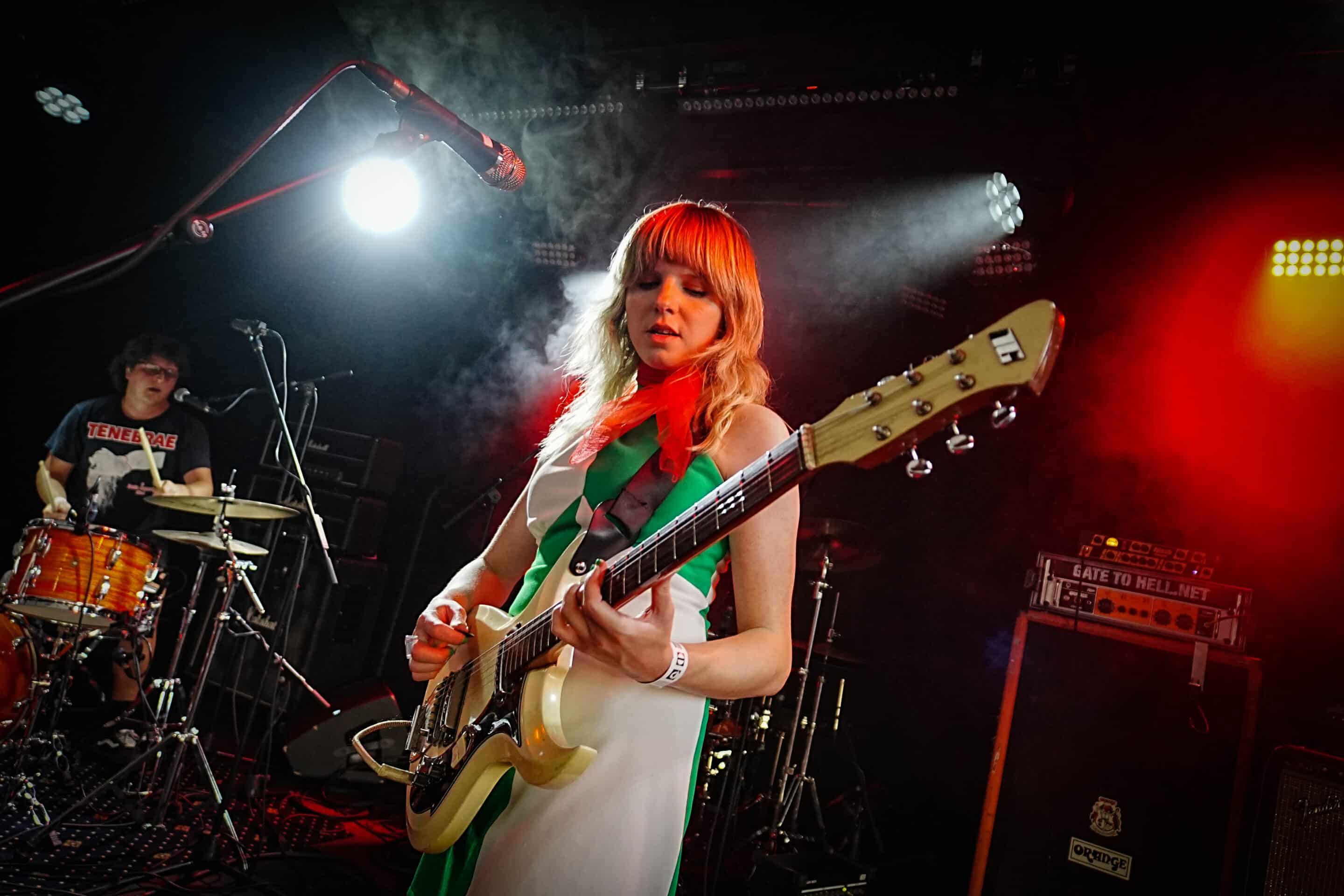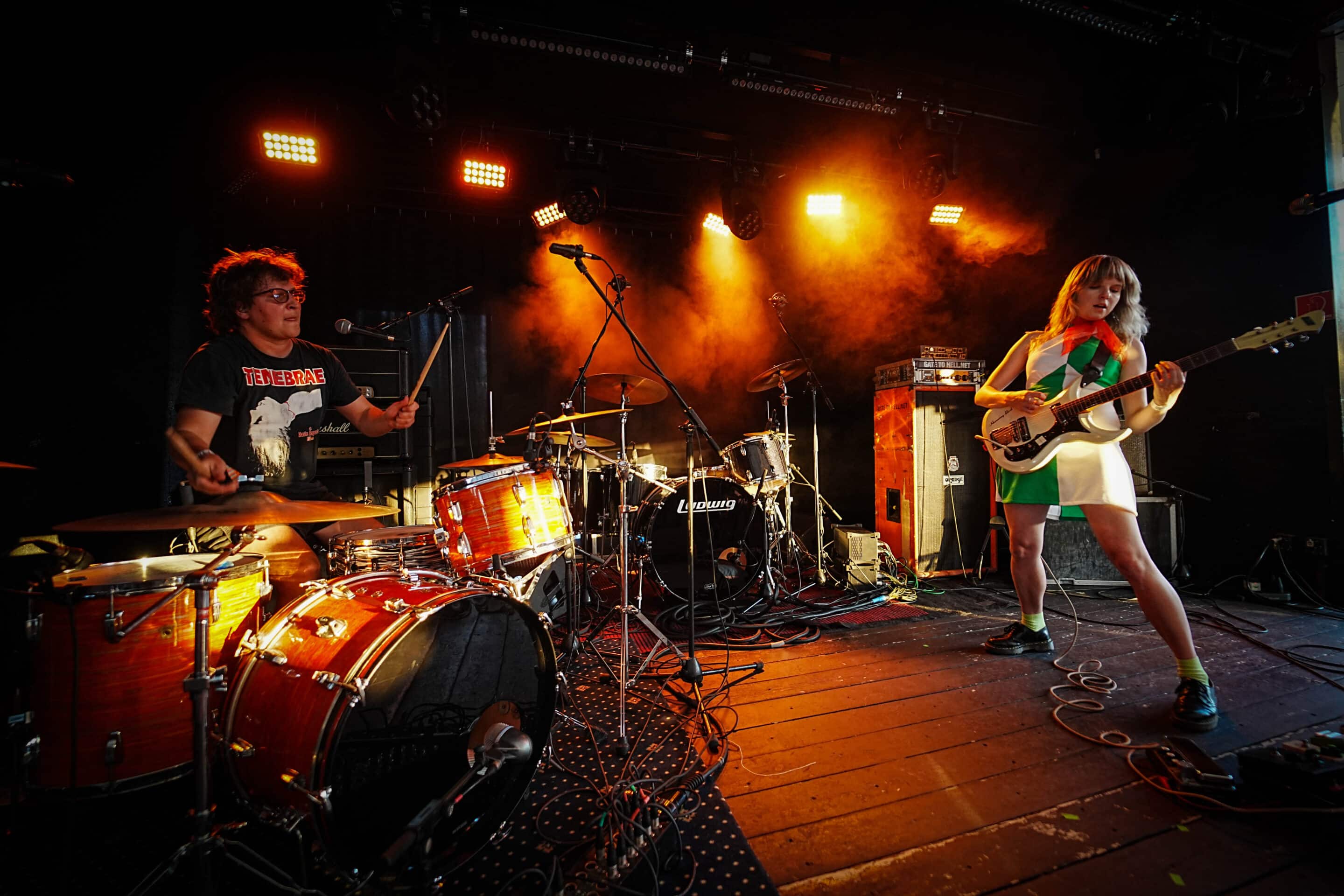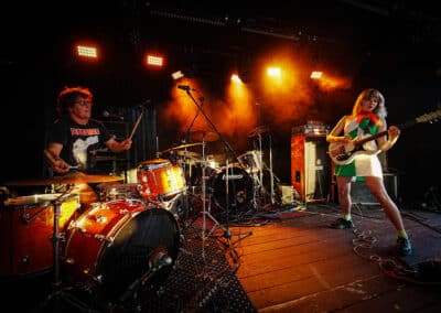 Hétfő este lévén, a munkából utaztam / rohantam, hogy a pontos fél8-as kezdésre odaérjek. Gyors egyeztetés kedves fotós kollégámmal, majd belevetettem magam a tetőteraszon zajló koncert sűrűjébe. Meglepő módon, folyamatosan gyűltek az emberek: már az új-zélandi Earth Tongue kezdésére szépen megtelt a hely úgy félig. Nem véleletlenül: az Earth Tongue különös fuzz-rock / psychedelic zenéje és az a BŐDÜLETES SOUND megtette a hatást, már az első berobbanó / lefogott / kipengetett / leütött hang után. Egy végtelenül aranyos, finom hölgy kezelte a végletekig rommá-torzított gitárt, ami át volt vezetve nagy valószínűséggel nem csak egy gitárládán, hanem egy basszusládán is. Volt már erre példa más műfajban is (lsd.: Magrudergrind, régi Dürer Kert, a Primitive Man társaságában) tehát nem egy fehér holló effektusról beszélek. Tucatnyi kapcsolópedál előtte és csak úgy áramlottak belőle a RIFFEK. Kitekert, szaggatott témák hagyták el Gussie Larkin kezét, miközben szinte angyali hangon énekelte az Earth Tongue legutóbbi albumának, a Great Haunting a dalait. Micsoda energiák! Persze a dinamikáról sem feledkezzünk meg: az érem másik oldala, a csapat motorja és ritmusszekciója, Ezra Simons úgy püfölte a bőröket, mint akinek kb. ez lenne élete utolsó fellépése, persze ügyesen odafigyelve arra, hogy a számokat azért ne verje szét / ne csak róla szóljon ez a produkció. Voltak neki trükkösebb / matekosabb témái is, nem egyetlen „kísérjük le a gitárost azt jólvan” dimenzióban mozgott a srác. Olykos kivette a részét a vokálokból is, mondjuk, inkább szigorú kiabálásnak titulálnám, amit csinált (volt azért szinkronének Gussie-val közösen) de abszolút illet ebbe a furcsa / elvarázsolt zenébe. Nehéz bekategorizálni amit az új-zélandi duó csinált; ez nem Jucifer, ez nem OM, sem Eagle Twin, nem is Bell Witch vagy The Body, vagy mondjuk a The White Stripes. Ez valami egészen más. Minél kevesebben vannak egy bandán belül, annál nagyobb az összhang. Az Earth Tongue formációjára ez hatványozottan igaz. Lelkesen, görcsölések nélkül nyomták nekünk a talpalávalót, lehet, közhelyesen hangzik, amit írok, de az Earth Tongue tipikusan az a zenekar, akit feltétlenül látnod kell élőben. (Mint például a fentebb említett finn csoda, a NYOS) Száz szónak is egy a vége: még több Earth Tongue koncertet a hazai klubokba, de leginkább a Fekete Zajon tudnám őket elképzelni majd a Mátrában.
