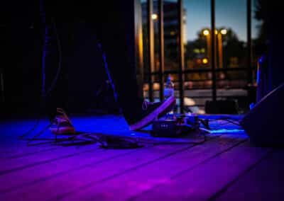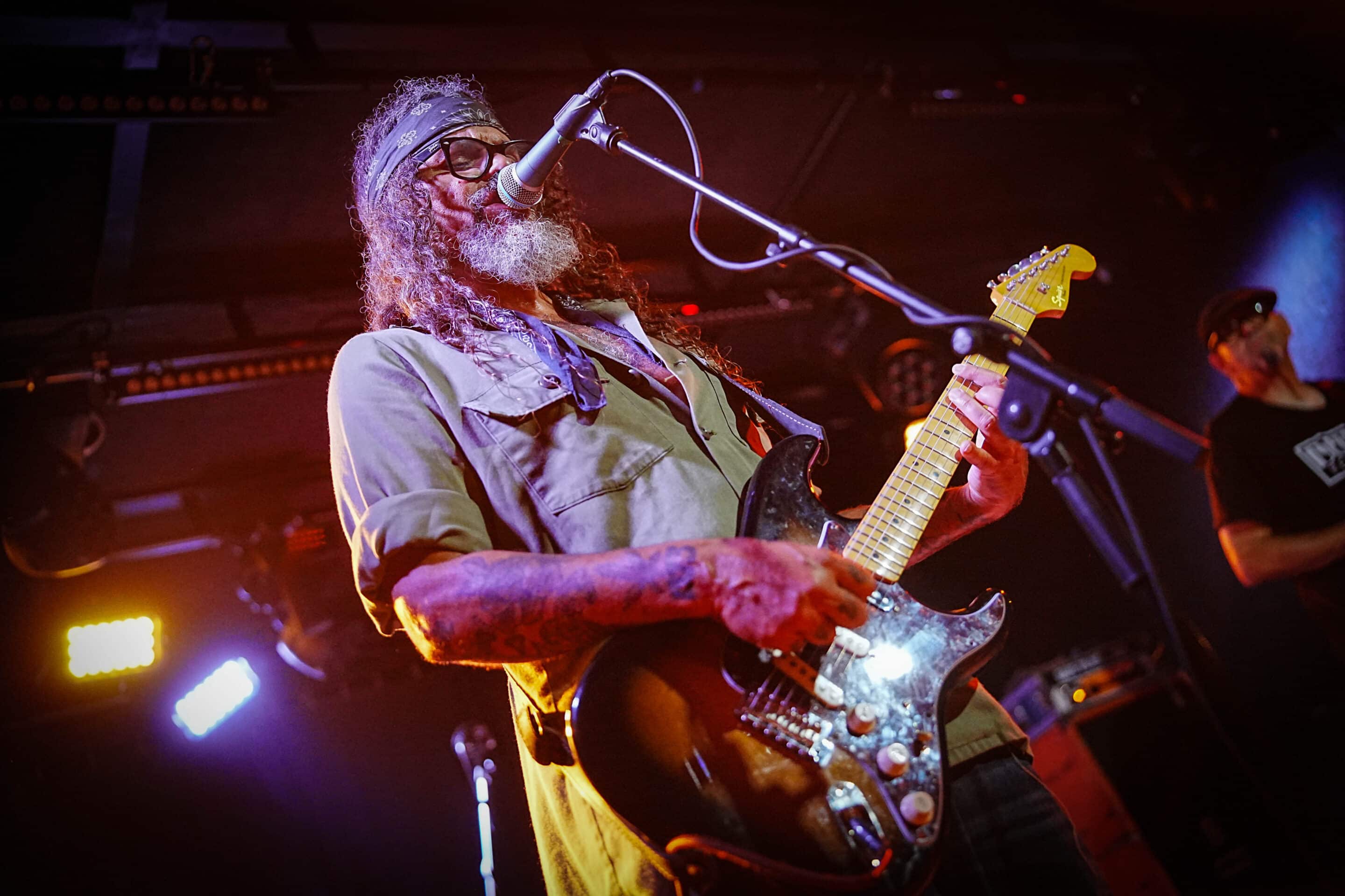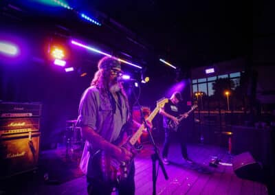 Mire átpakolták a cuccot az A38 ügyes emberkéi a színpadon, gyakorlatilag megtelt a tetőterasz. Hátul a merchpultnál volt csak szellősebb, de ha igazán érezni akartad a dübörgést, a zsongást, Palm Desert hűs, nyugtató szellőjét, akkor nem ártott kicsit előrébb furakodnod magad a tömegben. Brant Bjork minden kétséget kizáróan egy géniusz. Egy élő legenda / kincs. Multi-instrumentalista, kiadó tulajdonos, és ahogy elnézem kortalan. Nem tudom, hogyan csinálja, vagy mi a titka, de ennyire alázatos zenészt rég láttam színpadon, ilyen átéléssel gitározni. Olyan emberek jutottak eszembe róla, mint Jimi Hendrix és tudom rettentő furcsa lesz, amit mondok de Lenny Krawitz is párszor eszembe jutott a kisugárzása kapcsán. Ők is hasonlóan ikonikus alakjai a rock and roll univerzumnak. Talán az energiaszintjük is megegyezik, nem tudom. A fellépésre visszatérve: már az Earth Tongue is hibátlanul szólt és a Brant Bjork Trio is. Tán Brant Bjork alatt kicsit visszább vettek az erőből, finomítottak a hangzáson és egy pompásan kiegyensúlyozott / organikus hangképet sikerült a keverősnek kihozniuk a hangrendszerből. Bravó! Ebben az egészben az mindig a legszebb, hogy szinte bárhol állsz a nézőtéren, mindenütt ugyanolyan szuperül szól a cucc, nincs az, hogy elveszik a teteje / alja és valami túlvezérelt masszát hallok.