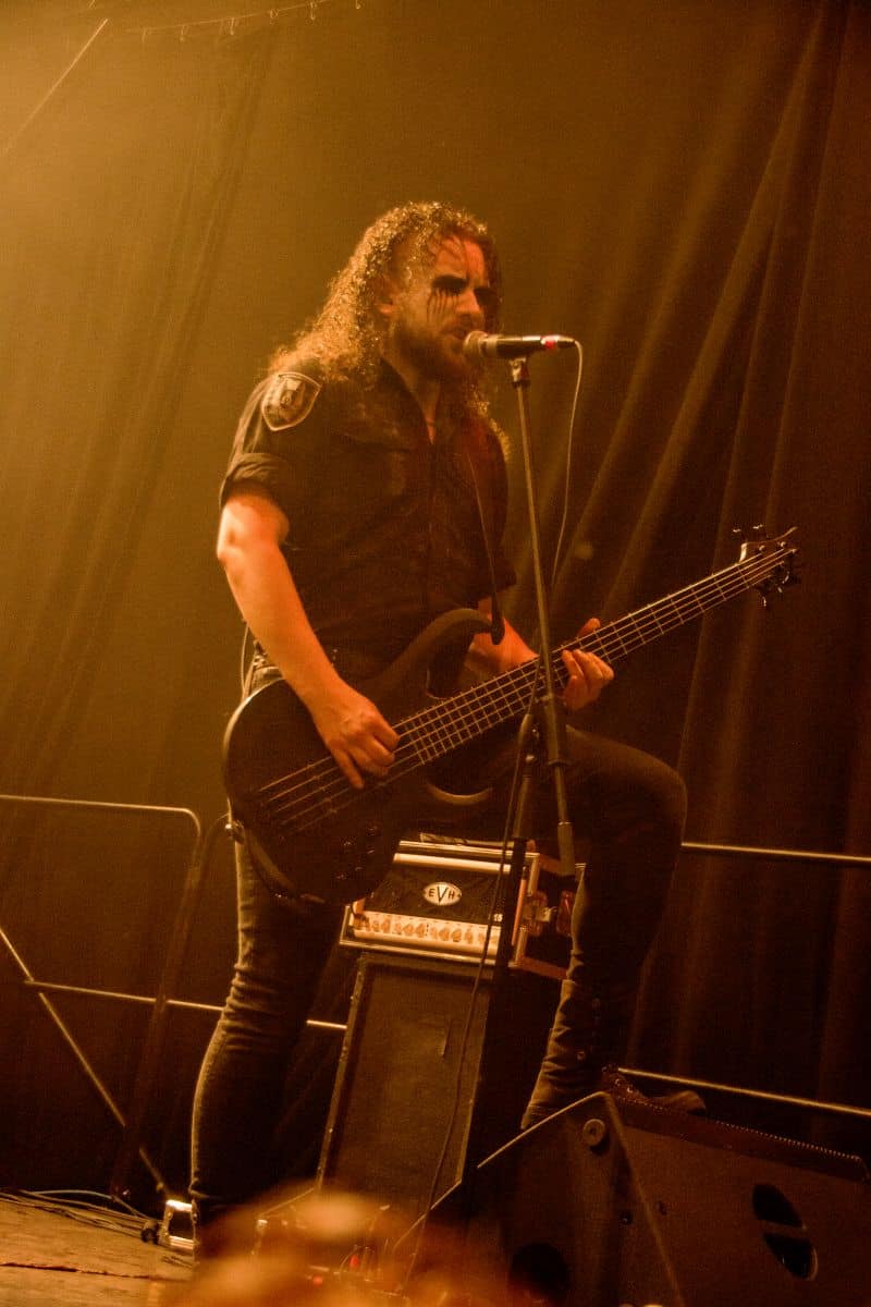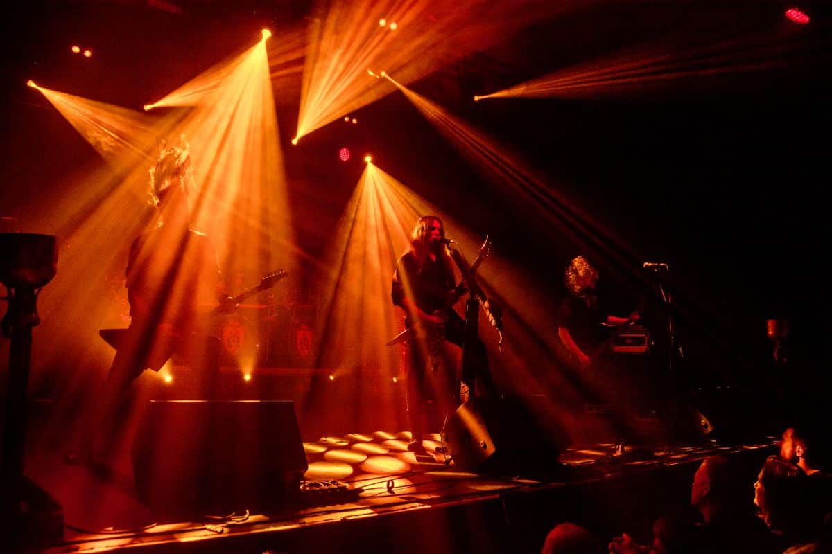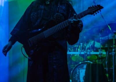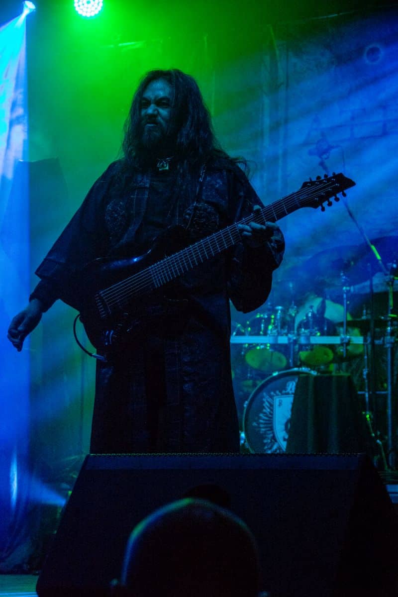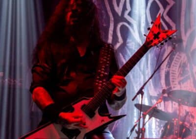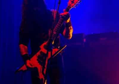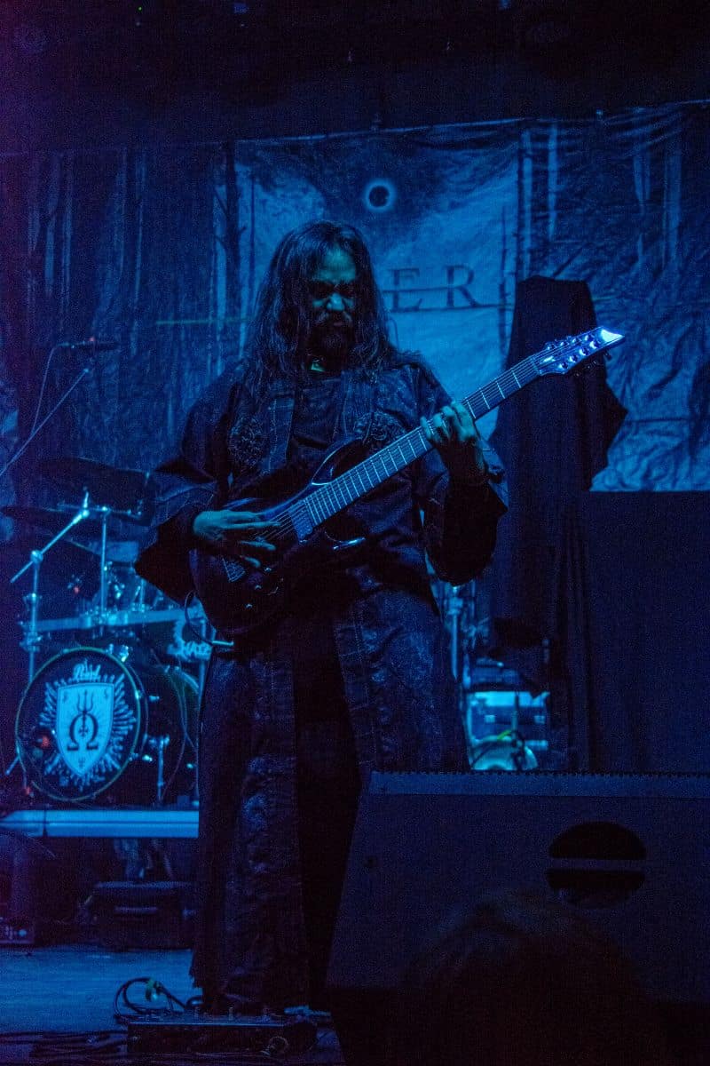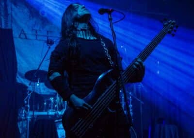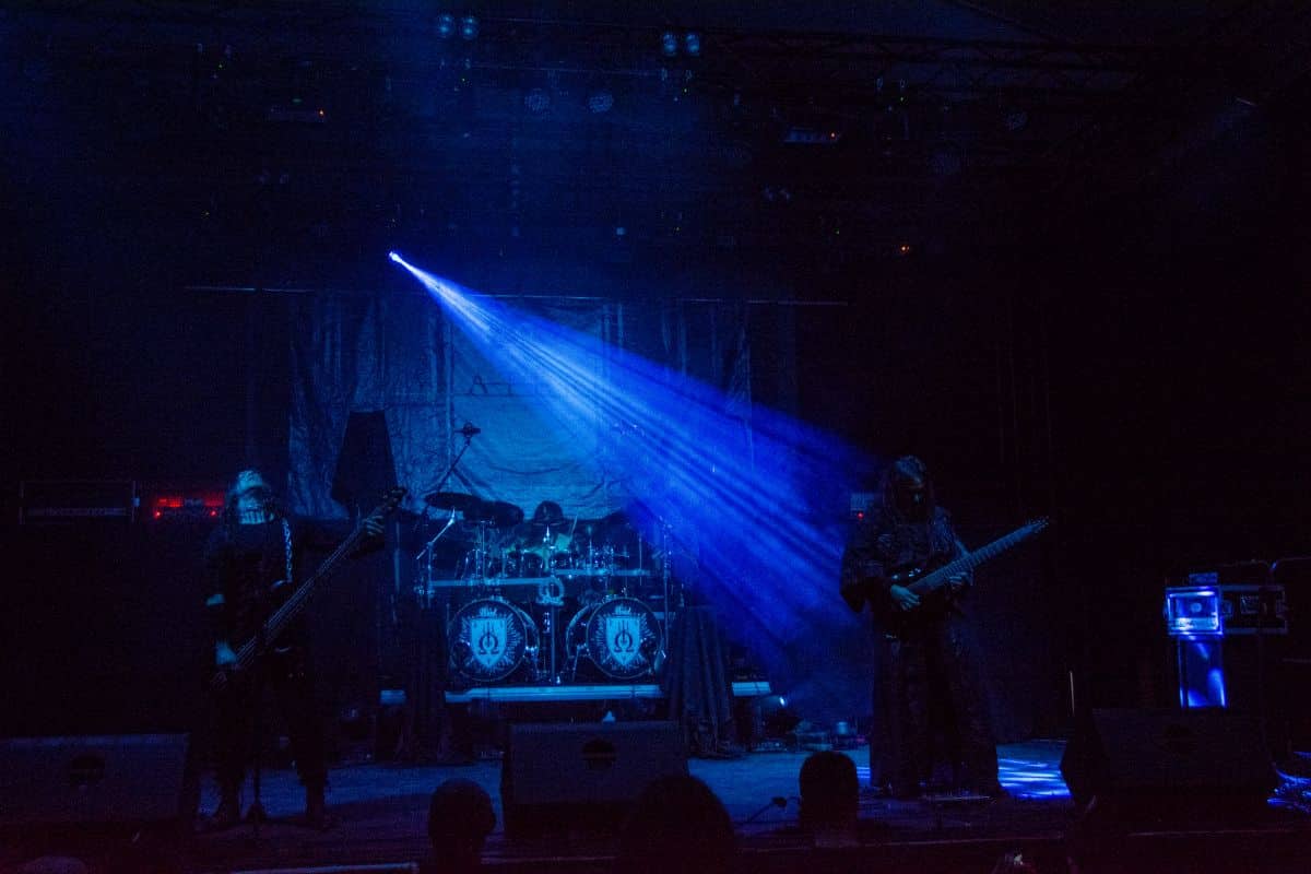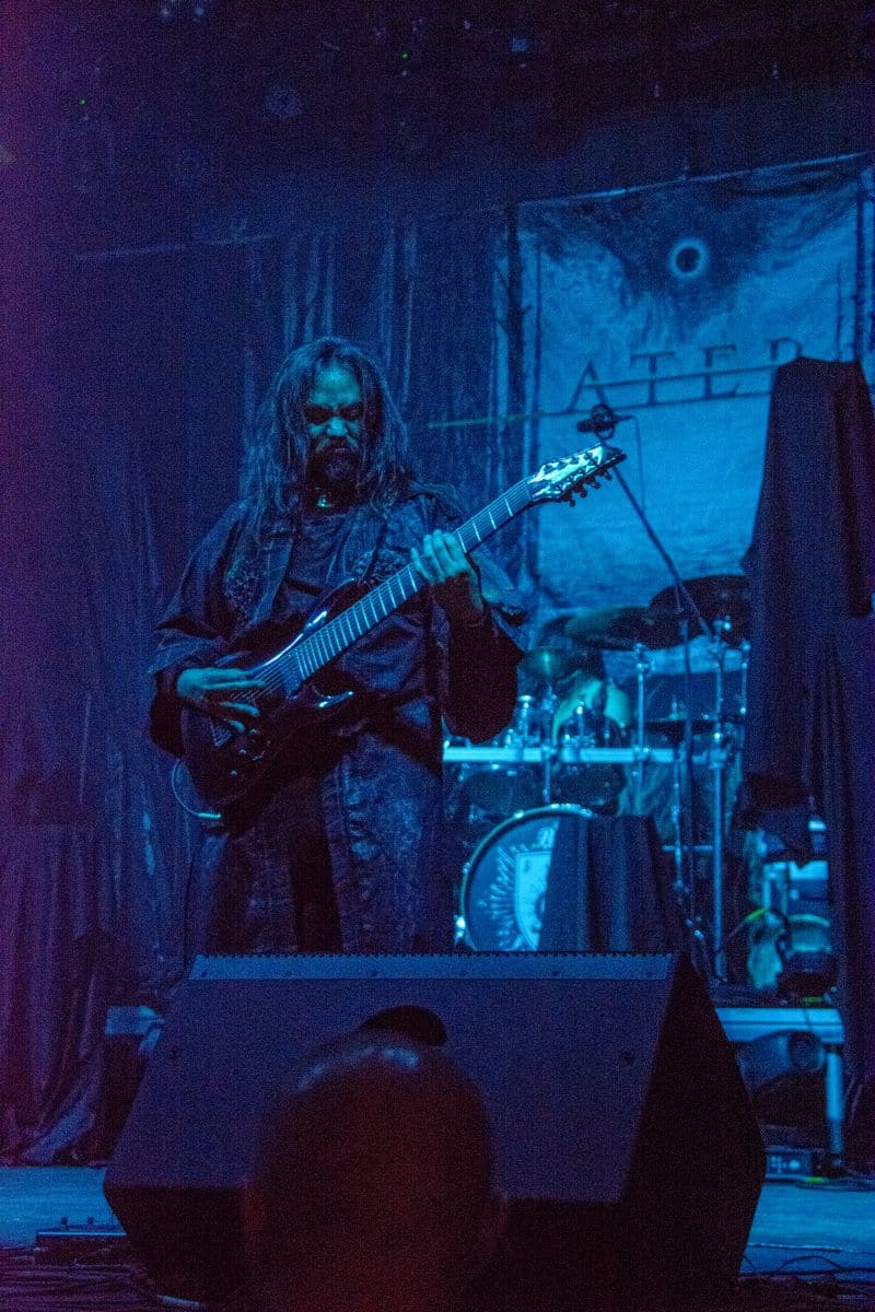 Az estét az Ater kezdte, és a meglehetősen hézagos közönség számára helyből nagyon magasra tették a lécet. Nem lehet ismeretlen számunkra a csapat: tavaly az Vltimas és a Patriarkh vendégeként láthattuk őket, idén pedig – alig két hónapja – a Leaves’ Eyes előtt léptek fel pontosan ugyanezen a színpadon. Talán az este zenekarai közül ők voltak a leginkább progresszívek: az a mód, ahogy a black metal eszköztárát és hangszereit a tört ütemekből építkező zenéjükhöz felhasználták, mindenképpen teljesen egyedinek nevezhető. Számos esetben 3/4-ben vagy 4/4-ben voltak a dalok, csak maga ritmusképlet volt szokatlan, jópár esetben pedig teljesen egyedi ütemmutatóval ment a zene; talán egy közismert példa erre a jelenségre-megoldásra a Morbid Angel God of Emptiness című dala (mondjuk az intro a maga 13/4-es ütemmutatójával). Az Ater bizonyos szempontból a határon táncolt: a zenéjük meglehetősen nehezen befogadható, jelentős figyelmet érdemel (vagy ha jobban tetszik: követel meg), viszont szerencsére a súlyosabb és teljesen szétesett riff-eket könnyed, gyors háromnegyedes vagy négynegyedes pörgések higították. A trió működése feltétlenül pozitív visszhangra talált: a maroknyi közönség egyenként hallgatta és élvezte ezt a különleges zenei kalandozást – tehát aki vevő az ilyen speciális és sok-sok odafigyelést, erőfeszítést igénylő zenékre, annak mindenképpen itt van (vagy itt lett volna) a helye.