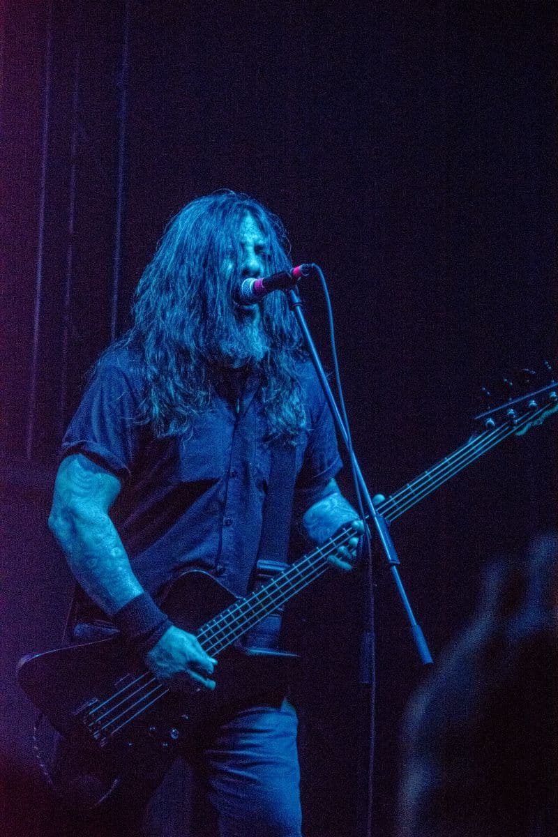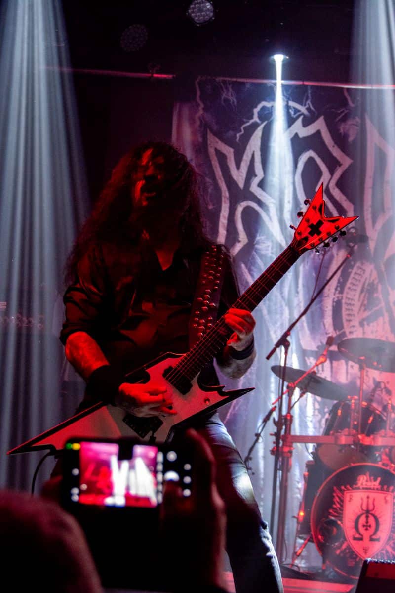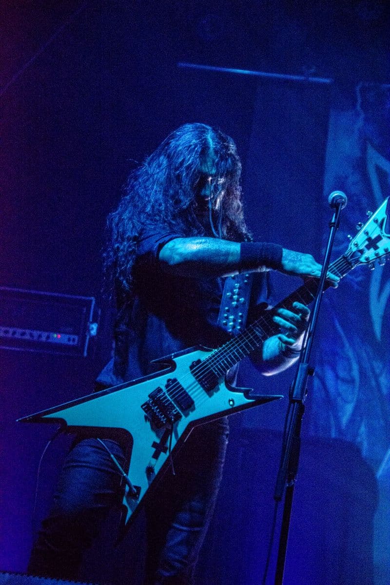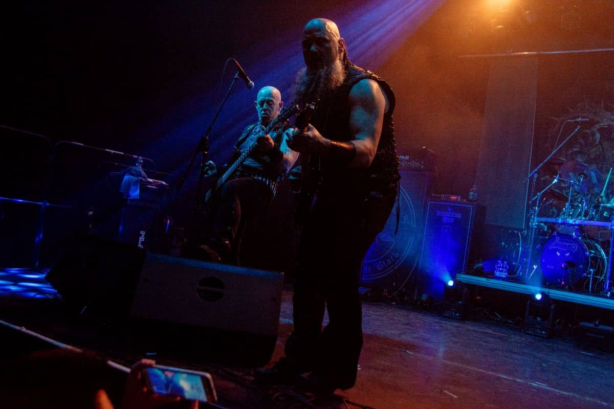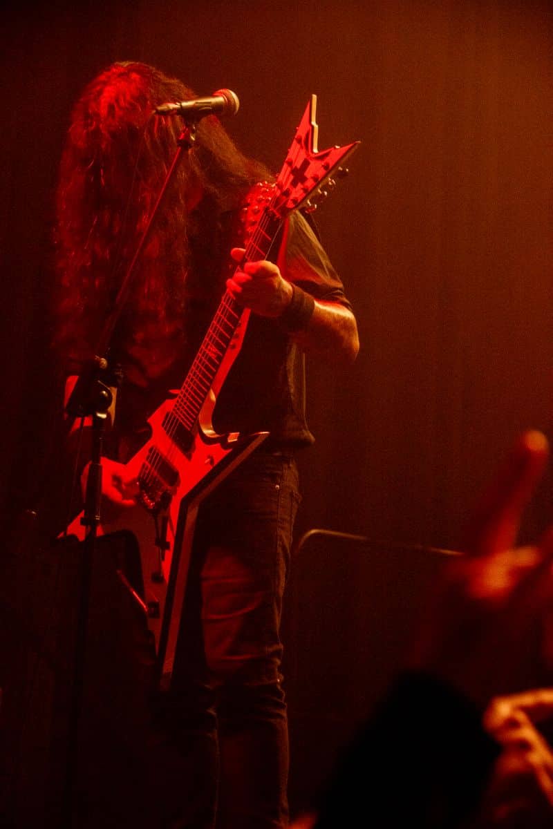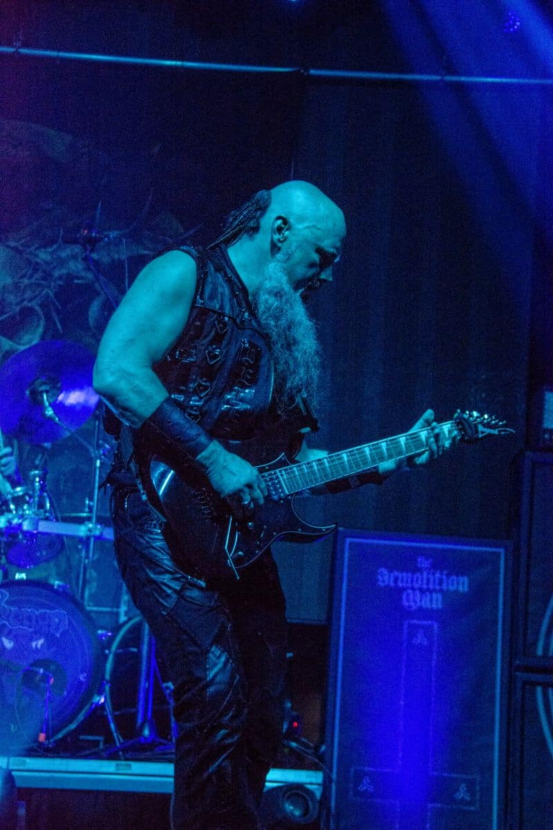 Fél szememet folyamatosan a merch-ön tartottam, miközben egy fekete molinót húztak fel a színpad elé – és megkezdődött a Venom Inc. fellépéséhez szükséges előkészületek sorozata (én meg a beszámoló hátralévő részében a Venom minden leszármazottjára azonos néven fogok hivatkozni, hacsak nem feltétlenül indokolt az elkülönítésük). Amíg az előkészületek zajlanak a színpadon, következzék a beszámoló azon mondata, amelyikhez azonnal elő is lehet a köveket készíteni, majd a (black metal-rajongó) újságírót azokkal szorgosan agyoncsapkodni: én nem szeretem a Venom-ot. (Ejnye-bejnye! – főszerk.) Tisztelem a munkásságukat, műfajteremtőként – de legrosszabb esetben is a műfaj meghatározó alakjaként – tekintek rájuk, de első körben nem nagyon tudok mit kezdeni a zenéjükkel hosszú évtizedek óta. Na, ez ügyben most érdemi változás következett be, bár az előjelek nem pontosan ebbe az irányba mutattak, ugyanis a Krisiun közönsége is lassacskán megfogyatkozott a Venom kezdésének pillanatára.