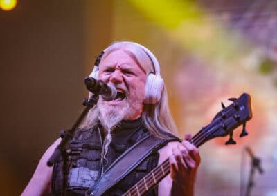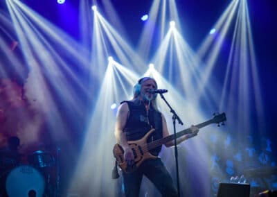Marko továbbfejlesztette a fülmonitort: egy nagy fehér fejhallgatóval a fején jelent meg a színpadon – persze nem tudom, hogy mi szólt benne, egyáltalán szólt-e valami, de valószínűsítem, hogy az a fülmonitorja… Gyönyörű, különleges formájú basszusgitárja csodásan szólt. A frontember szokás szerint se cipőt, se zoknit nem viselt a fellépésen.