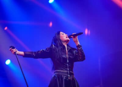 Tarja zenekara is a lehető legjobb zenészekből állt, ugyanazt tudom elmondani, mint Marko esetében. A tagok minden energiával jelen voltak, tökéletesen játszottak, jó volt rájuk nézni és hallgatni is. Mindkét banda esetén nagy szerepet játszott az, hogy lerítt a zenészekről, hogy mennyire élvezik, amit csinálnak, ez nagyon fontos tényező. Tarja is énekelt finnül, és még zongorázott is az egyik dalban. Azt egyedül kezdte egy szál zongorával, és már játszotta rajta az intrót, miközben még konferált… – nekem ez is elismerésre méltó. Majd bejött a teljes zenekar és egy gyönyörű balladát hallgathattunk végig.