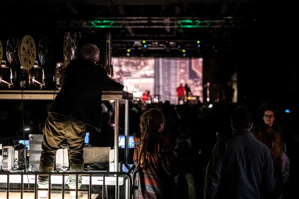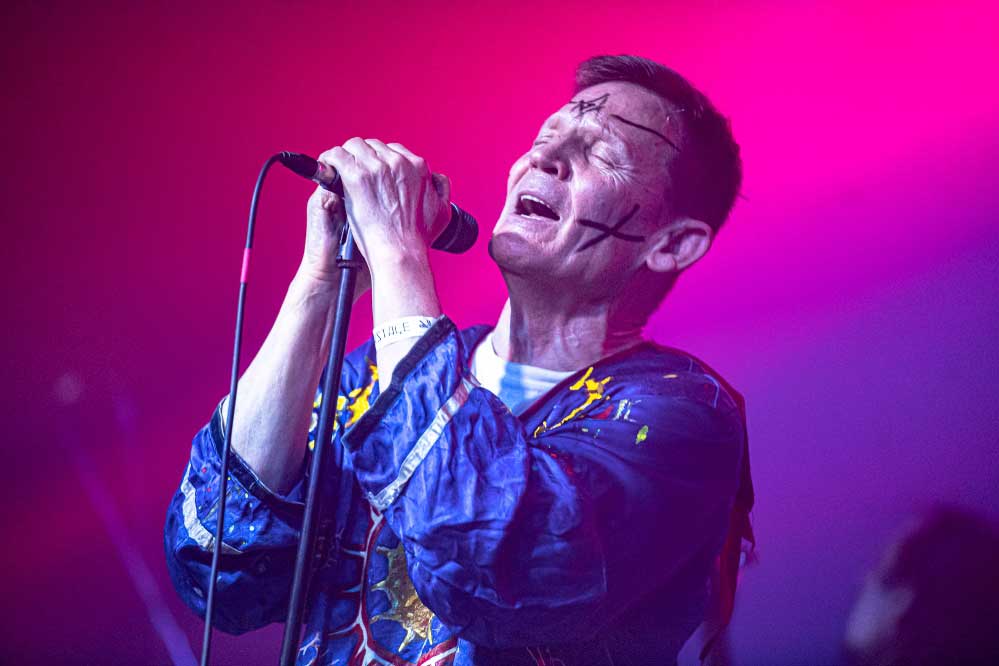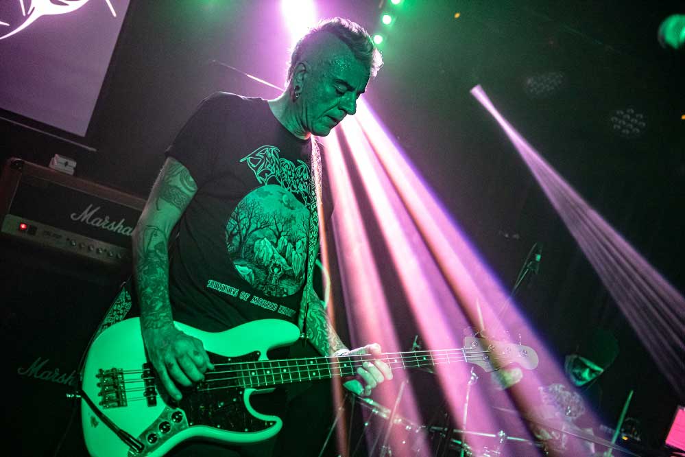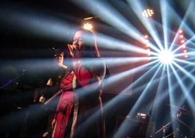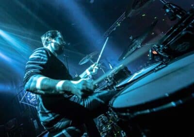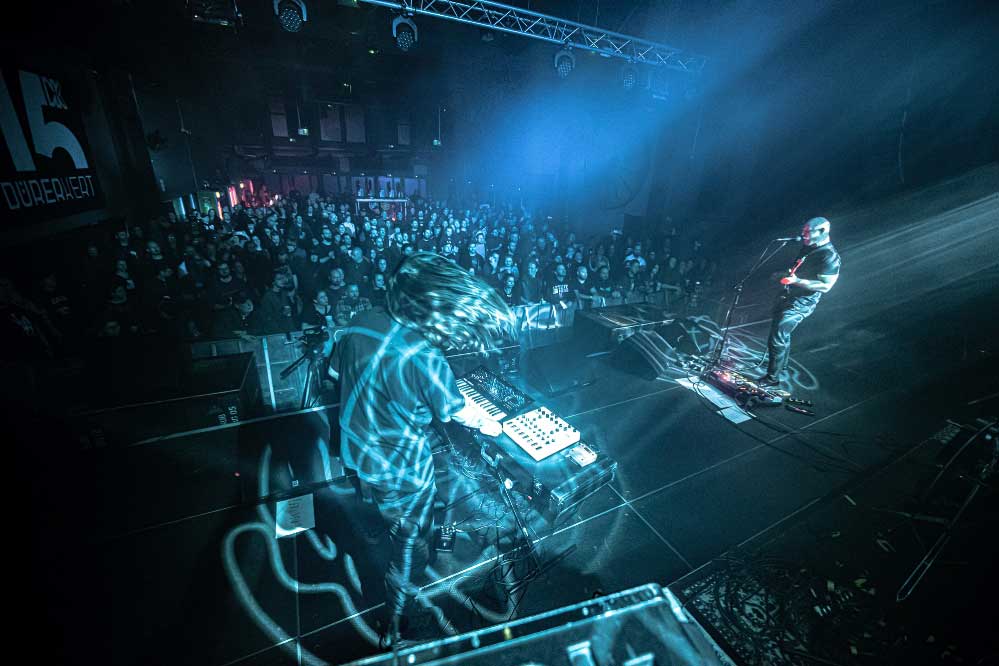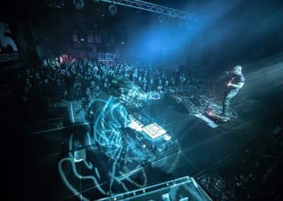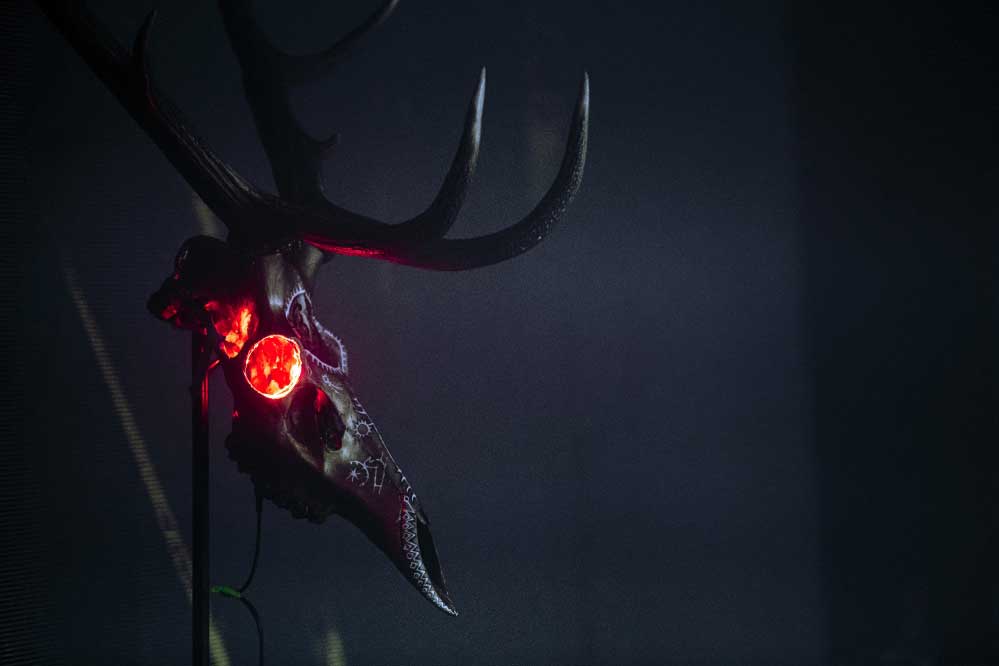 A nagyterem amúgy izgalmasan festett: a Vágtázó Halottkémek állandó dekorációi / koponyái vegyültek a szisztematikusan beépített, közös színpadi backline-nal és a hátul, a keverő mögött helyet kapó pozvakowski vizuálokért felelős analóg masinériákkal. Ez az érdekes kontraszt pontosan jellemzi amúgy az este hangulatát, amire talán a legjobb szó az, hogy archaikus. A VHK-t számtalanszor láttam, kisebb és nagyobb helyeken is volt szerencsém hozzájuk élőben, minden egyes alkalommal más és más érzéseket keltenek / keltettek bennem. Furcsa dolog ez, de valahol tudom, mindez csak rajtam múlik, mint hallgatón. Aki képes és befogadja az ősi rezgést, a végtelen univerzum hangjait, ott abban az adott momentumban… Igenis bele kell / érdemes beleállni abba az energiafolyamba, amit a VHK kollektívája megtestesít és létrehoz. Mindig elgondolkodtató ugyanakkor felemelő, amit csinálnak, képesek kiszakítani téged a szürke hétköznapok monotonitásából, de ehhez át kell adnod magad a feelingnek. El kell dobni az Ego-t. Át kell venni a pulzálást, ahogy lüktet az életerő… mely mindannyiunkban ott van. Olykor csak lapul, szunnyad, de képes bármikor kitörni egy bizonyos pillanatban. Ez talán a VHK különlegessége, amit minden egyes koncerten képesek belőled a felszínre hozni. Néha a Michael M. Gira vezényelte csodálatos Swans jutott az eszembe, más kaliber és más karakter (tudom), de energetika szempontjából hasonlóak. A soundboard mögött Gődér Csaba cimborám ténykedett serényen, sikerült ismételten olyan hangzás kovácsolnia a zenekarnak, amiben megvolt a kellő balansz, a magasak, a mélyek és a Mindenség között. A grand finálé különösen erősre sikeredett… Vad, nyers és kaotikus volt a Vágtázó Halottkémek fellépése, engem pedig teljesen magával ragadott ez zabolátlan, szilaj vágta. Ezerszeres hej!