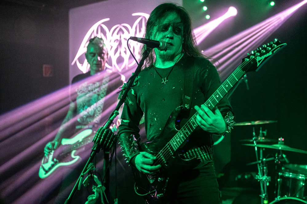 Intermezzo: kb. a VHK szettje felénél átmentem a kisterembe, hogy a Stoneblood koncertjébe belenézhessek, ők voltak a másik olyan csapat, akikre kíváncsi voltam, ugyanis őket sem tudtam a Fekete Zajon megnézni a heves esőzések miatt. A Paragon Zero formációból ismerős Bonnyay Péter emlékének állított / alapított együttes Czakó „Gravel Shores” Dániel és a Junkies tagok projektje, akik egyetlen és egyben utolsó fellépésüket adták itt ebben a formában. A Stoneblood, a melodikus oldschool black metal mellett döfte le azt a bizonyos szónikus lándzsát, mely leginkább a norvég szellemiséghez áll közel. Zenéjükben érezhető volt a korai Satyricon és Immortal hatás, de Szekeres András dallamos énektémái miatt kapott némi heroikus / fennkölt stílt is. A hangkép érezhetően sokat javult az eddigiekhez képest, viszont sokkal jobban örültem volna, ha nem Grandpierre-ékkel egy időben van ez a különleges mementó, hanem mondjuk az Orkrist-tel helyet cserélve és akkor végig ott tudok maradni / tiszteletemet tudom tenni.
