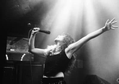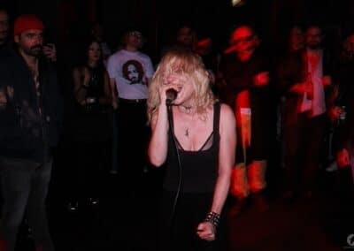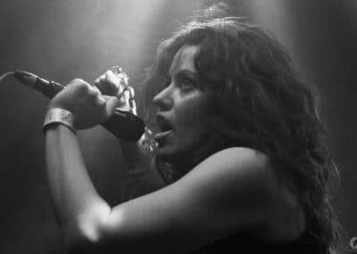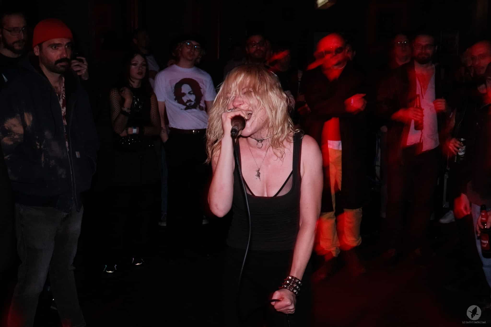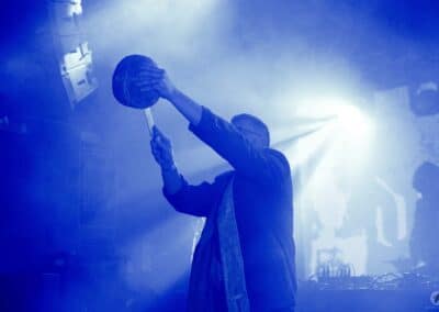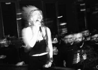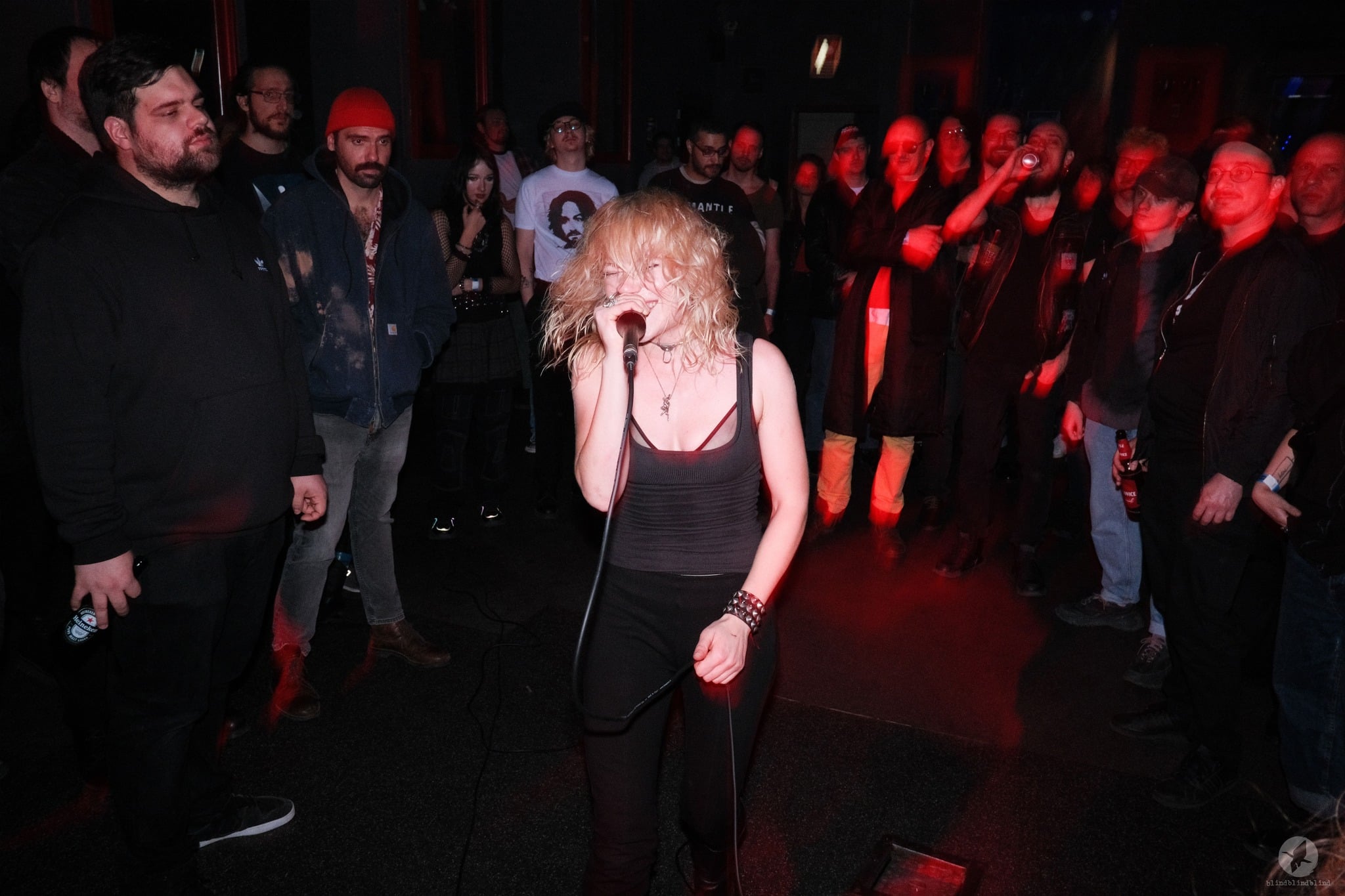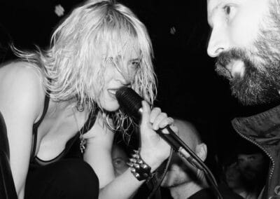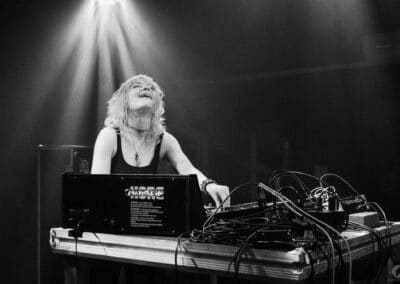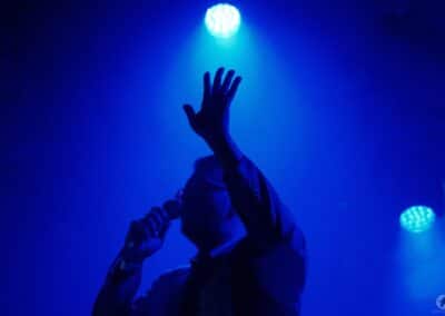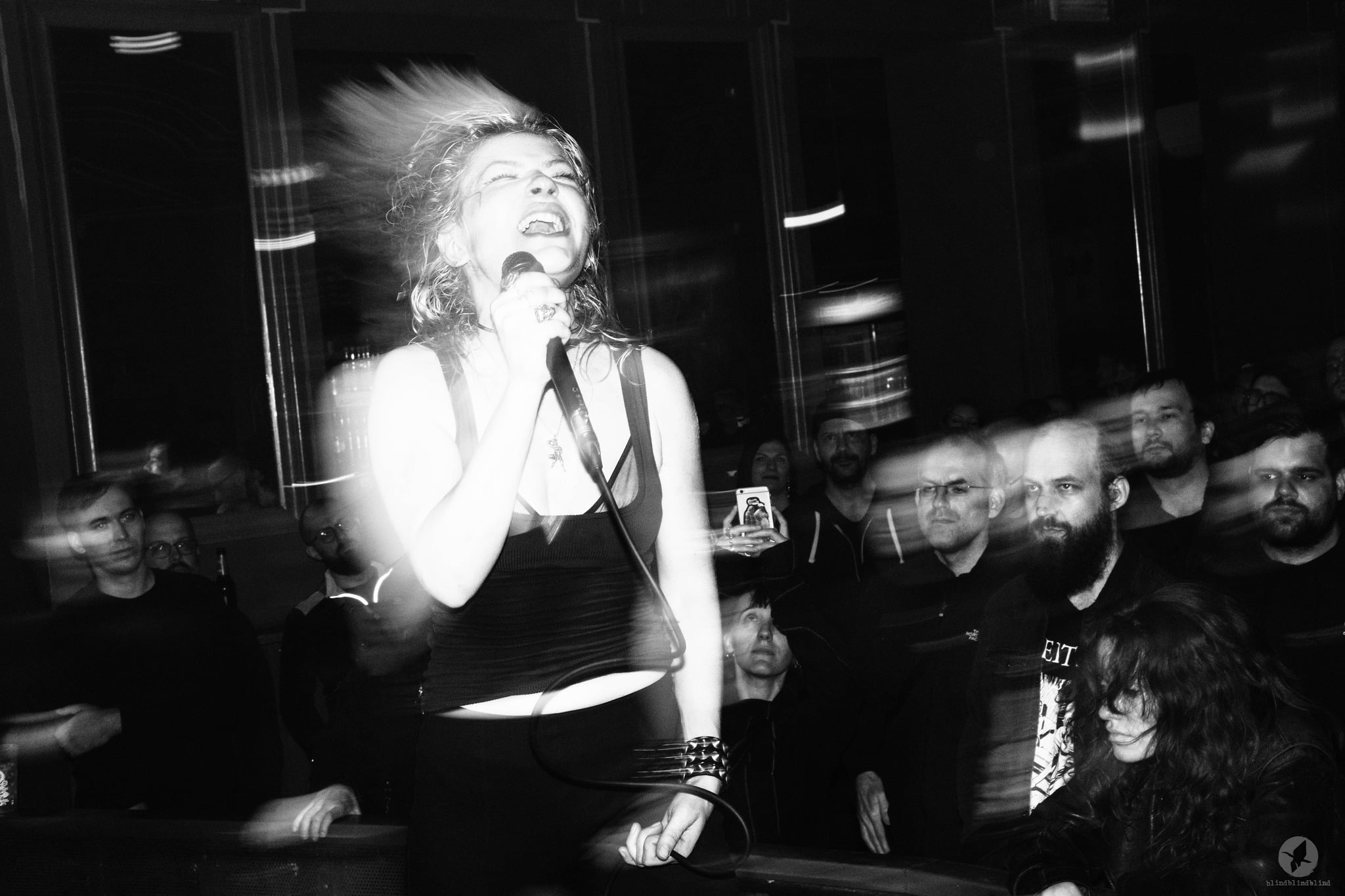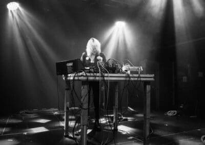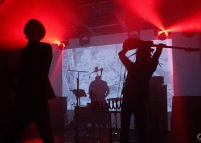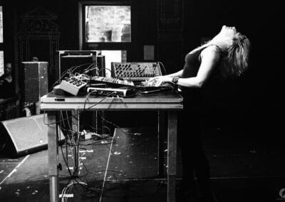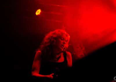 A Lana Del Rabies valójában Sam An egyszemélyes, sötét elektronikának titulált szerelemgyermeke, bár nekem sokkal inkább tűnt egy rendkívűl személyes és őszinte dolognak, melyhez a zaj mint kifejezőeszköz társult. Ugyanakkor csatornaként (is) funkcionált, a művésznőben felgyülemlett frusztáció, düh és csalódottság kivezetéséhez, de nem teljesen feláldozva / felégetve mindent az öncélúság jegyében. A rituális feelinget Sam An hitelesen projektálta delejező / szuggesztív, olykor teljes őrület-felhőbe burkolt szemeivel, néha az volt az érzésem, mintha Adjani kisasszonyt látnám Zulawski filmjéből, pár blikk erejéig. A kísérleti noise körökben nem meglepő a szokatlan zajkeltő cuccok használata, itt most egy vastagabb lánc töltötte be ezt a szerepet, amivel ritmikusan jól oda is csapkodott a hölgy, ahova kell, tovább súlyosbítva a mondanivalót. Belevaló performer módjára járta be a rendelkezésére álló teret, szinte önmagából kifordulva értünk el a feketeszáj-klimaxig. A hangzás sokat javult a DVX NCX-hoz képest, már nem volt zavaróan aranyántalan, igaz Sam An setjében is akadtak bárdolatlanul fülsértő részek. Az éteri ellensúlypontok viszont remekül kiegyenlítették Lana Del Rabies zenéjét, nem a széttorzulás agóniája ment végig, voltak beatek / billentyűsök is benne, a laptopon lévő kis NIN matricán jót somolyogtam. Nehéz körölírni amit Sam An csinált, ez inkább egy élmény, volt benne némi katarzis, rengeteg személyes elem (ez főleg azoknál a részeknél, ahol szinte vádló / számonkérő hangon üvöltötte a sorokat a mikrofonba) és sok egymásba fonódó / loopolt drone – noise furcsaság. Egy korrekt és erős produkciót kaptunk, ha nem is a legjobb sounddal, de érezhetően átjött az üzenet.