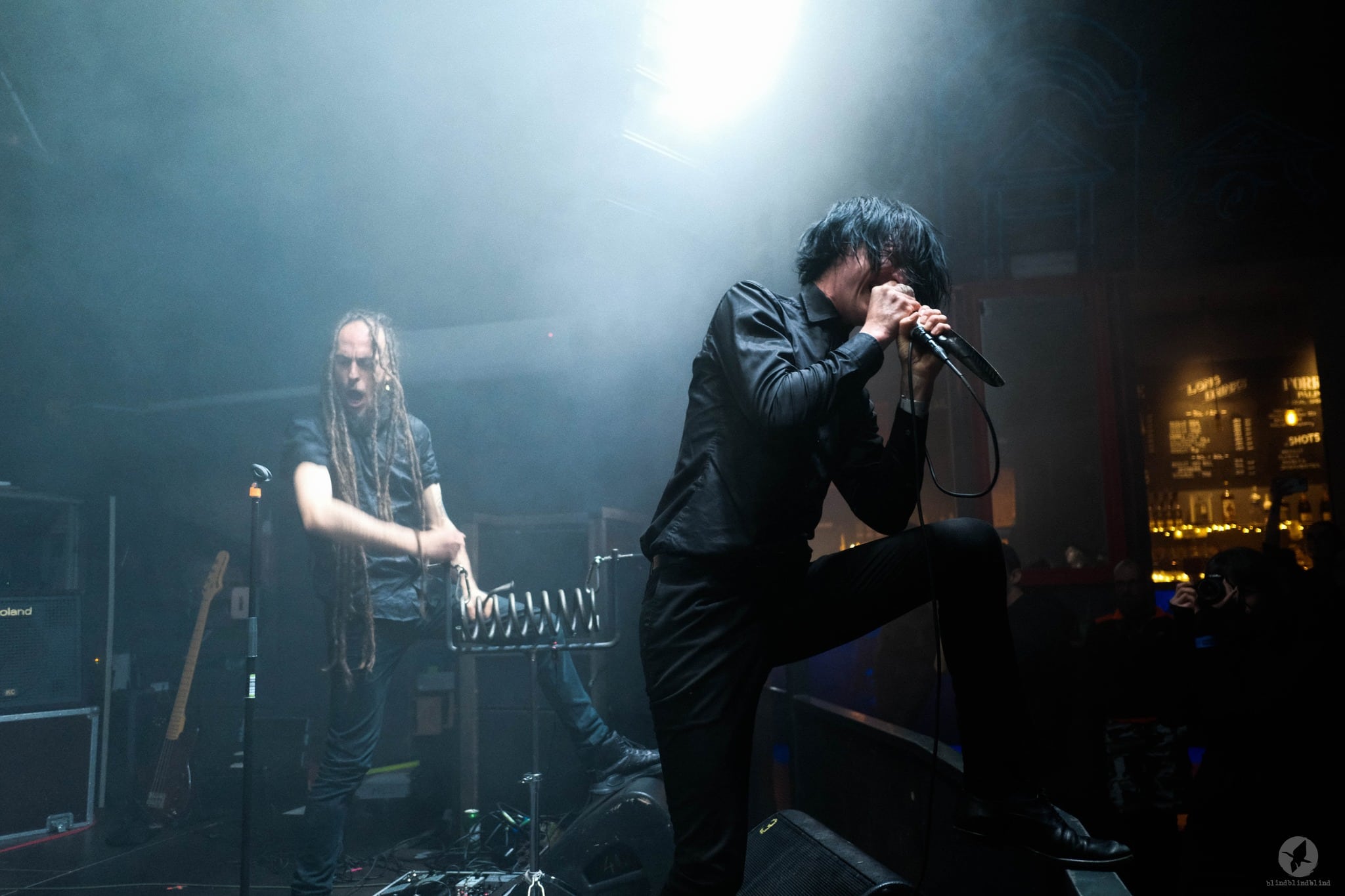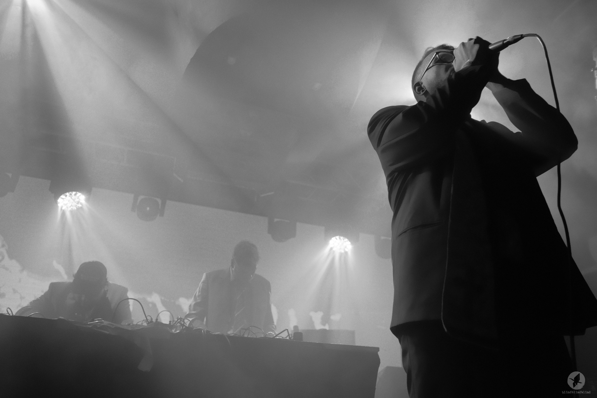 A Kollaps fellépését már rettentően vártam, idén másodjára találkozom velük, augusztusban a Fekete Zajon láttam őket, ott sajnos egy technikai probléma miatt kb felét játszották el a műsoruknak. Ott akkor eldöntöttem, az ipari ausztrál vadembereket látnom kell. Gyors átpakolták a színpadot, felkerült a dobcájg, a speciális állványok, háttérben belőtték a basszusgitár cuccot és szép lassan elkezdtek felfelé szivárogni a Kollaps tagjai. Először a basszeros és a dobosuk (érdemes megjegyeznem, hogy a koncert alatt végig az összes aznap játszó performer ott állt velünk a közönség soraiban és onnan nézte végig a másik produkcióját) majd legvégül Wade Black énekes. Azt tudni kell a Kollaps triójáról, hogy (szerintem) komolyan veszik azt amit csinálnak, nem műanyagból vannak, abszolút true módon állnak az indusztriális zenéhez. Rájuk igaz leginkább az ipari metal, mint műfaj, ugyanis hagyományos értelemben véve adott egy ritmusszekció (Giorgo Salmoiraghi nem rest a duplázót sem használni) egy végletekig betorzított basszusgitár (Andrea Collaro műve) és zajtenger generálás / sötét elektronika plusz vokálok (Wade Black személyesen). A Kollaps alapja a fenyegetettség érzet, az, hogy sosem vagy biztonságban. Rejlik benne egyfajata kiszámíthatatlanság is, hogy hova kanyarodik ki / mi fog történni / mi lesz a következő lépés. Persze nagyjából tudod, hogyha ismered azokat a lemezeket, mint a Mechanical Christ vagy az Until The Day I Die, koncertjeiken valahogy mégis egy olyan fenygetően ragacsos atmoszféra fogad, amitől rettentő aktuálissá / kauzálissá válik.