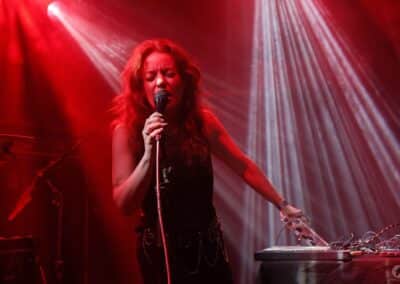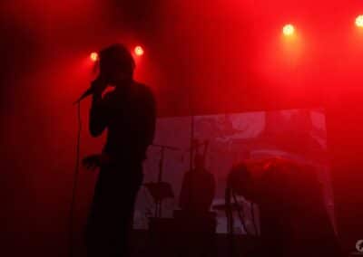 A harsh-noise / power electronics alapjaira épülő Maggot Mass története egy komplex állapotot fest le, melynek során együtt merülhetünk le az alkotó tudatalattijának legmélyére. Minden egyes Pharmakon lemeznek van egy rettentő személyes központi témája (érdemes utána járni, hogyha érdekel a dolog, a Bestial Burden például arról szól, amikor Margaret egy elég kemény műtéten esett át és ezt pszichésen hogyan élte meg / dolgozta fel), ez a mostani album is elég nehéz kérdéseket vet fel és komoly témákat boncolgat. A videoklipes Methanal Doll élőben másmilyen volt, viszont ez az új vokáltónus amit Margaret használ, több mint lenyűgöző. Furcsa módon, volt egy black metal orgánumhoz közeli éle a vokáloknak, nekem nagyon tetszik, teljesen más dimeziók nyíltak általa, sőt a zenei oldal sokkal kivehetőbb és dallamosabb lett, mint eddig. Valahol a set közepe, de inkább a vége felé (Splendid Isolation – Oiled Animals blokk) volt két olyan pont, az első haloványabb, a második viszont nagyon emlékezetes / lélekbemarkoló: sosem éreztem még ilyen szintű “emberiséget” vagy nem is tudom mit pontosan. Nem azt, hogy halandó vagyok, hanem, hogy “valaki kegyes hozzám, törődik velem”. Nem fogom tudni megfogalmazni pontosan – pedig nem szakított ki térből és időből. Nagyon is valóságos volt, semmi szürreális nem volt benne. Előtte sosem tapasztaltam még ilyet vagy ehhez foghatót – egy ilyen közegben, hozzáteszem.