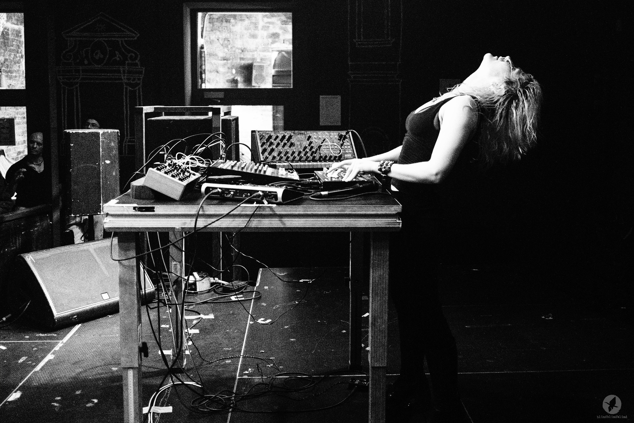 Az utolsó átszerelés következett, gyors kimentem elszívni egy cigarettát és vettem egy malátalevet. Megfigyeltem, hogy bizonyos műfajoknál, de leginkább a kísérleti zenéknél, azon belül pedig a noise-nál, teljesen máshogy telik az idő. Mintha máshogy telnének a percek. Minden előadő a nap folyamán közel 40-45 perces műsorral készült (kivéve a magyarokat) de olyan szinten illant el minden, hogy órámra pillantva, azt láttam 22:15h van és lassan kezd Margaret Chardiet, azaz Pharmakon.