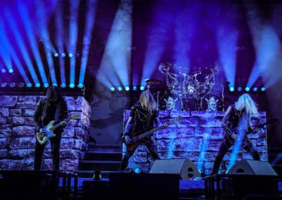 Rövidke átszereles után kezdett is a Hammerfall. A svéd power metal koronázatlan királyai a tőlük megszokott lendülettel nyomták végig a bulit, de kicsit a koncert második felében úgy lehetett érezni, mintha megunták volna a zenélést. Valahogy kicsit egysíkú lett a végére a történet, a számok valamiért ugyanolyannak tűntek. Meglehet egy kicsit másképp összeállított setlist sokkal másabb érzéseket váltott volna ki belőlünk. Mindezek mellett az a rengeteg év zenélés nem maradt nyomtalanul persze, a zenekar eszméletlenül egyben mozgott, a színpadi megjelenés nehezen kifogásolható volt. És hát talán ami a legfontosabb, rohadtul egyben szólt a dolog, közel ugyanazt kaptuk mint egy profi stúdió anyagon. Azért sajnálom, hogy hamar vége lett. Dehát el kell fogadni, habár lehet régebb óta nyomják, most mégsem ők voltak a fő produkció. A koncert végén Joakim bemutatta a zenekart, amit úgy fejezett be, hogy ő pedig a Hammerfall énekese kitudja már mióta, és erre ő nagyon büszke is. Mosoly, fotó, integetés, pengető dobálás, aztán már előttünk is volt egy nagy, mindent eltakaró PW logós függöny.
