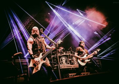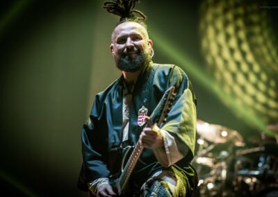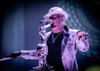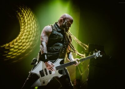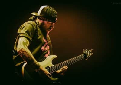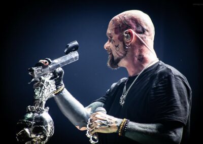 Az ígéretesen induló estét a Papp László Sportarénában a Dél-Yorkshire-ban alapított, de már egész Nagy-Britanniából is tagokkal rendelkező Malevolence indította. A kezdés természetesen nem volt zökkenőmentes, gyors intró után az első néhány másodpercben az énekes mikrofonja teljesen néma volt, de végül felébredtek a keverőpultban is a srácok, és helyre állt az élet rendje. Az, hogy helyre állt, amúgy elég erős túlzás, ugyanis a hangosítás az előzenekarokhoz méltóan, sajnos tragikus volt. A dob ugyan a visszhangosságon túl rendben volt, meg a vokálok is, de a gitárokon semmi basszus nem érződött. Egész végig csak egy középmagas zúgást kaptunk, ami még a metalcore stílusára sem volt fogható. A Malevolence ennek ellenére nagyon kitett magáért már az első pillanattól kezdve. A második szám alatt kérték a közönség első, hátsó, jobb és bal oldalát, hogy jelezzék egy gigászi ordítással, hogy ők bizony itt vannak. Ezt követte a lassabb számok alatt egy zseblámpa gyújtó akció, és egy kevesebb sikerrel járó moshpitre buzdítás. Habár végig látszódott, hogy a közönség nem miattunk érkezett, és talán minden tízedik ember ismeri csak őket, a srácoknak kellőképpen sikerült felspannolniuk és bemelegíteniük a következő előadókra a nézőtéren lévőket. Túlzottan nagy színpadképet és látvány világot nem kaptunk, mely végtelenségig leegyszerűsített fénytechnikával párosult, de a változatosság kedvéért legalább egy manapság már ritkaságnak számító balkezes gitárost láthattunk. Határozottan sajnáltuk, hogy ezt a lehetőséget a zenekar nem használta ki, talán egyszer vagy kétszer ha egymással szembe álltak a gityósok, pedig egy jobb és egy balkezes gitáros egymás mellett ritka jó fotó lehetőségeket tud teremteni. A koncert kb. húszadik perce után megindult a küzdőtéren egy tisztességesebb méretű pogo is, így jó szívvel mondhatjuk, hogy most sokkal jobb felvezetését sikerült összehozniuk a srácoknak, mint azt, a Five Finger Death Punch legutóbbi, 2022-es budapesti bulija előtt láthattunk.