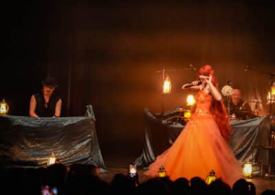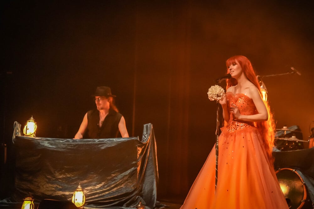 A billentyűkön és a dobon sötétzöld leplek szolgáltak díszletül, amit én kicsit furcsának, talán igénytelennek tartok. Így a hangszerek annyira nem is látszottak, se az, hogy Tuomas vagy Johanna Iivanainen mit játszik. A lámpások jól néztek ki, és ezt most minden rosszindulat nélkül mondom, de itt úgyis Johanna a fő látványosság. A második két számot lehetett fotózni, és amint a fotósok eltették a masinákat, olyan dekoratív fények kapcsolódtak be, hogy Kristóf a falat tudta volna kaparni (de ez általában így szokott lenni a koncerteken).