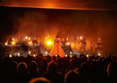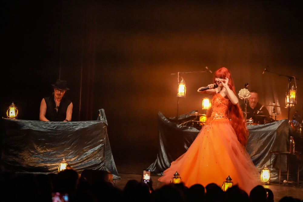 Szeptember 29-én este egy különleges koncertnek lehettünk tanúi, ami ezúttal kivételesen nem keményzene volt, viszont főleg a metal rajongóit érintheti. Ez nem más volt ugyanis, mint a Nightwish 3 tagjának projektje, a 2017-ben alakult Auri. A Tuomas Holopainen billentyűs által alapított zenekar olyan atmoszferikus, mesebeli zenei légkört teremt, ami elhiteti a hallgatóval, hogy egy erdő közepén játszódó fantasy-történetbe csöppent, amit Johanna Kurkela angyali hangja narrál, és tündérszerű megjelenése és gesztusai tesznek autentikussá. Tuomas és Johanna oldalán zenél még Troy Donockley is, akit szintén a Nightwishból ismerhetnek a legtöbben mint multi-instrumentalistát. A dobok mögött az élő koncerteken a (többek között a) Nightwish dobosa, Kai Hahto ül, egy másik billentyűs hangszernél vagy szintetizátornál (nem látszott a díszlepeltől, hogy mi volt az) és vokalista pozícióban Johanna Iivanainen, valamint akusztikus gitározik és vokálozik férje, Mikko Iivanainen. Johanna Kurkela párszor hegedűn is játszott, amikor épp nem énekelt.