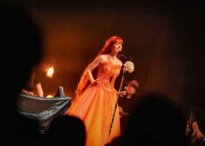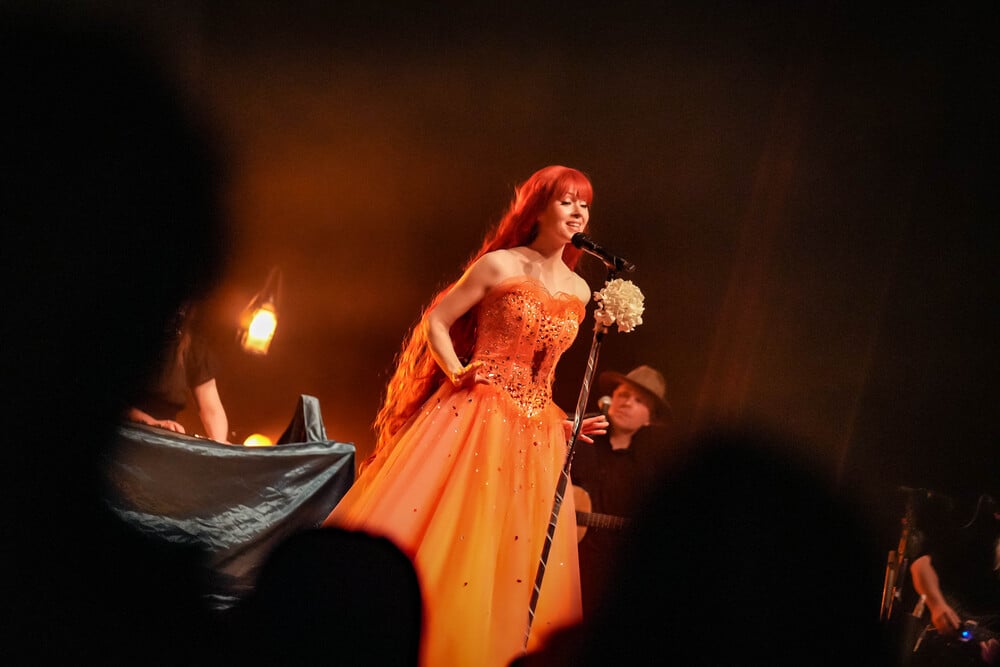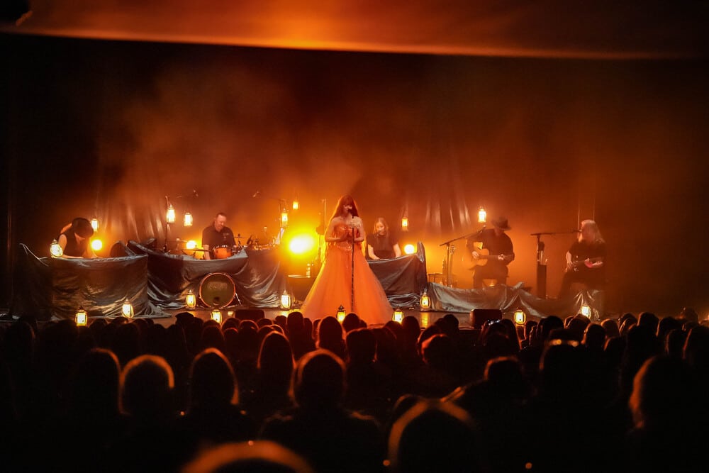 A MOM Kulturális Központba könnyűzenei koncertre menni már önmagában sem olyan élmény, amit megszoktunk, már csak az ülve zenehallgatás miatt sem. A színházteremnek megvolt a maga bája, és sajnos baja is. A díszletként szolgáló hangulatos lámpások között elsőként Johanna jelent meg, megmutatva elbűvölő megjelenését, mosolyát, csodaszép narancssárga hercegnőruháját és kis túlzással földig erő vörös haját. A zenészek utána sétáltak be, hatalmas üvrivalgás közepette. Amikor megszólalt a zene, fény derült a terem hátrányára: a hangszerek halkan és tompán szóltak, a dob olyannyira, hogy alaposan szemügyre kellett vennem, hogy biztosan ki van-e hangosítva – pedig be volt mikrofonozva (legalábbis két overhead miksi lógott fölötte), de olyan elfojtva és halkan szólt, mintha direkt le lenne tompítva. Pedig ahogy néztem, Kai elég rendesen püfölte a dobokat.