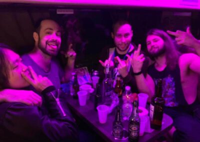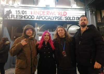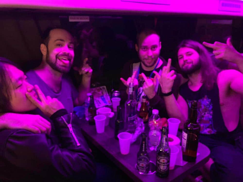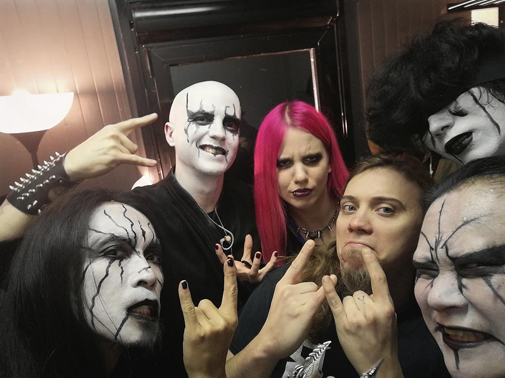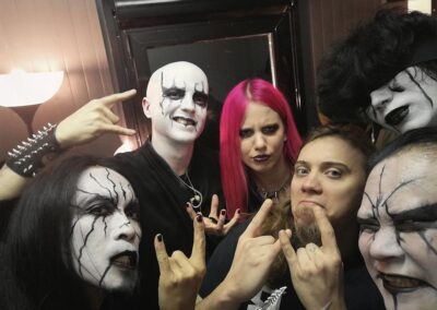 Evi: A turné első felében a japán Ethereal Sinnel és a koreai Dark Mirror ov Tragedyvel utaztunk együtt. Valami elképesztő humorú társaság voltak, rengeteget hülyültünk a buszban. Aztán ők leléptek és jött a japán Serenity in Murder és az izraeli Structural, akikkel szintén sikerült összemelegedni a buszos lounge-ban tartott partik alatt. A sofőr nem mindig örült nekünk, de egyébként jól viselkedtünk. 🙂 A görög W.E.B.-bel is sokat lógtunk, ők az elejétől a végéig ott voltak. A Fleshgodból a dobossal, Eugene-nel nagyon hamar sikerült összehaverkodni, miután az első állomáson lazán ránk köszönt, hogy „Sziasztok!”. Nem tudtuk, de ő félig magyar – félig ukrán és beszél magyarul. A Fleshgod többi tagjával ritkábban tudtunk időt tölteni, de az énekessel, Francescoval volt egy komolyabb beszélgetésünk, amivel szerintem évek kínlódását spórolta meg nekünk, meg a turné végén egy kisebb afterparty is ment a buszukban.
