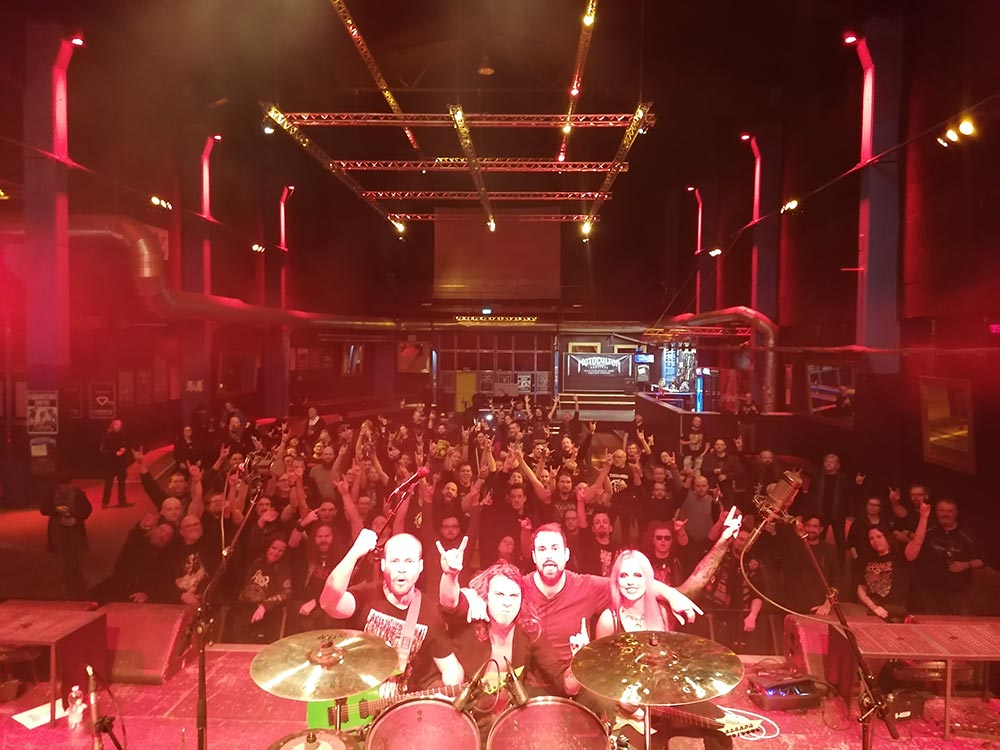 Evi: Tudtuk, hogy ez egy kihagyhatatlan lehetőség, amivel hatalmasat tudunk előre lépni, úgyhogy a kérdés inkább az volt, hogy hogyan tudjuk megoldani, hogy menjünk. Össze kellett szednünk a létező összes erőforrást, amiben szerencsénkre sokan segítettek – innen is köszönjük az Empire Merchnek és Forray Tominak, hogy pár nap alatt elkészítették és megelőlegezték nekünk az összes merchet, Szvirida Andrisnak az Osiris Accessoriestól, hogy ugyanezt a szívességet megtette nekünk a signature pengetőkkel, Varga Balázsnak, hogy segített elintézni a létező összes papírmunkát és mindenkinek, aki hozzátett ahhoz, hogy elindulhassunk! Ezen kívül még meg kellett oldanunk a munkahelyi kérdéseket és le kellett mondanunk a saját önálló Európa turnénkat is, amit egy éve szerveztünk és februárban indult volna.