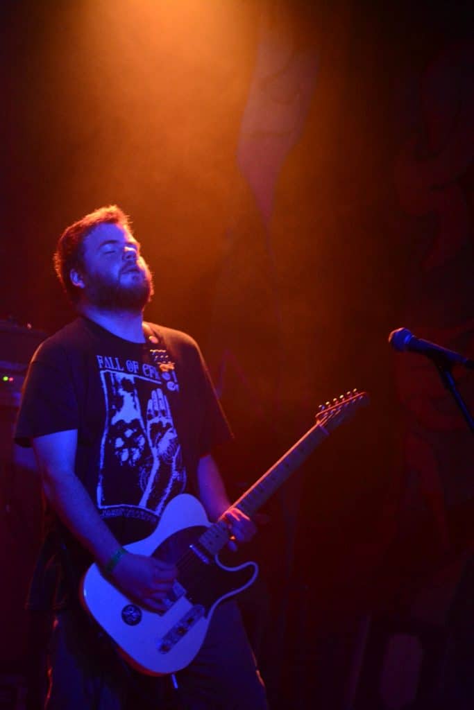 De hát csapjunk a lecsóba: fél kilenckor leoltották a villanyokat, és színpadra lépett a magyarországi Oaken. Nemcsak, hogy a zenéjüket nem ismertem, de még csak nem is hallottam a létezésükről – mint egyébként kiderült, ezzel nem voltam teljesen egyedül –, úgyhogy szűz füllel, teljesen előítéletek nélkül vártam a fellépésüket. Két gitár – basszusgitár – dob – ének/ütős felállásban léptek föl, és teljesen őszinte leszek: az első dal után úgy gondoltam, hogy ez bizony így elsőre kicsit tömény lesz, de a második dal környékére minden kétségem elmúlt. Nem tudom, hogy hivatalosan mi lehet az általuk játszott műfaj neve – én talán leginkább talán a kísérleti/experimentális metal kategóriába sorolnám a munkásságukat. Ezek az experimentális dolgok általában vagy nagyon szörnyen, vagy nagyon jól sülnek el, és a kettő között meglehetősen szűk a határmezsgye – az Oaken esetén egy nagyon érdekes zenei kollázst volt szerencsénk meghallgatni. Tulajdonképpen a műfaj jelentős adagban tartalmazott drone és sludge elemeket, amelyek egy kutyaközönséges black metal-ra voltak ráhúzva, és ezen túl még egy nagyon erős alternatív, VHK-s réteget is le lehetett hámozni a zenéjükről. Ami legelőször eszembe jutott, az az Aluk Todolo neve: fellépéseiken ők is egy csomószor a hangszer pengetése helyett a padlóeffekteken (és nem a padlóeffektekkel) játszanak. Csak tippelek, de szerintem egy menet közben felvett hangmintát hallunk ilyenkor újra és újra különböző beállításokkal. A dalaik hosszúak voltak, a 30 perces fellépésre jutott négy (ha jól számoltam), és teljesen egyedi légkört voltak képesek megteremteni – hasonlóan a főzenekarhoz, az Oaken zenéje is olyan volt, hogy csak állva, becsukott szemmel, kicsit bólogatva lehetett rendesen befogadni – a pár tucat fős közönség egészen minimális mozgás produkált, ha egyáltalán. Színesítő elem volt Radics Gábor működése, aki az éneklés mellett egy Korg ?processzort / ?szintetizátort kezelt, emellett dobbal, csörgődobbal, sőt időnként zománcfestékkel festett vasdarabok ütögetésével kísérte a zenét. A végeredmény meglehetősen sokrétű lett, ugyanis a gitárok, a basszusgitár és a dob döngölése fölött a vázlatszerűen, skiccként, ötletszerűen odavetett magasabb hangok tényleg egy teljesen egyedi atmoszférát voltak képesek teremteni. Úgyhogy az első dal után érzett averzióim azonnal elmúltak, és a zenekart gyorsan besoroltam abba a pici, de izgalmas társaságba, amit mondjuk az Aluk Todolo, a Wiegedood vagy Magyarországon talán az Ÿgfan neve jelképez.