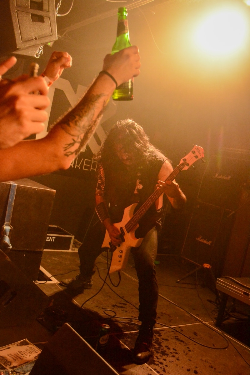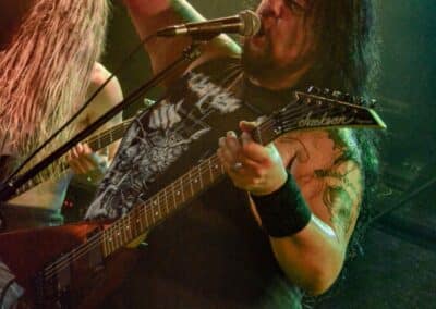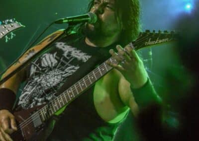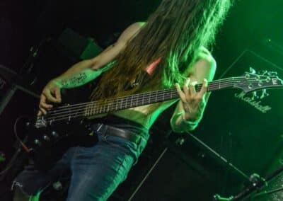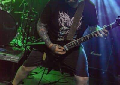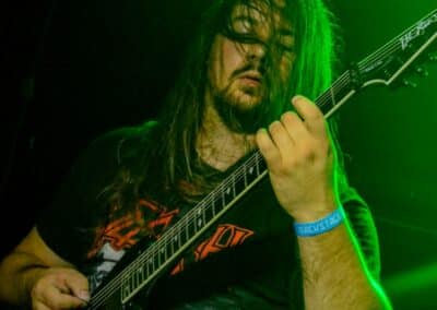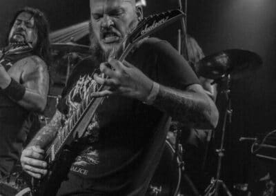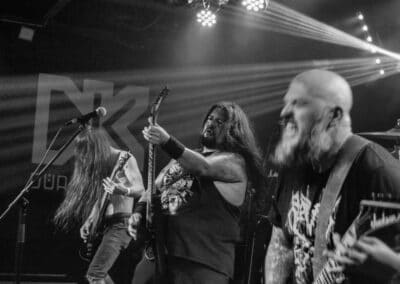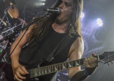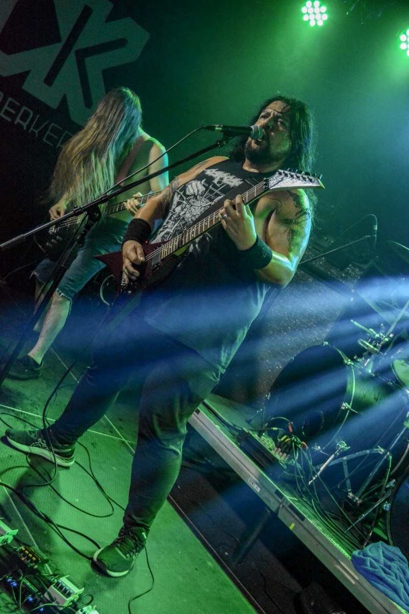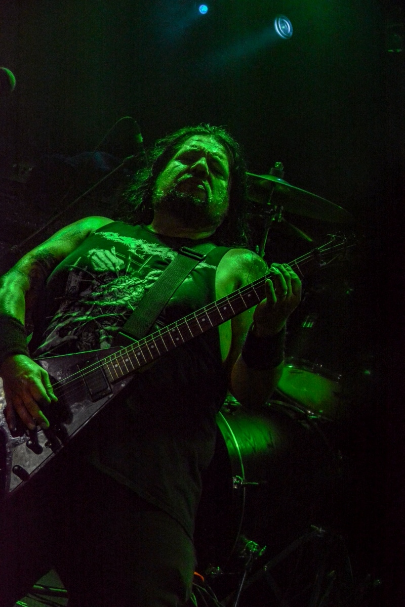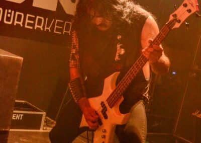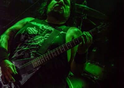 A kombinált old school és az újsulis zene után visszatértünk a 90-es évek világába – és az este során már nem is nagyon távolodtunk el innen. Az Ascended Dead mind stílusában, mind zenéjében nagyjából az 1985-95 közötti periódust hozta, amikor még vidáman összefolyt, hogy valakit death vagy black metal-t játszik. Ha a lelkesedésért díjat osztogatnának egy ilyen esemény után, valószínűleg az Ascended Dead az összes létezőt vinné: jól fel is pörgették a közönséget, akik nagy tapssal fogadták a csapat dalait. Én nem igazán tudtam mit kezdeni ezzel a fellépéssel – ha valaki azt mondja, hogy az este során csak egy darab ötven perces számot játszottak, nekem az is jó. Nem éreztem úgy, hogy dalok egyediek lennének; nem hallatszottak ki a súlypontok, bár ez lehet, hogy csak a keverés és az én hiányos ismereteim miatt van így. Amit feltétlenül le kell szögezni, hogy az Ascended Dead egy lelkesedéstől átfűtött, mozgalmas koncertet adott nekünk a Dürer immáron légkondicionált kistermében.