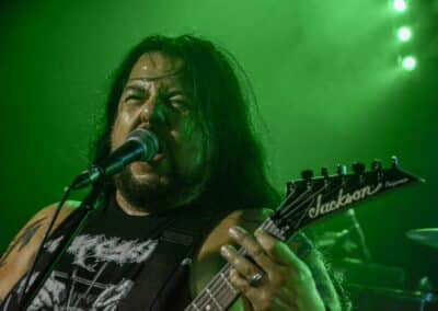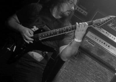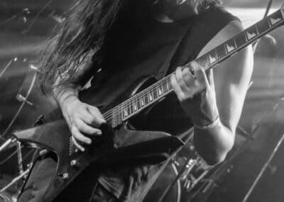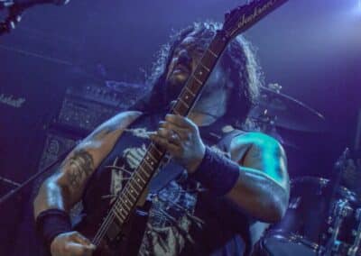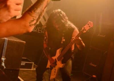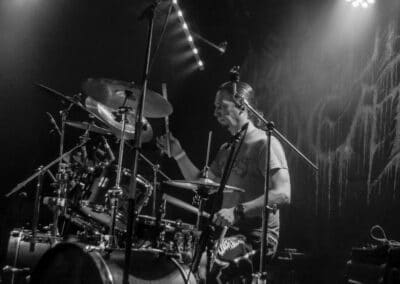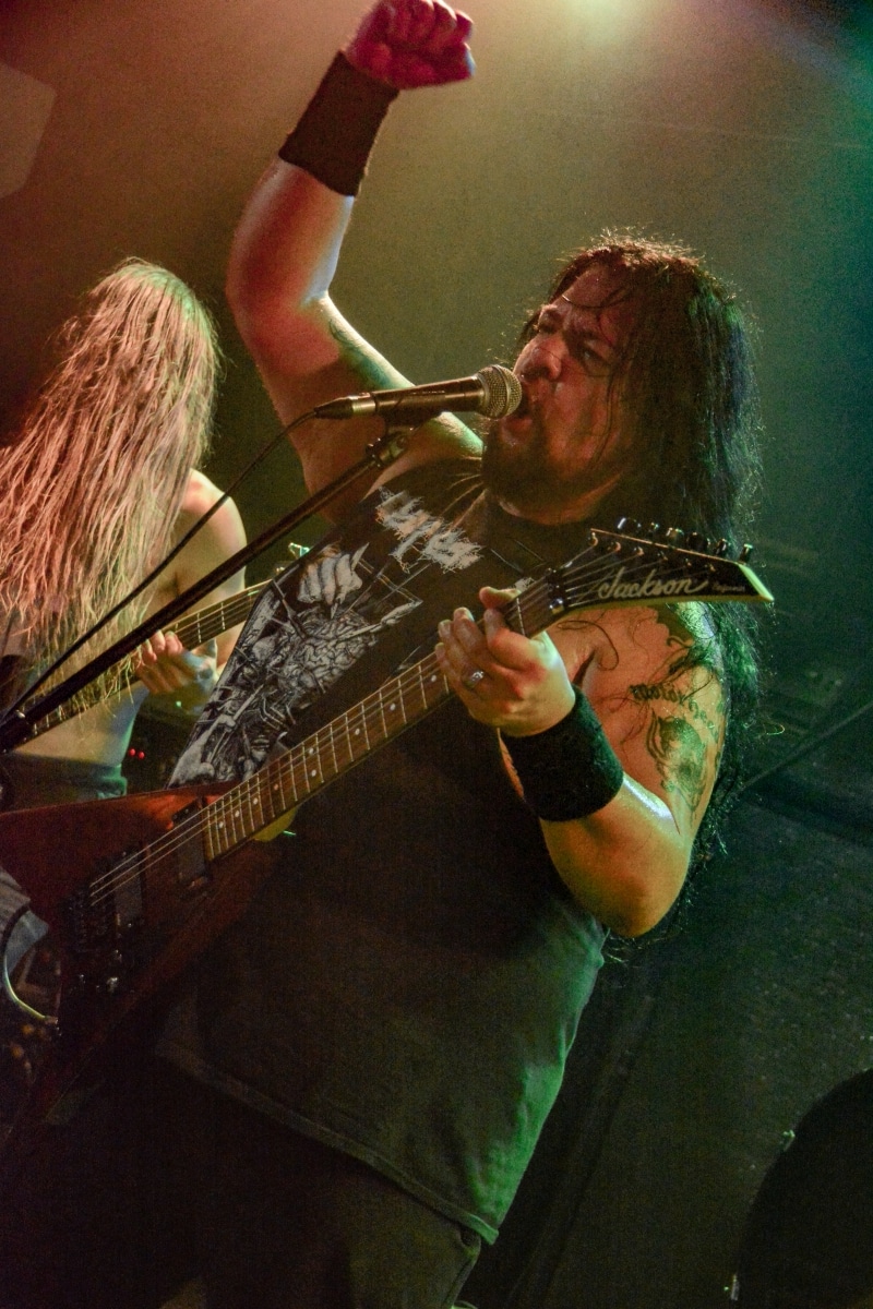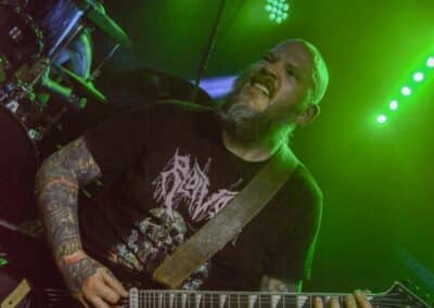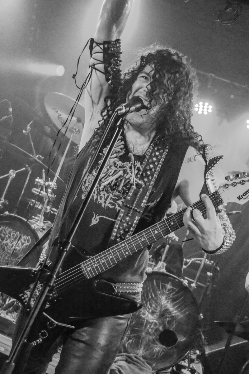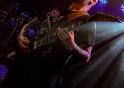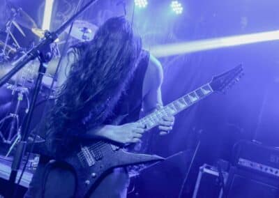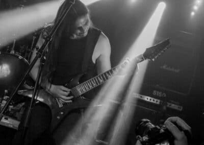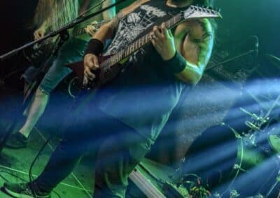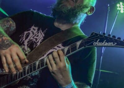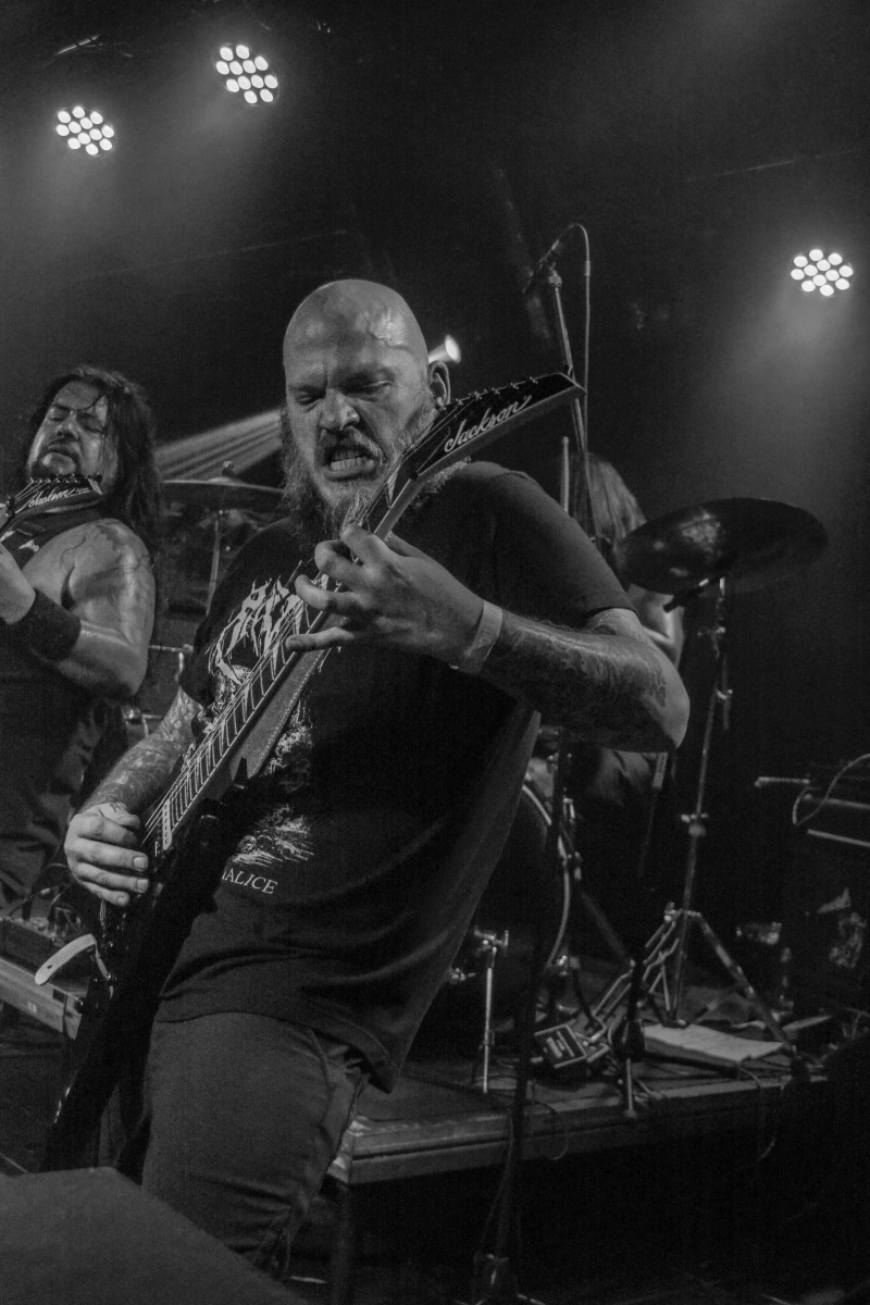 A kombinált old school és az újsulis zene után visszatértünk a 90-es évek világába – és az este során már nem is nagyon távolodtunk el innen. Az Ascended Dead mind stílusában, mind zenéjében nagyjából az 1985-95 közötti periódust hozta, amikor még vidáman összefolyt, hogy valakit death vagy black metal-t játszik. Ha a lelkesedésért díjat osztogatnának egy ilyen esemény után, valószínűleg az Ascended Dead az összes létezőt vinné: jól fel is pörgették a közönséget, akik nagy tapssal fogadták a csapat dalait. Én nem igazán tudtam mit kezdeni ezzel a fellépéssel – ha valaki azt mondja, hogy az este során csak egy darab ötven perces számot játszottak, nekem az is jó. Nem éreztem úgy, hogy dalok egyediek lennének; nem hallatszottak ki a súlypontok, bár ez lehet, hogy csak a keverés és az én hiányos ismereteim miatt van így. Amit feltétlenül le kell szögezni, hogy az Ascended Dead egy lelkesedéstől átfűtött, mozgalmas koncertet adott nekünk a Dürer immáron légkondicionált kistermében.