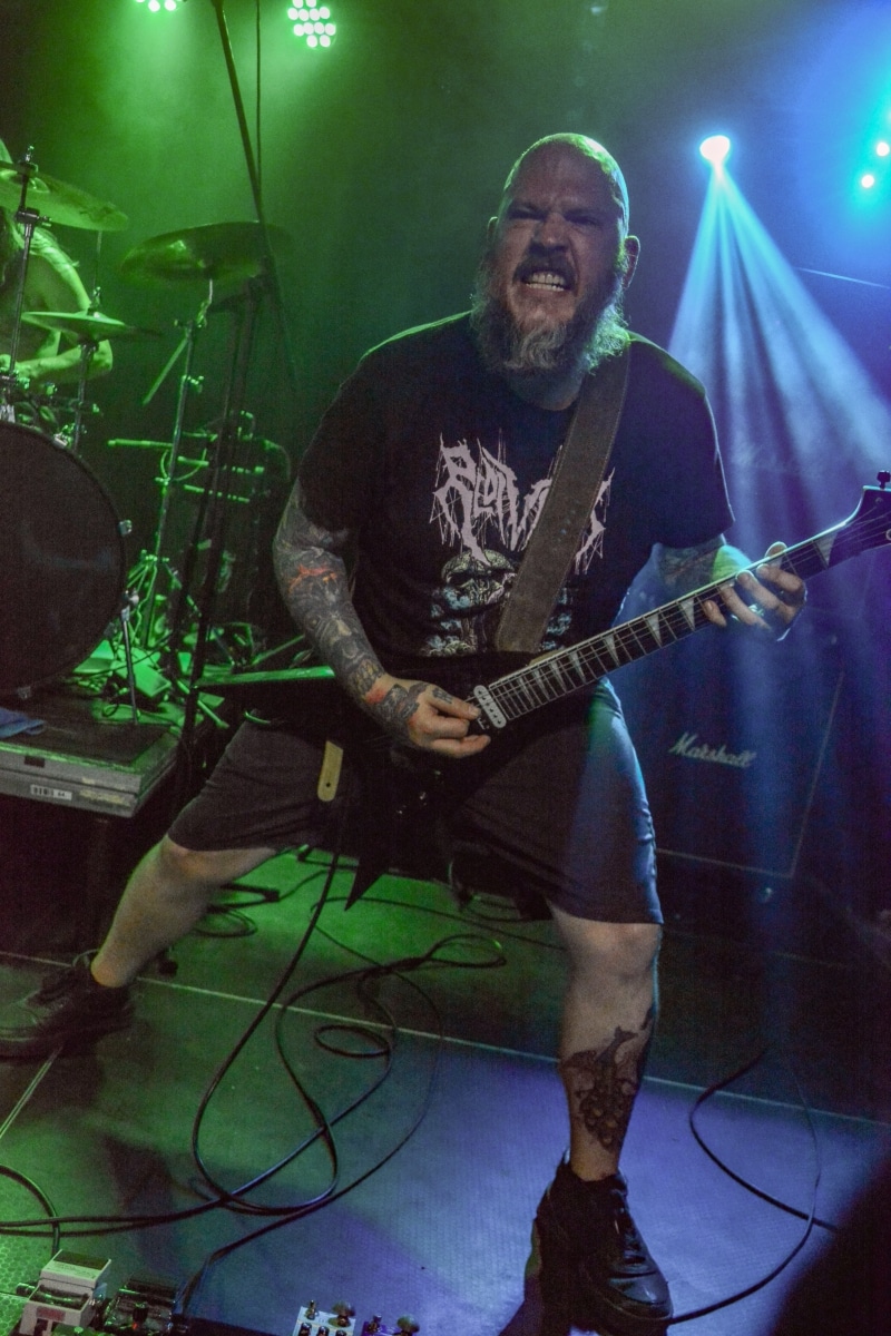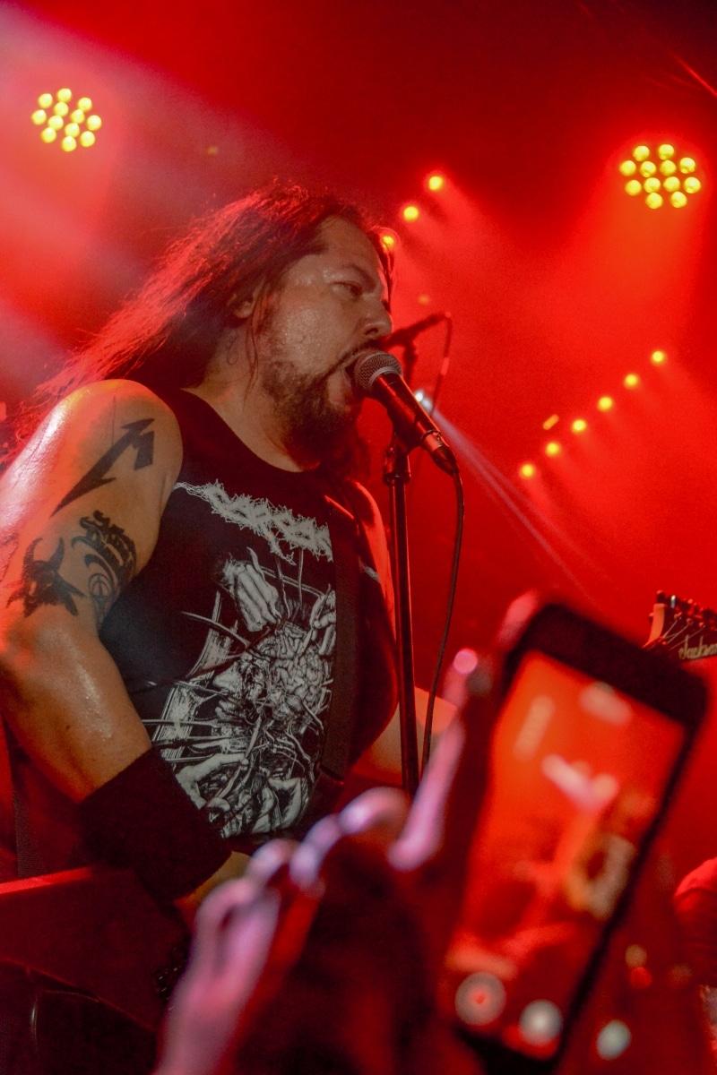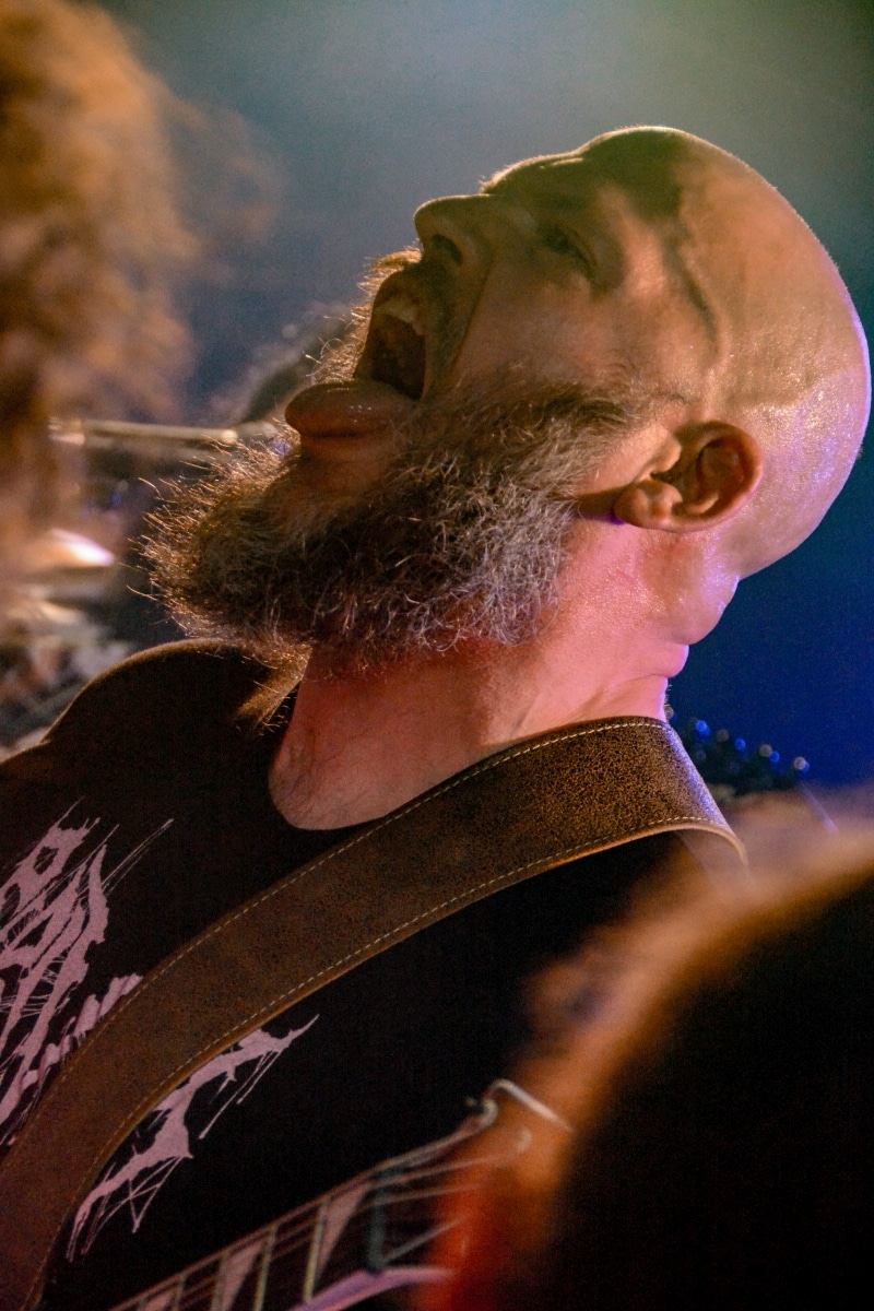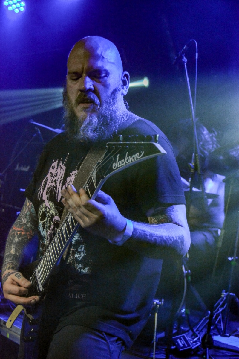 „Igen, nos… látod, ők azok a zenekarok, akik alapvetően hatással voltak rám és a zenémre” – mutogatta Paul a bal vállán lévő tetoválásokat, elsőként is Metallica-ra, a Motörhead-re és a Celtic Frost-ra bökve. Kicsit meglepő volt, hogy az est fő fellépőinek alapító tagjával és frontemberével a merch-pult mögött lehet kvaterkázni, dehát ez egy ilyen este volt.