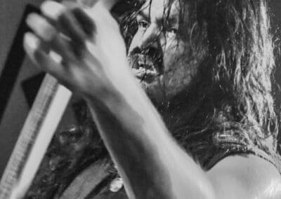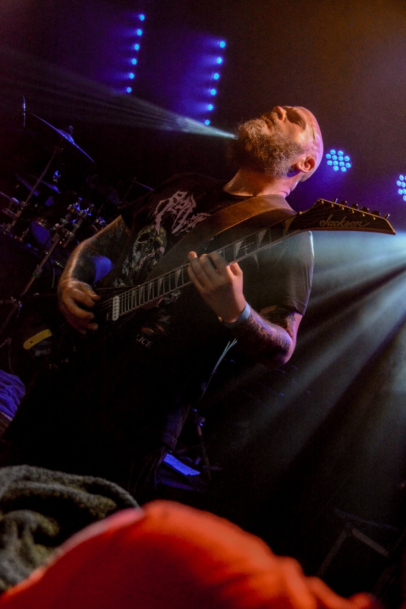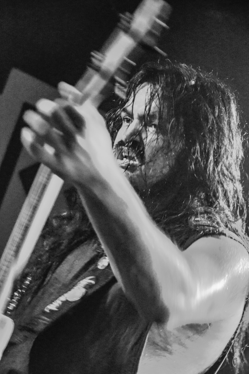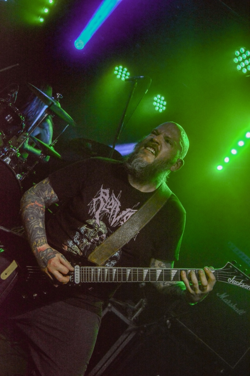 „Igen, nos… látod, ők azok a zenekarok, akik alapvetően hatással voltak rám és a zenémre” – mutogatta Paul a bal vállán lévő tetoválásokat, elsőként is Metallica-ra, a Motörhead-re és a Celtic Frost-ra bökve. Kicsit meglepő volt, hogy az est fő fellépőinek alapító tagjával és frontemberével a merch-pult mögött lehet kvaterkázni, dehát ez egy ilyen este volt.